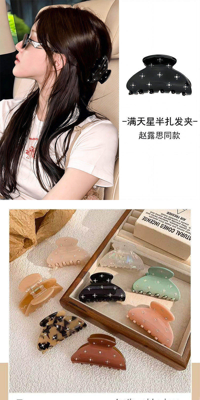高级感抓夹繁星镶钻鲨鱼夹醋酸发量少半扎发夹子可爱后脑勺发饰女