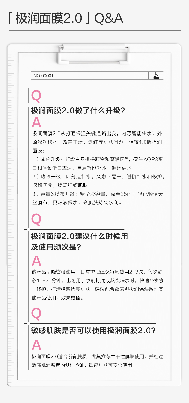 【双11狂欢购】【新品】薇诺娜极润保湿面膜2.0 深层补水敏感肌