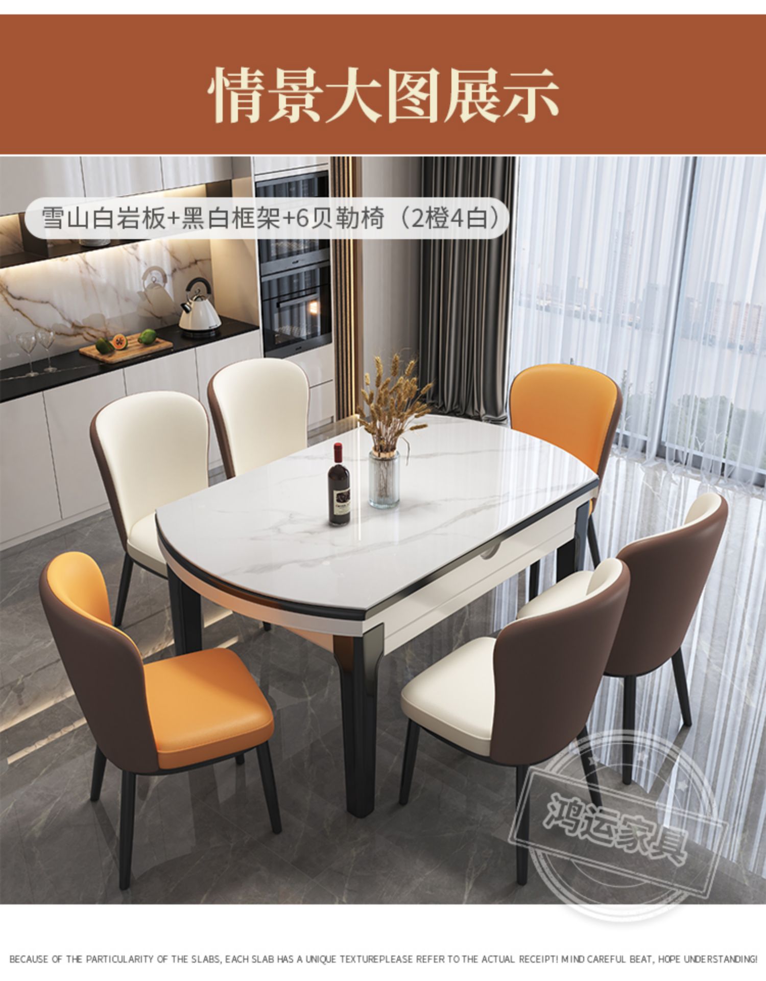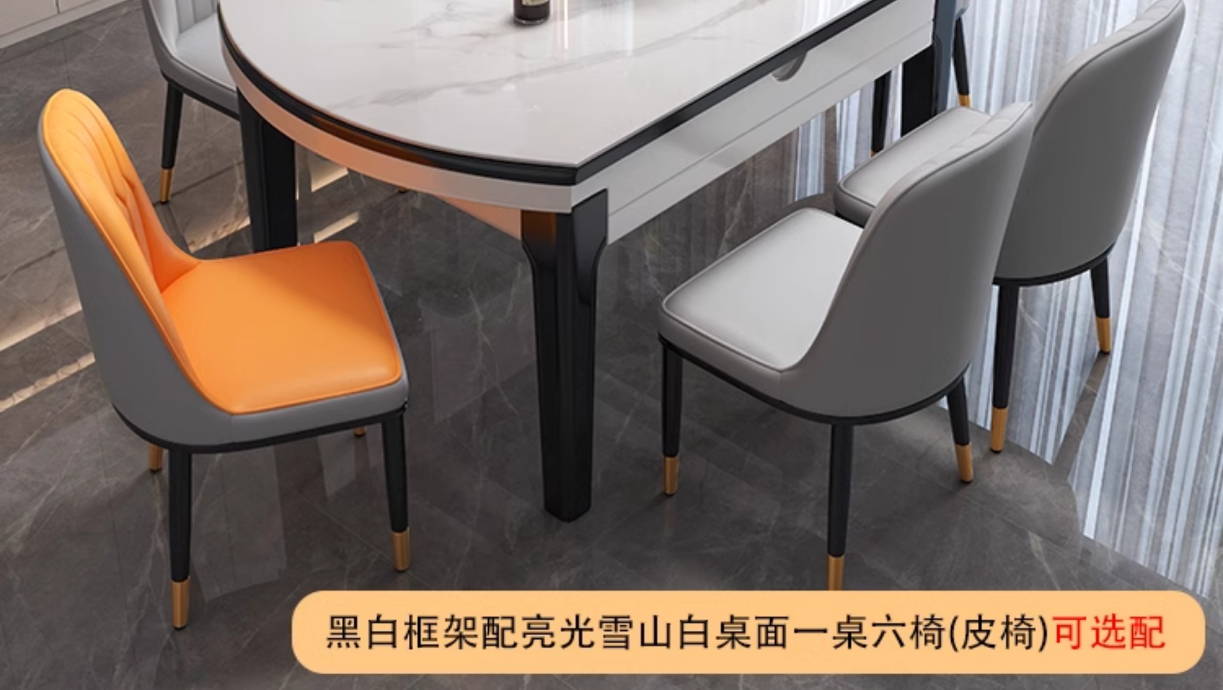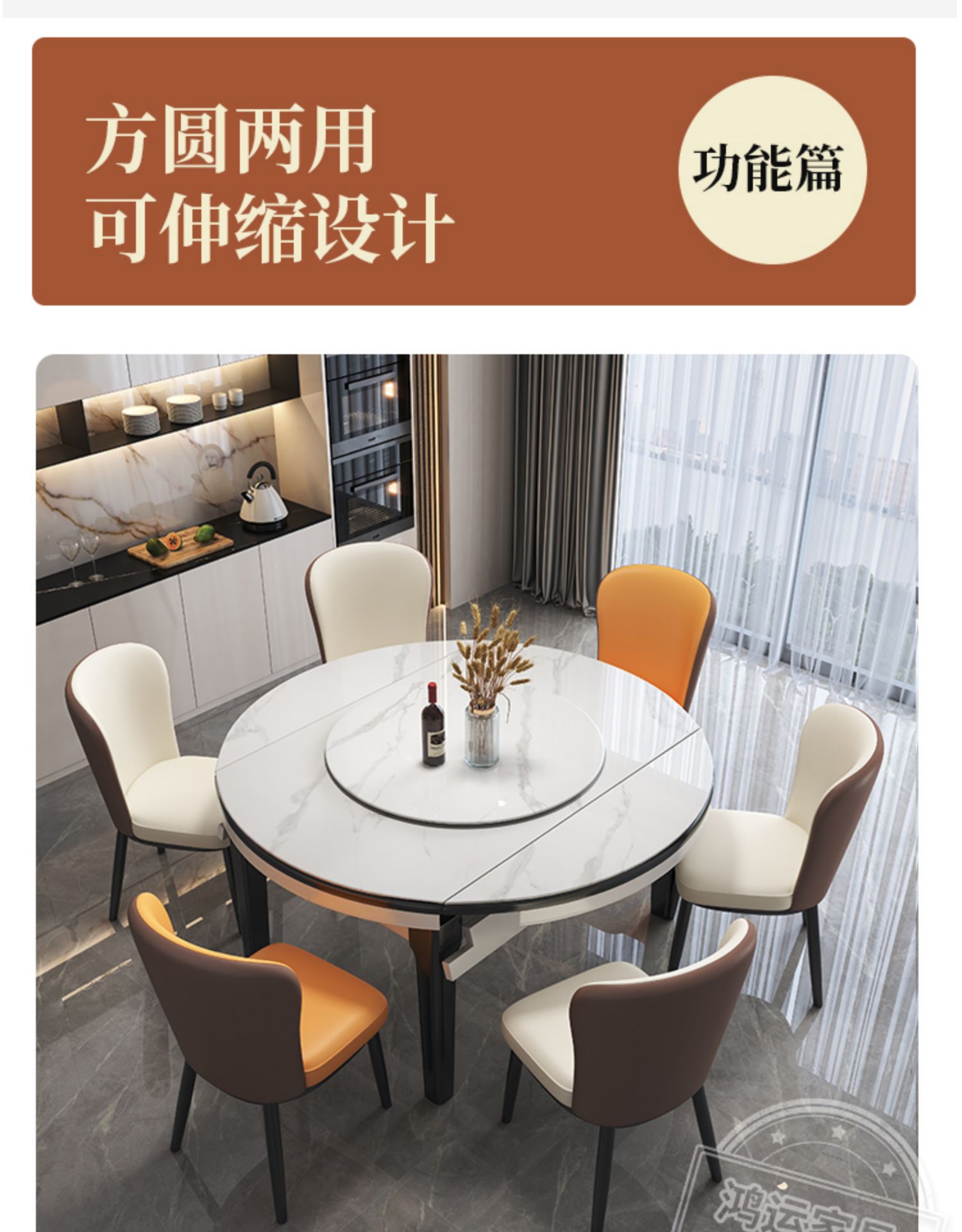岩板餐桌椅组合家用吃饭现代简约轻奢折叠伸缩可变圆桌小户型饭桌