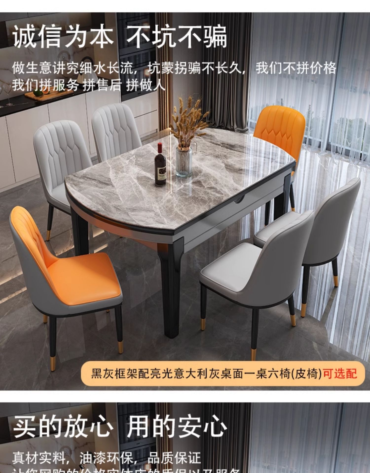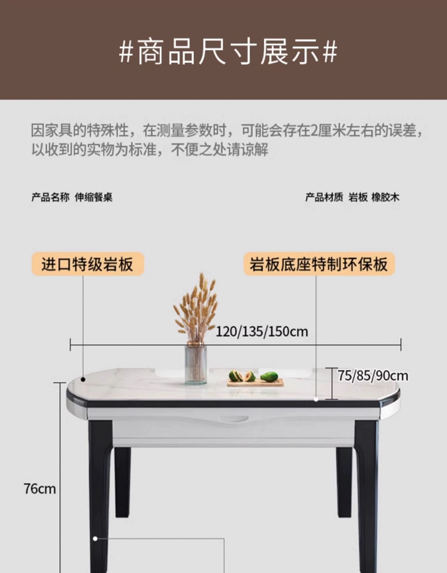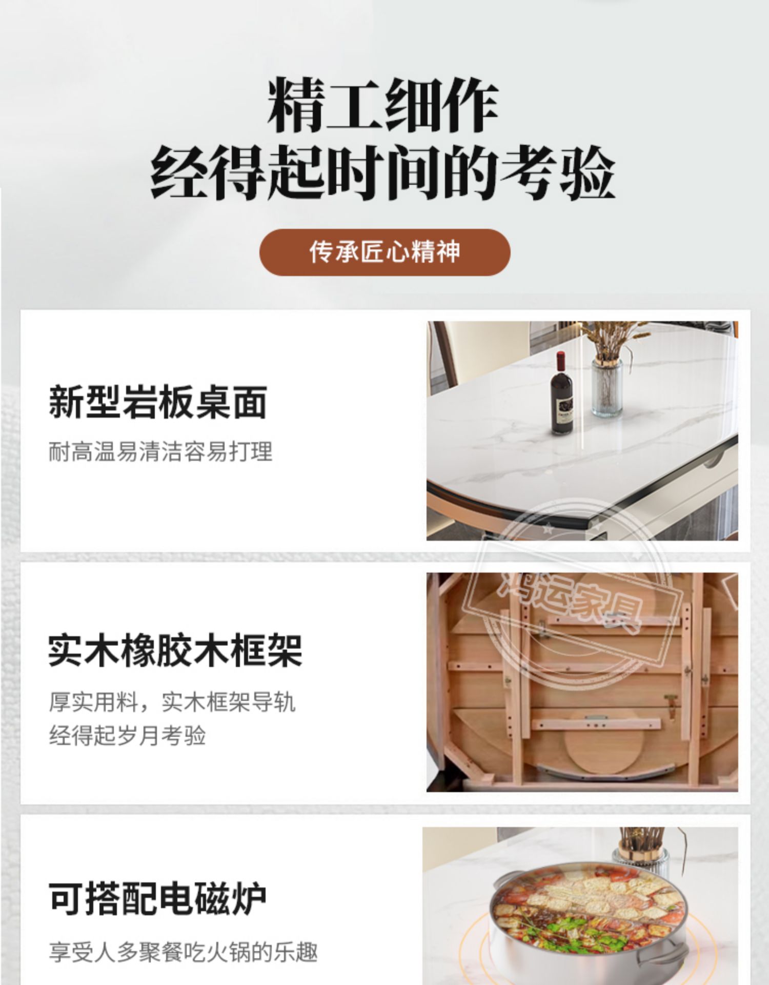 岩板餐桌椅组合家用吃饭现代简约轻奢折叠伸缩可变圆桌小户型饭桌