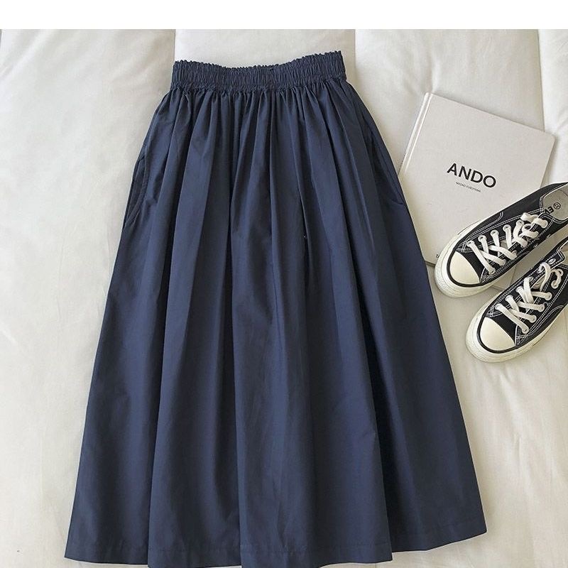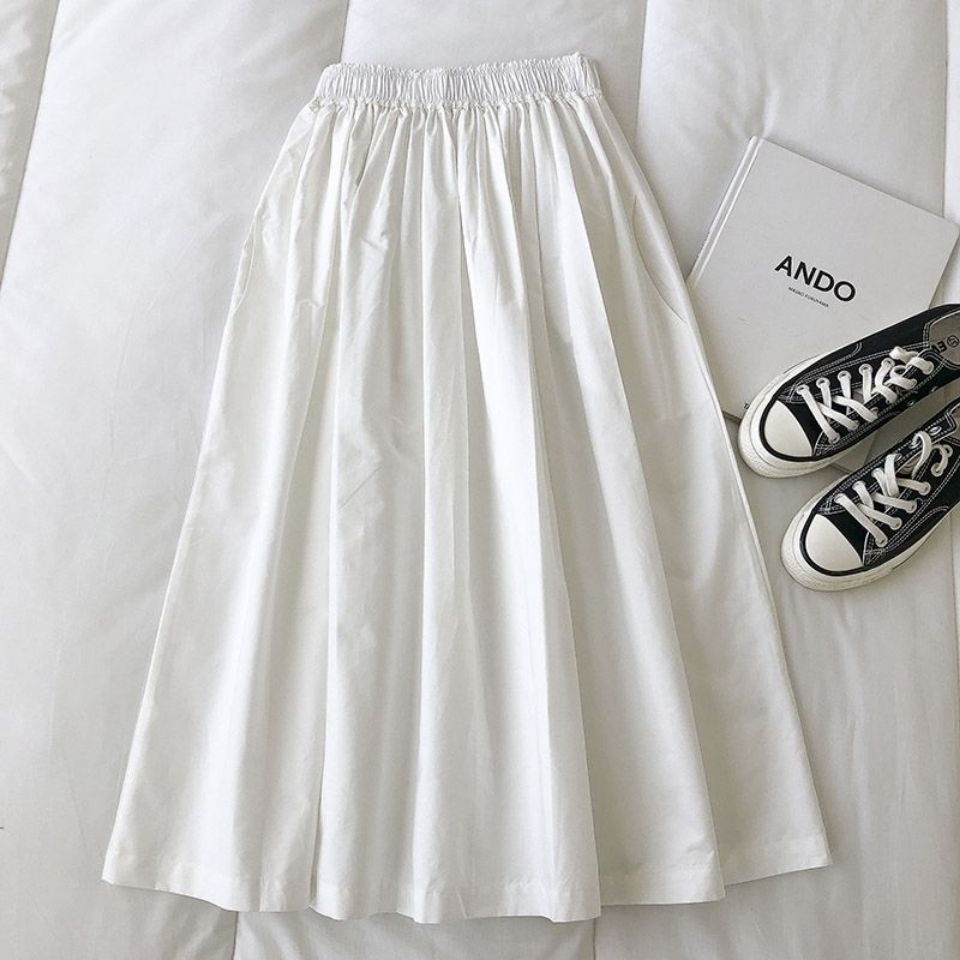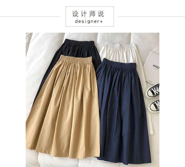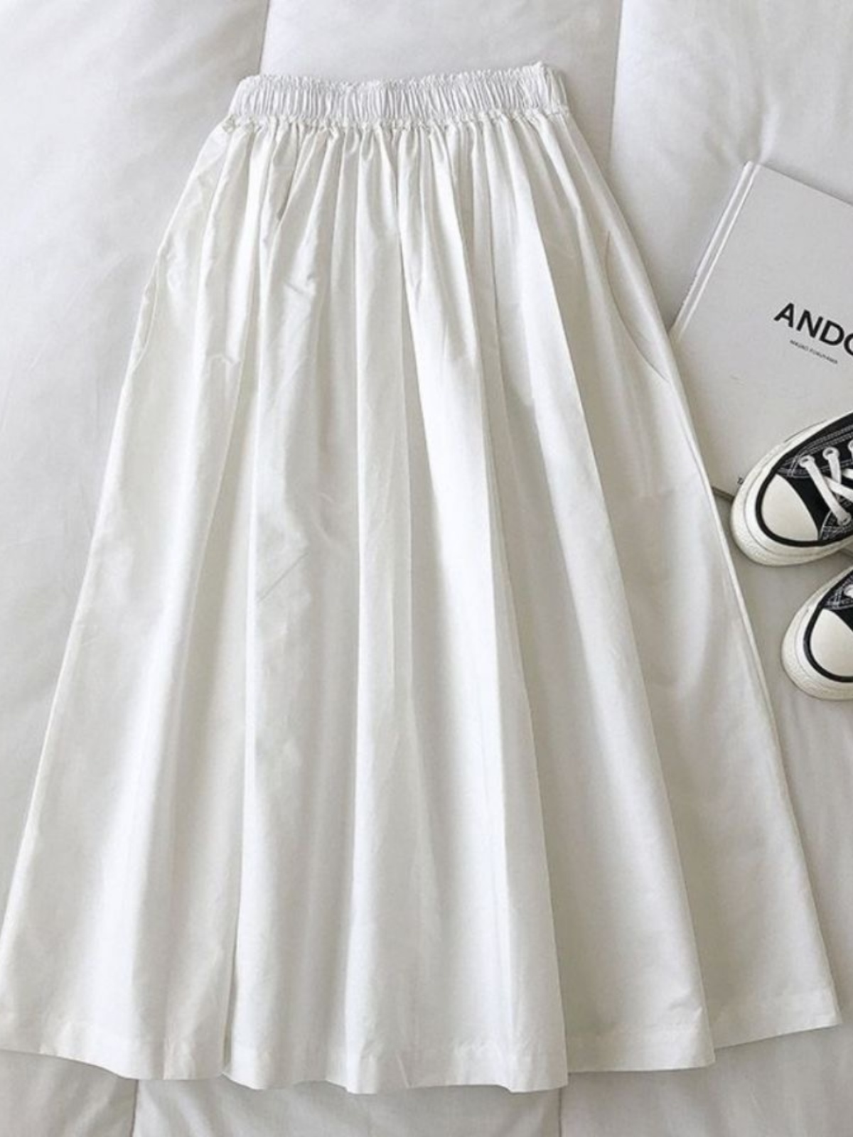 半身裙小个子a字裙日系文艺白色中长款百褶裙小众女夏季大码显瘦