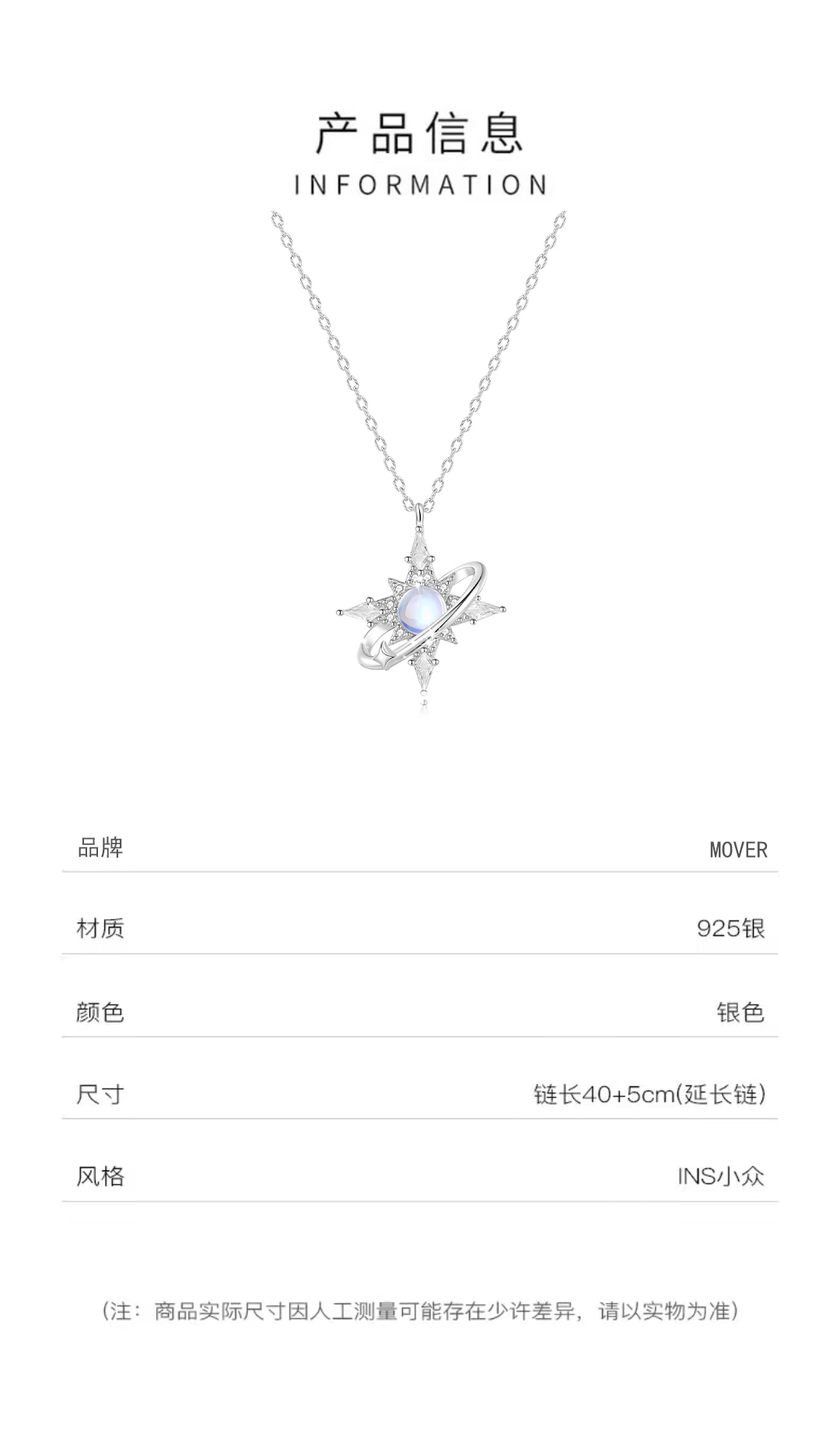 MOVER八芒星项链女款纯银小众轻奢星星吊坠毛衣链生日礼物送女友