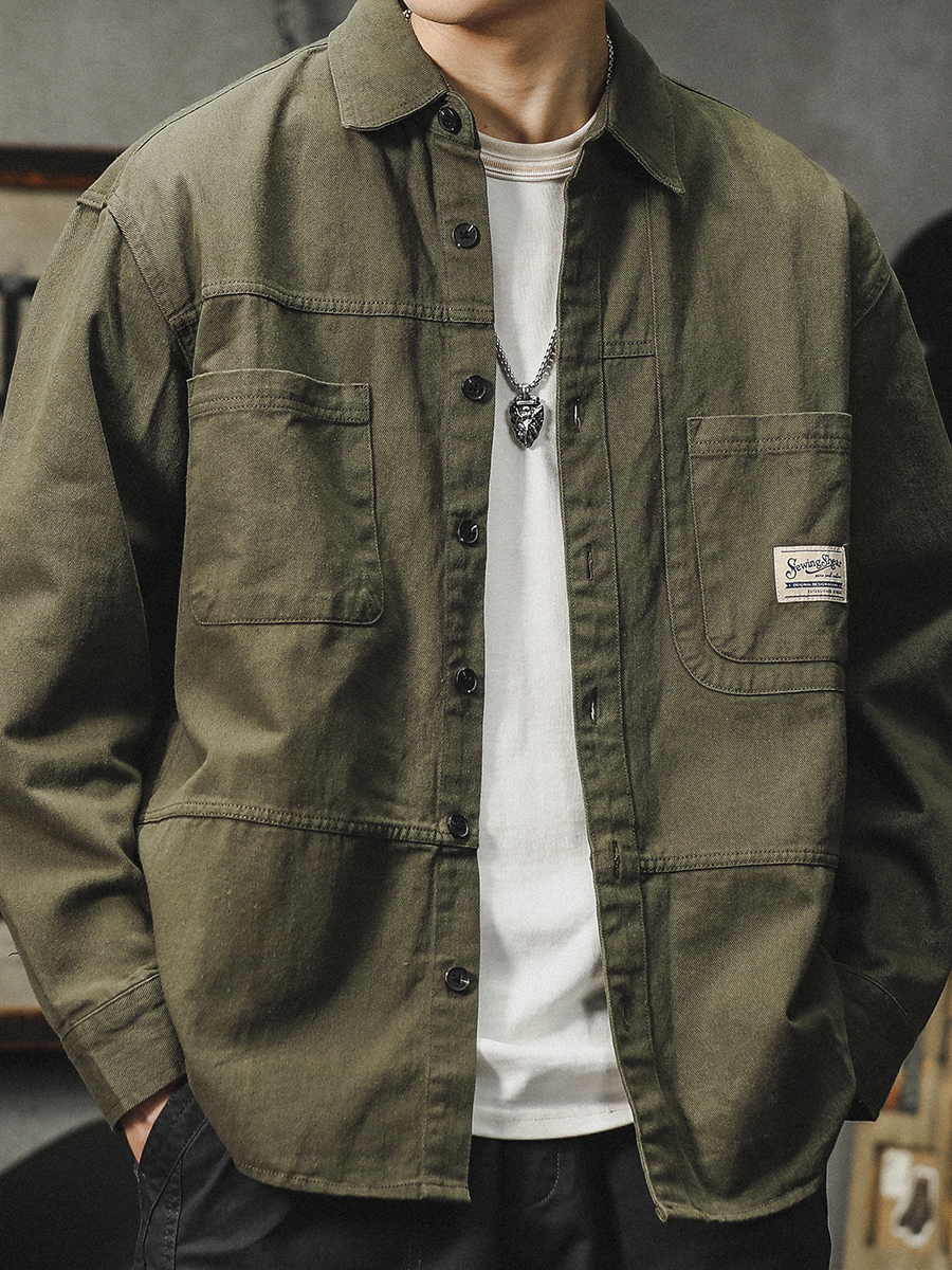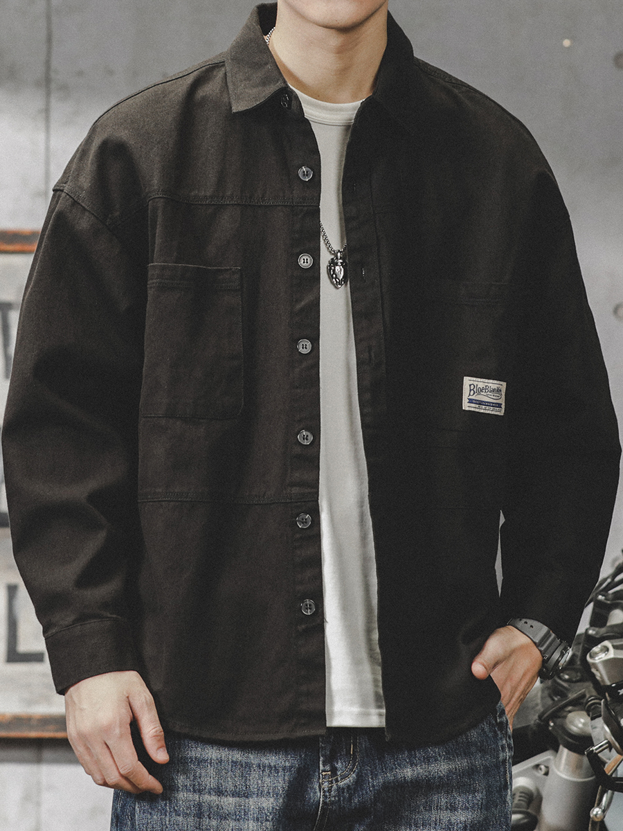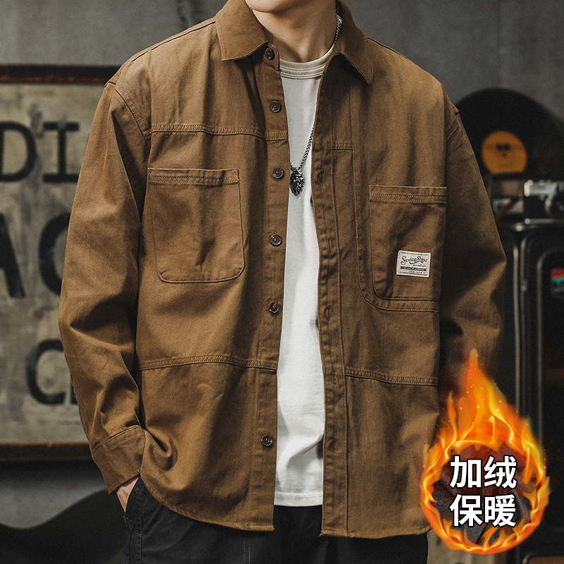 美式工装衬衫式夹克外套男2025秋冬新款宽松日系复古休闲长袖衬衣