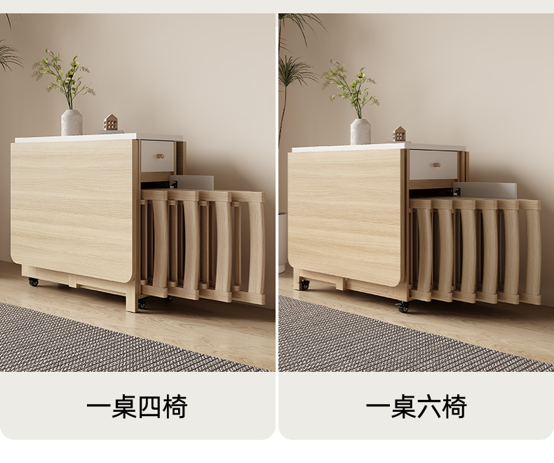 多功能折叠餐桌椅组合现代简约小户型家用可伸缩带轮餐桌简易饭桌