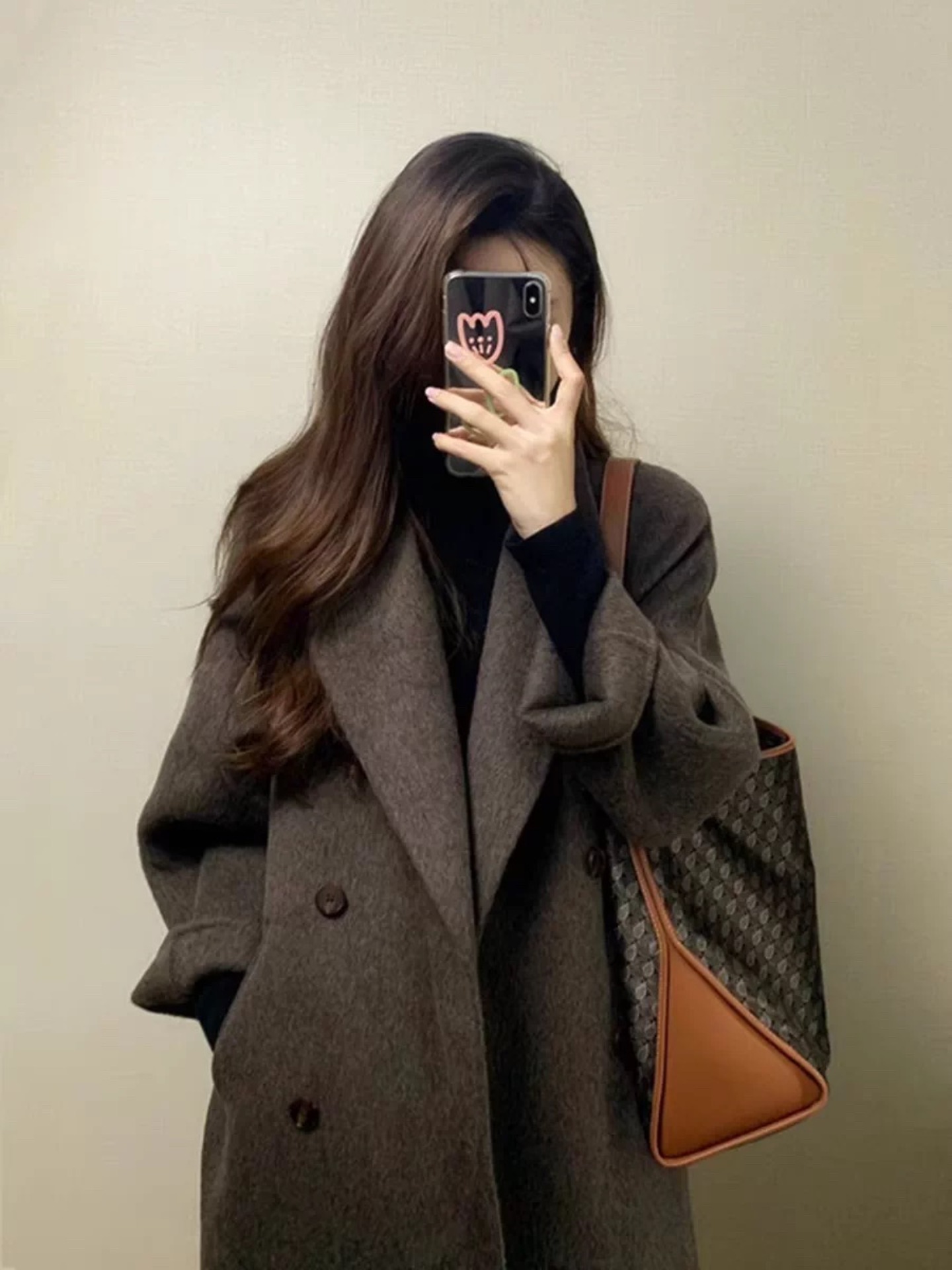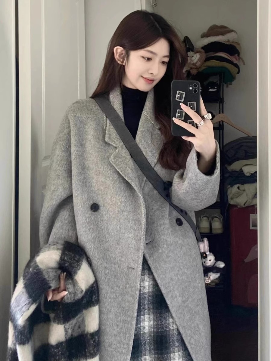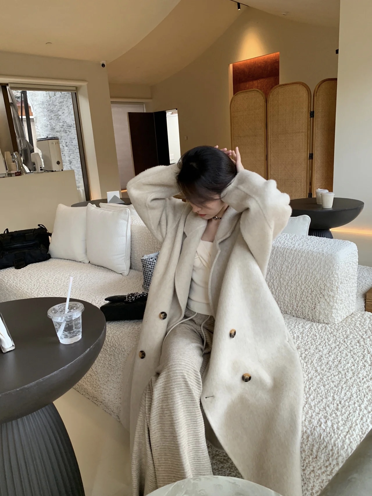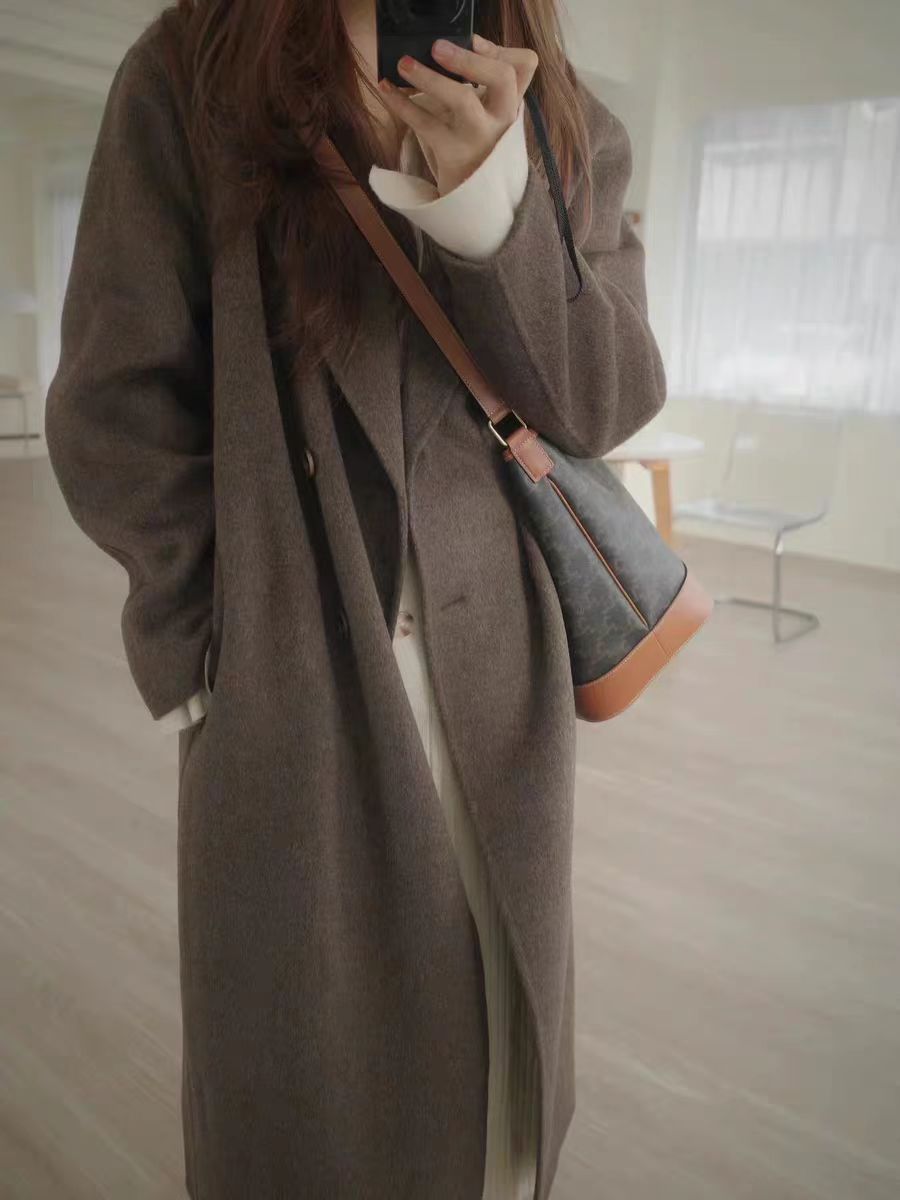 双面羊绒大衣女中长款2025秋冬新款韩版宽松高端燕麦色羊毛呢外套