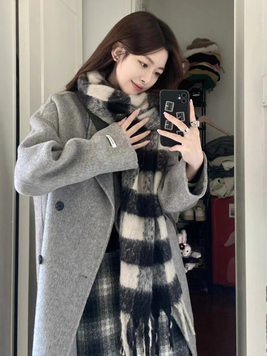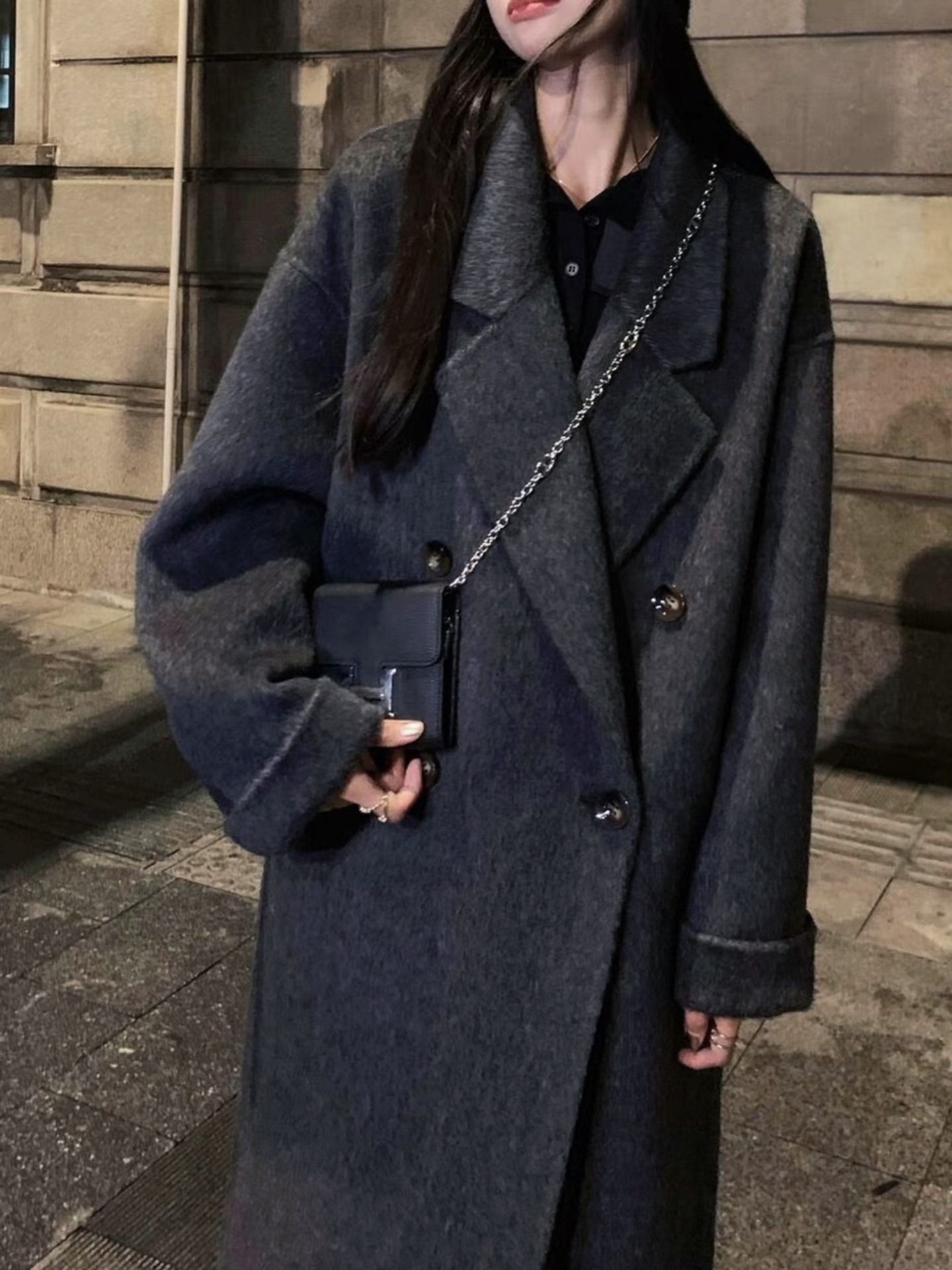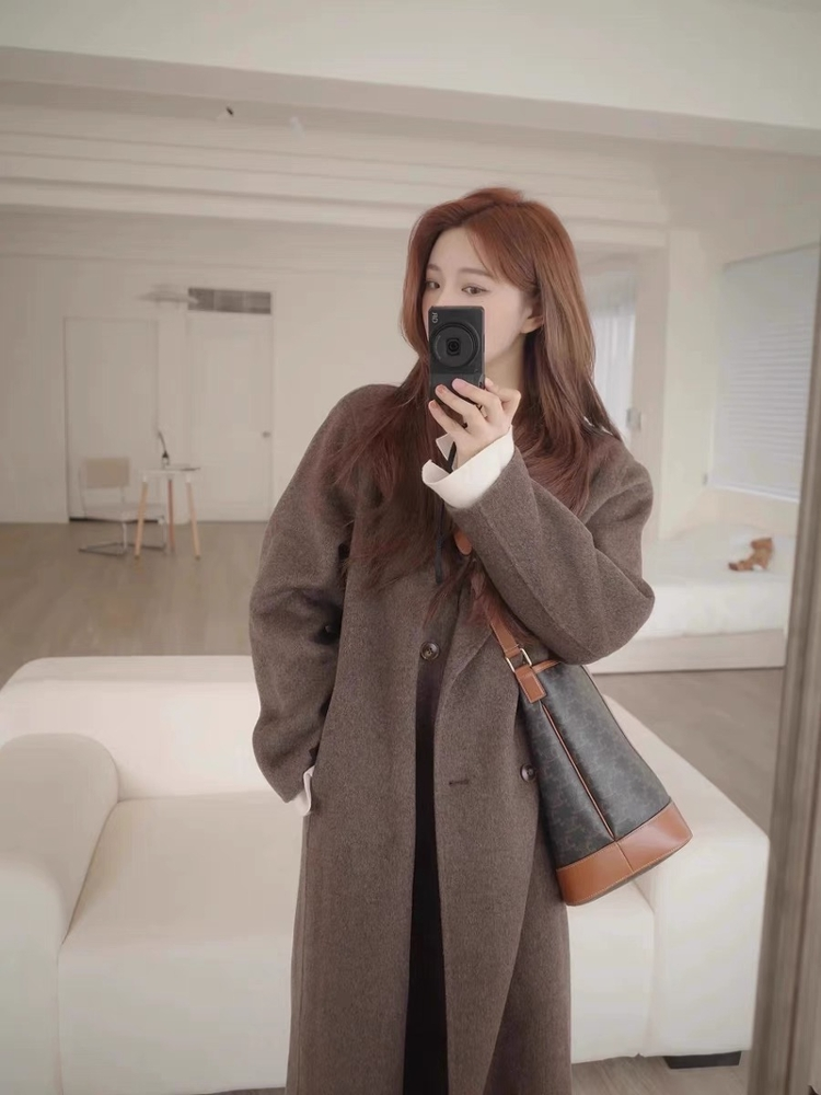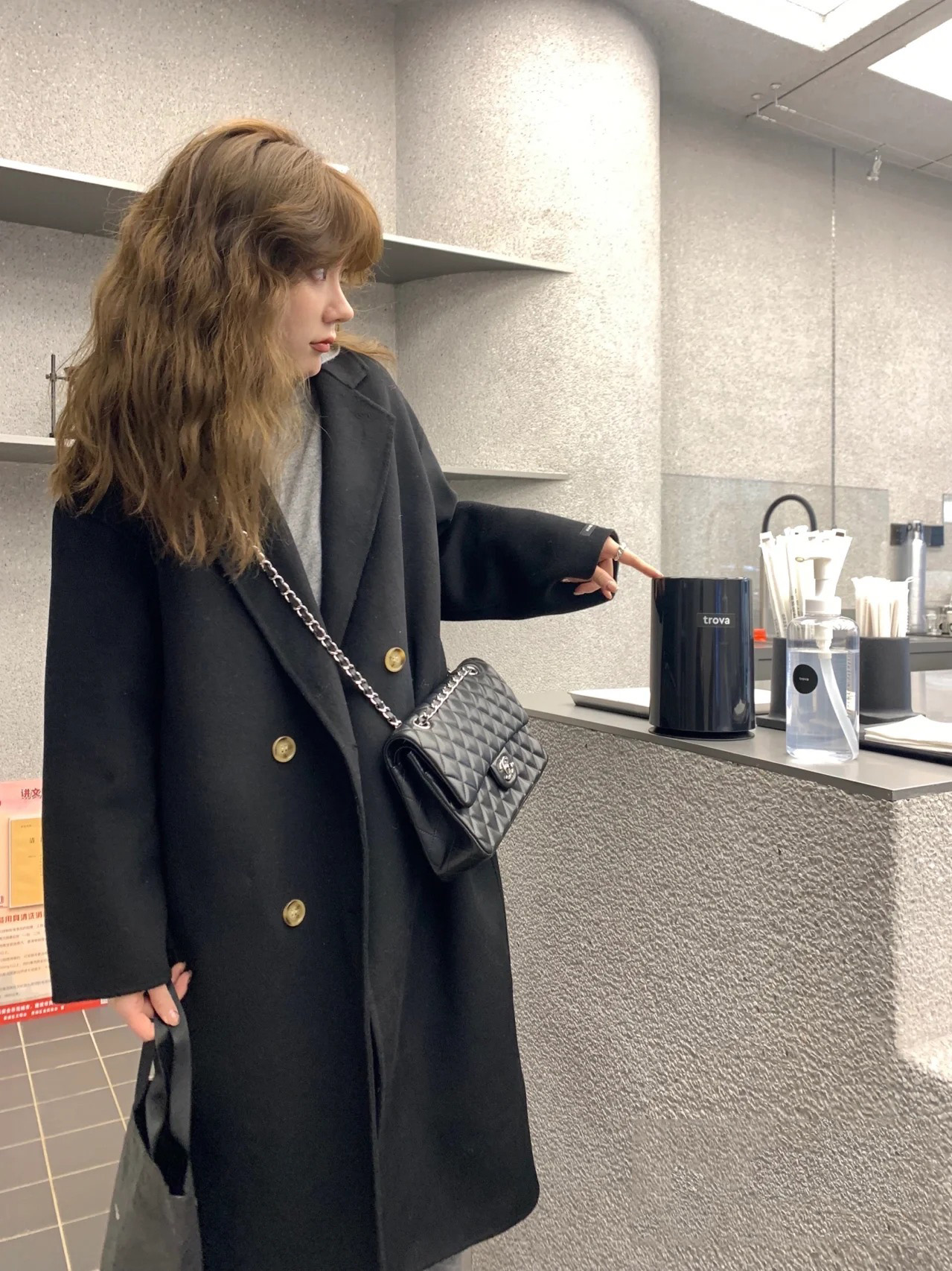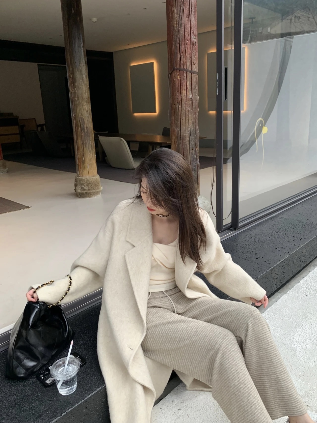 双面羊绒大衣女中长款2025秋冬新款韩版宽松高端燕麦色羊毛呢外套