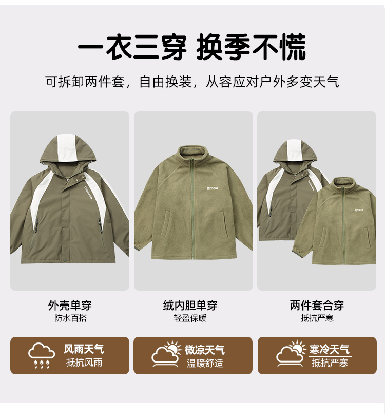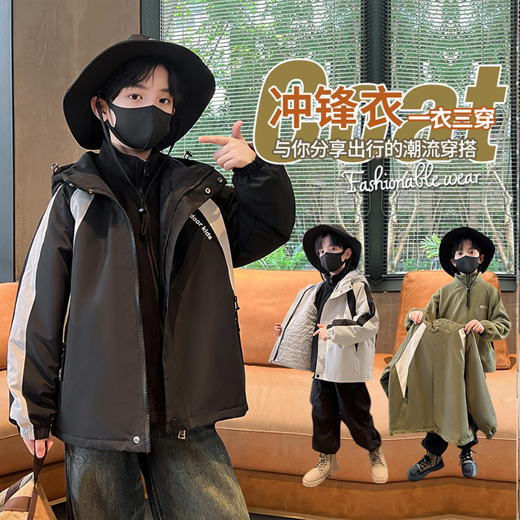 男童冲锋衣三合一冬装厚2025新款外套秋季夹棉儿童可拆卸防风加绒