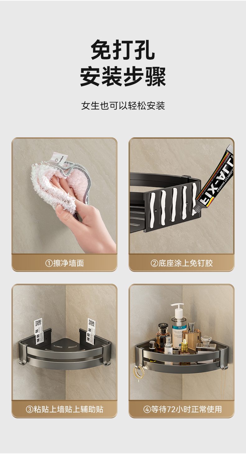 德国KGL浴室卫生间置物架免打孔厕所洗手间三角壁挂洗澡墙角收纳
