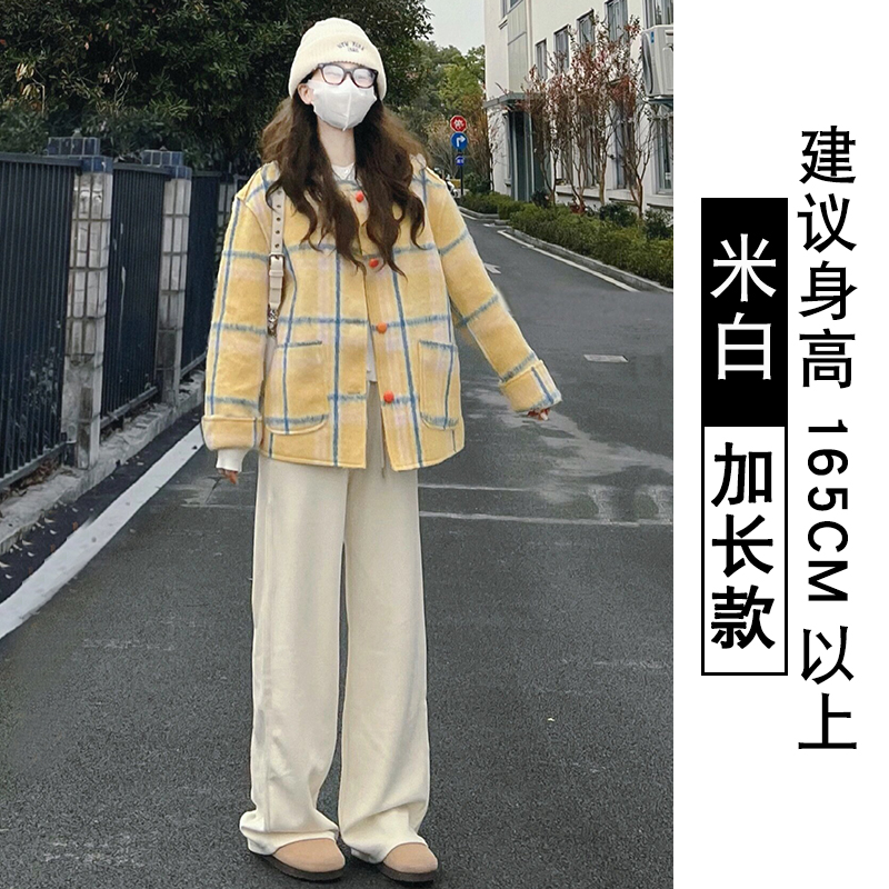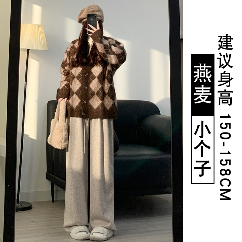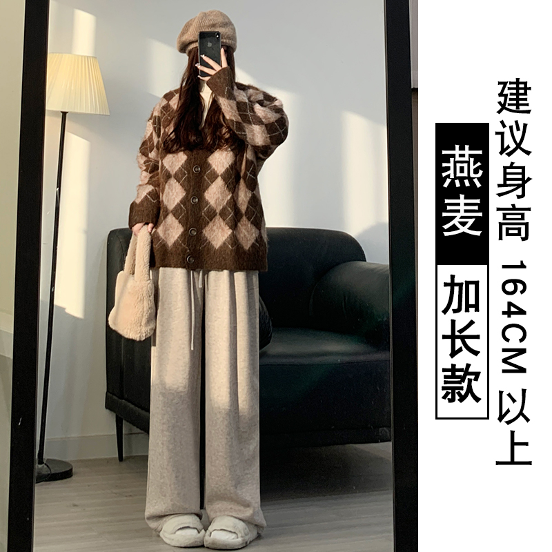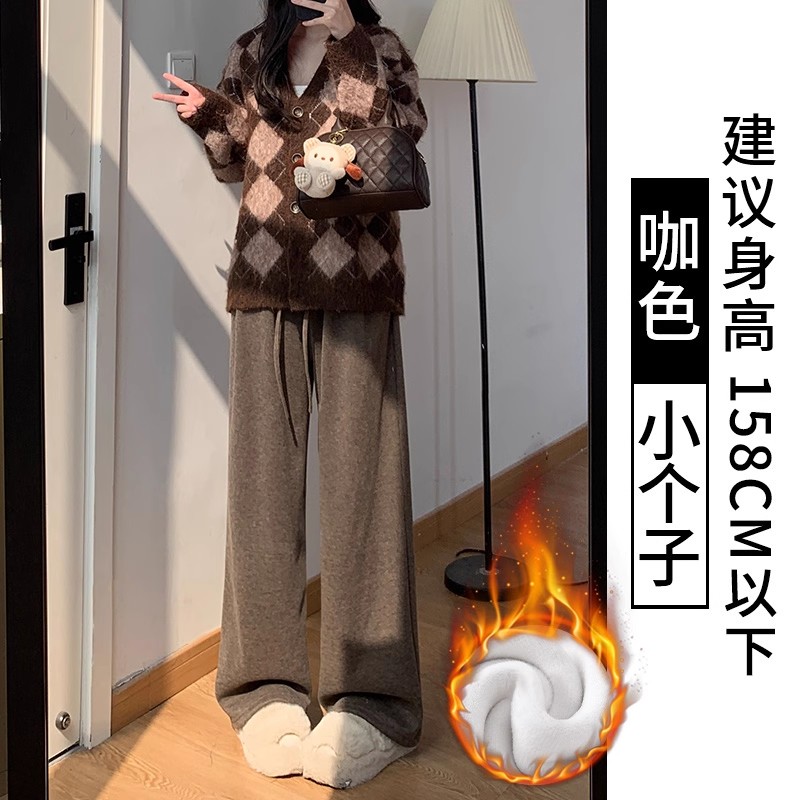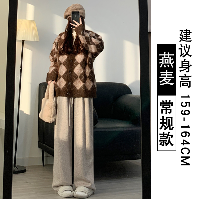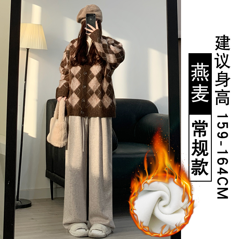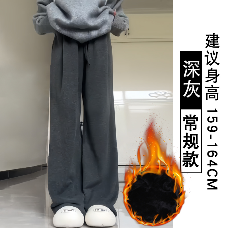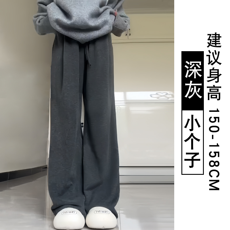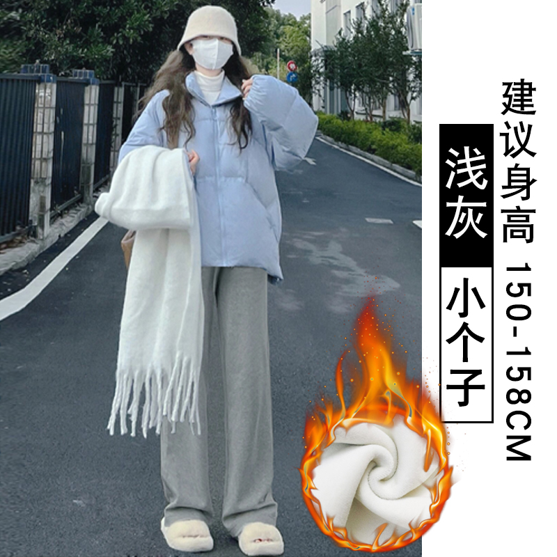 灰色糯米裤女春秋2025年新款加绒高腰直筒垂感慵懒秋冬宽松阔腿裤