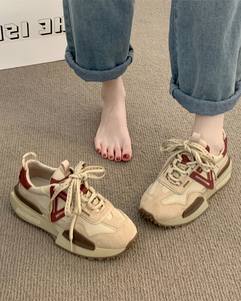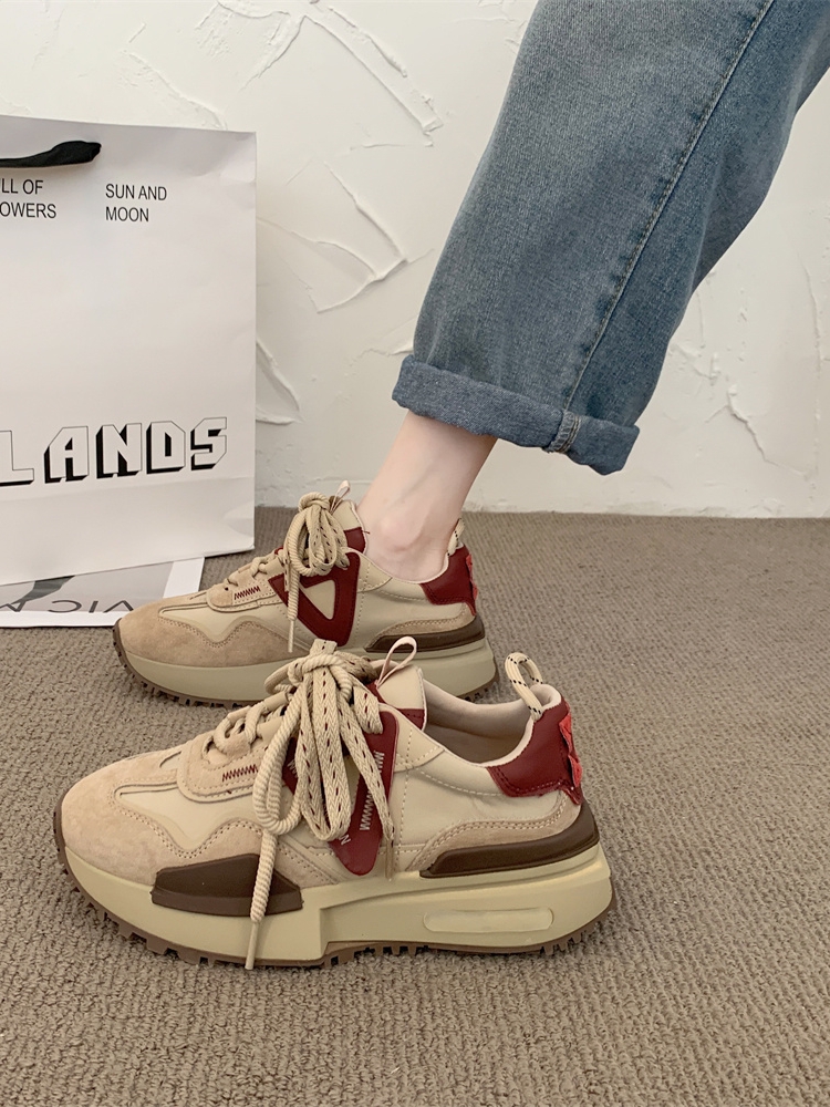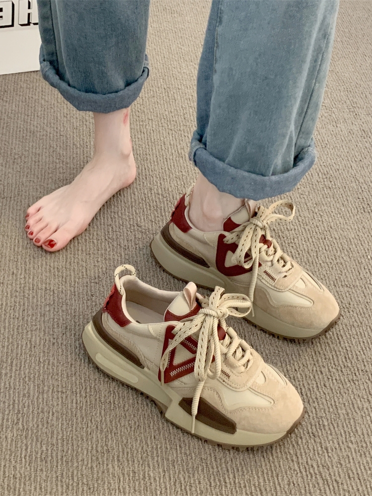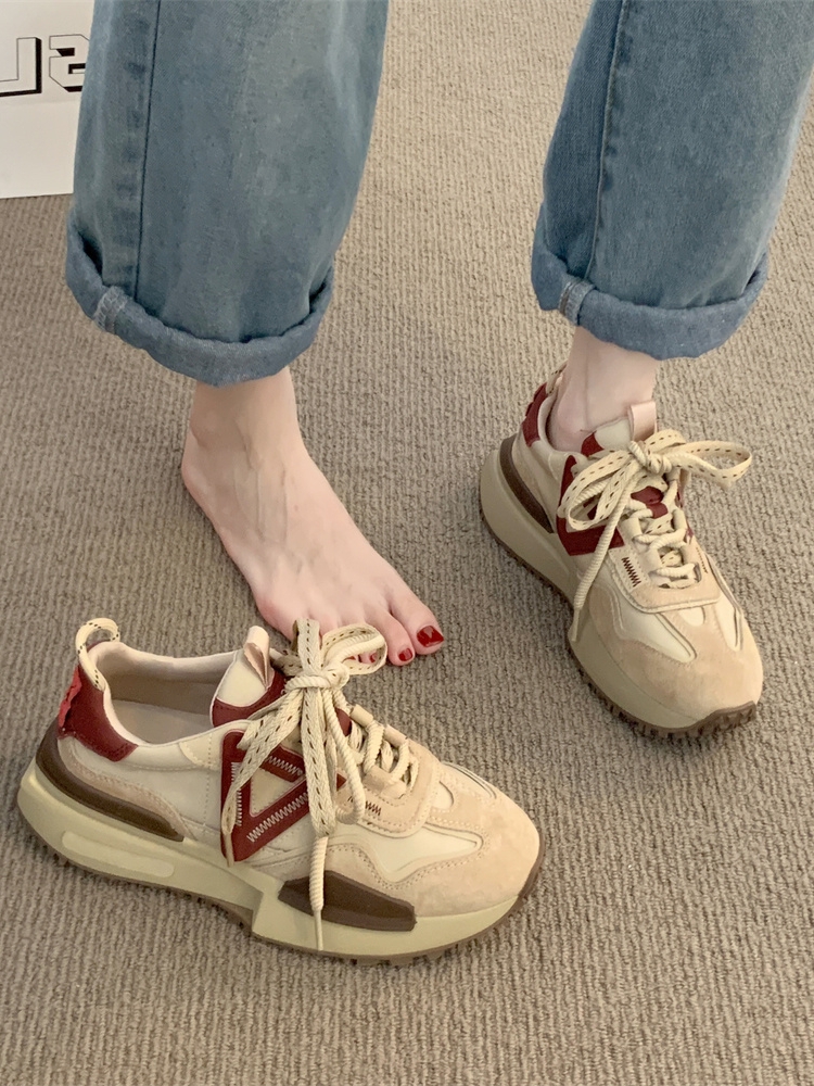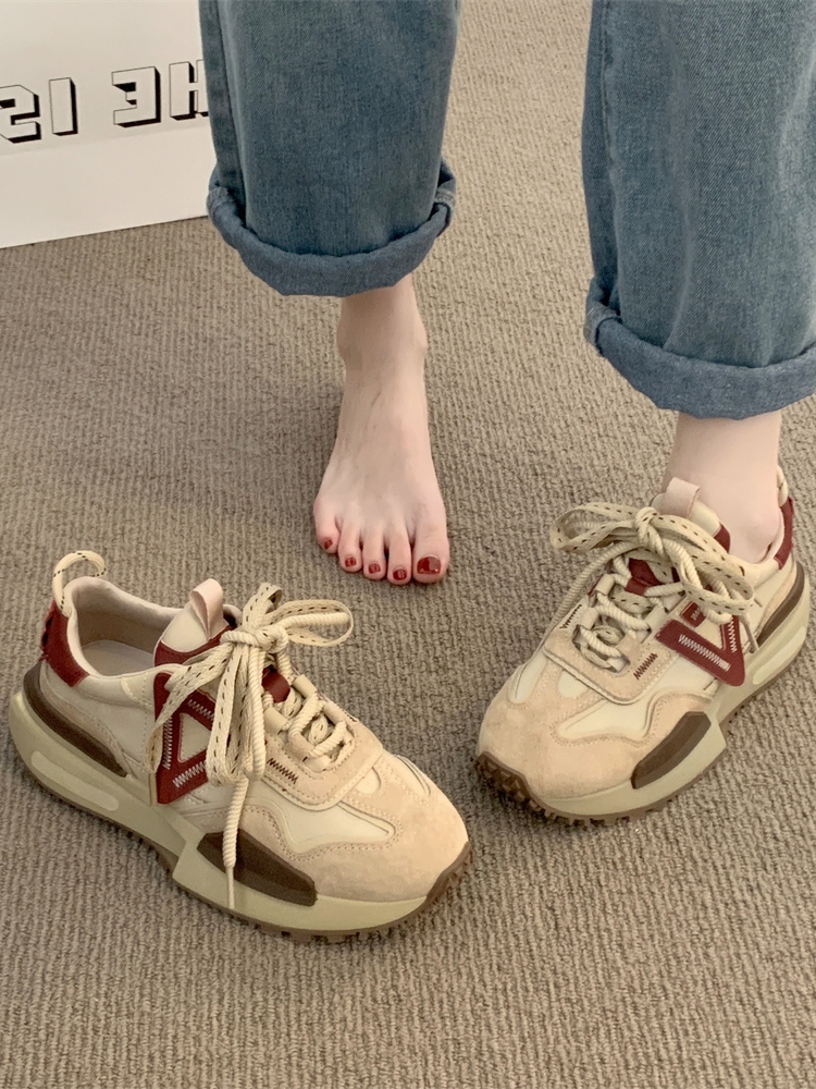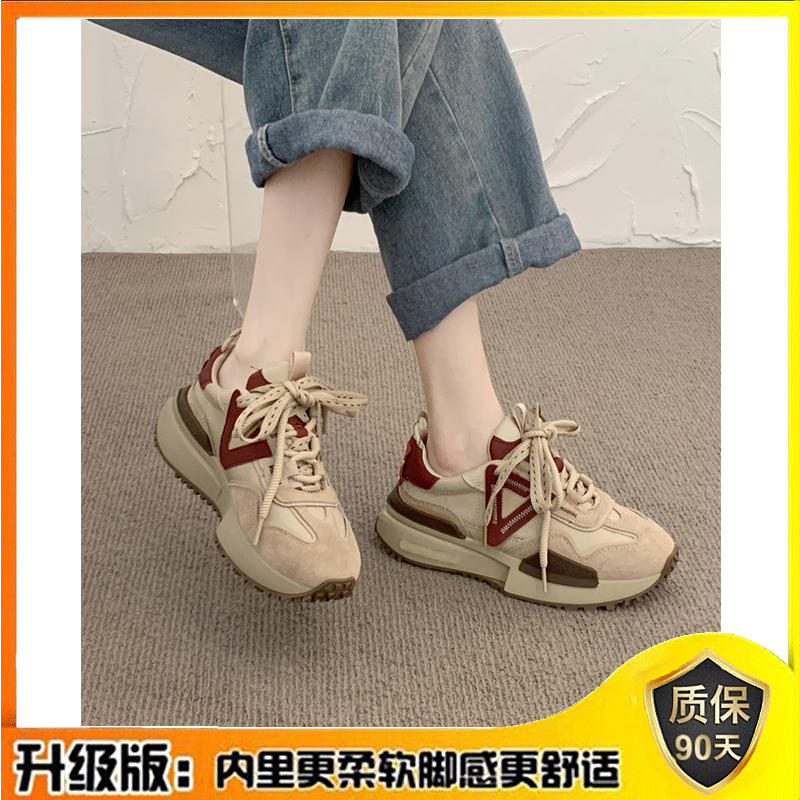 正品小众厚底德训鞋女2025春秋焦糖色华夫小蛮腰运动休闲老爹鞋