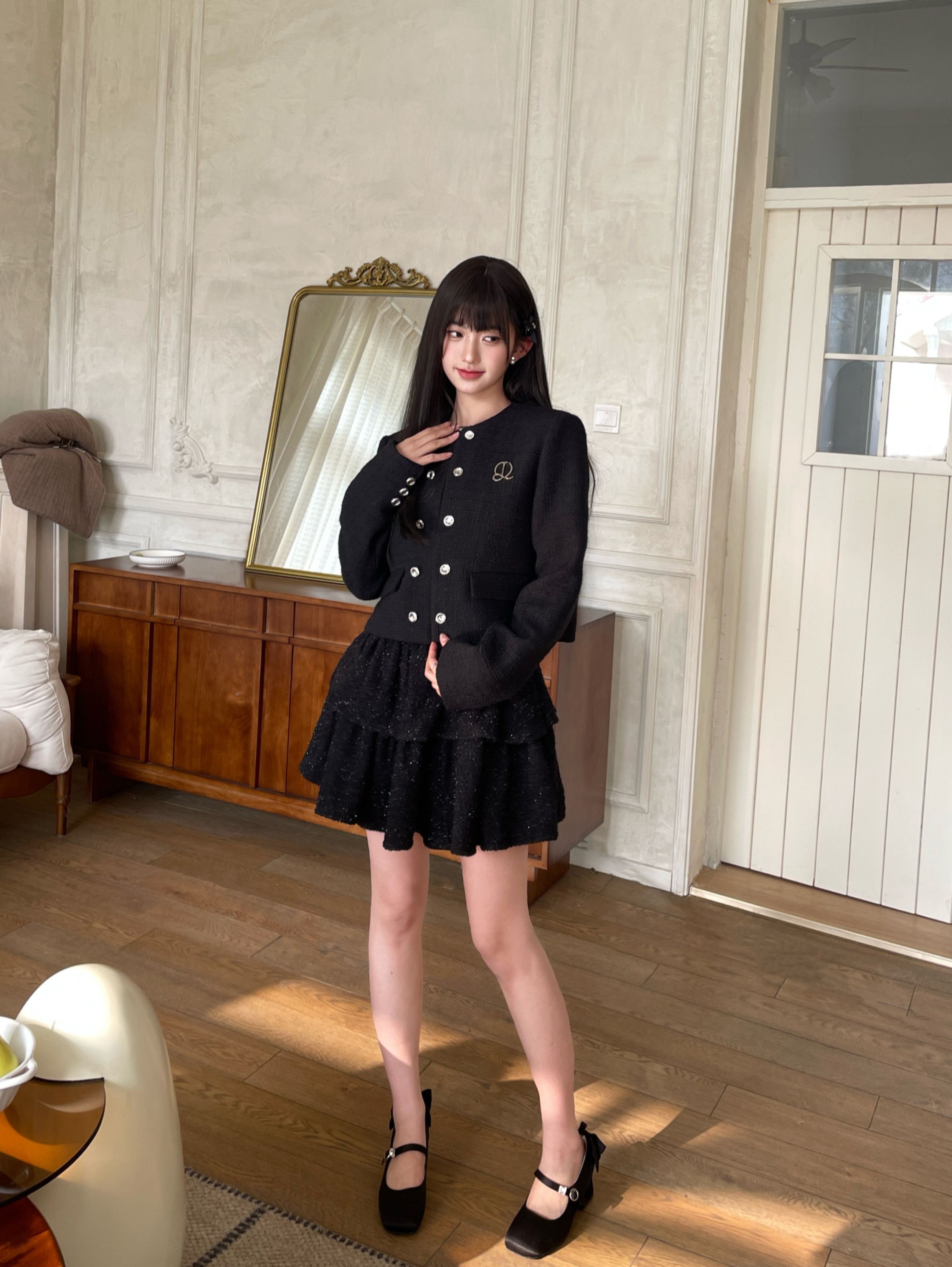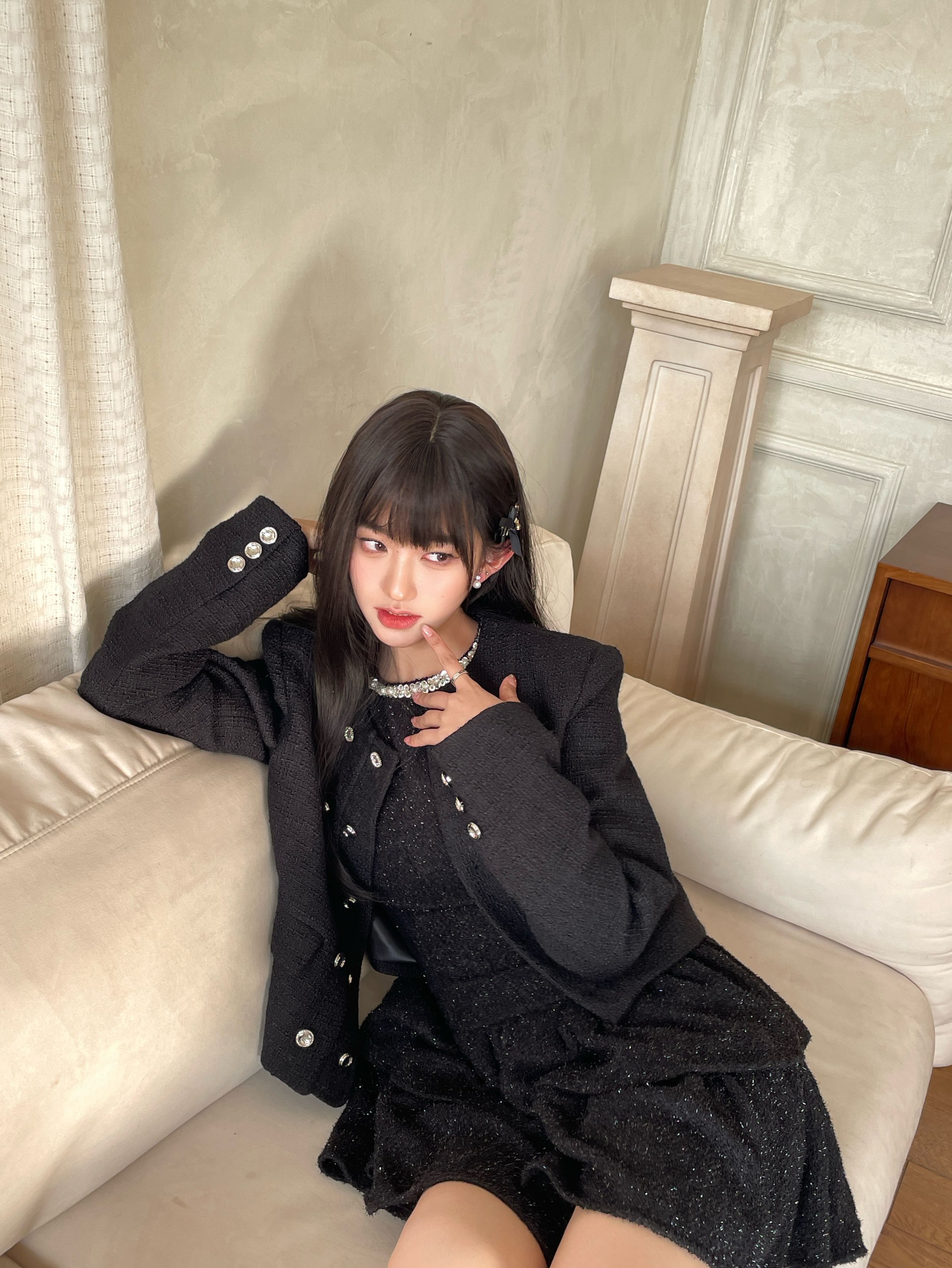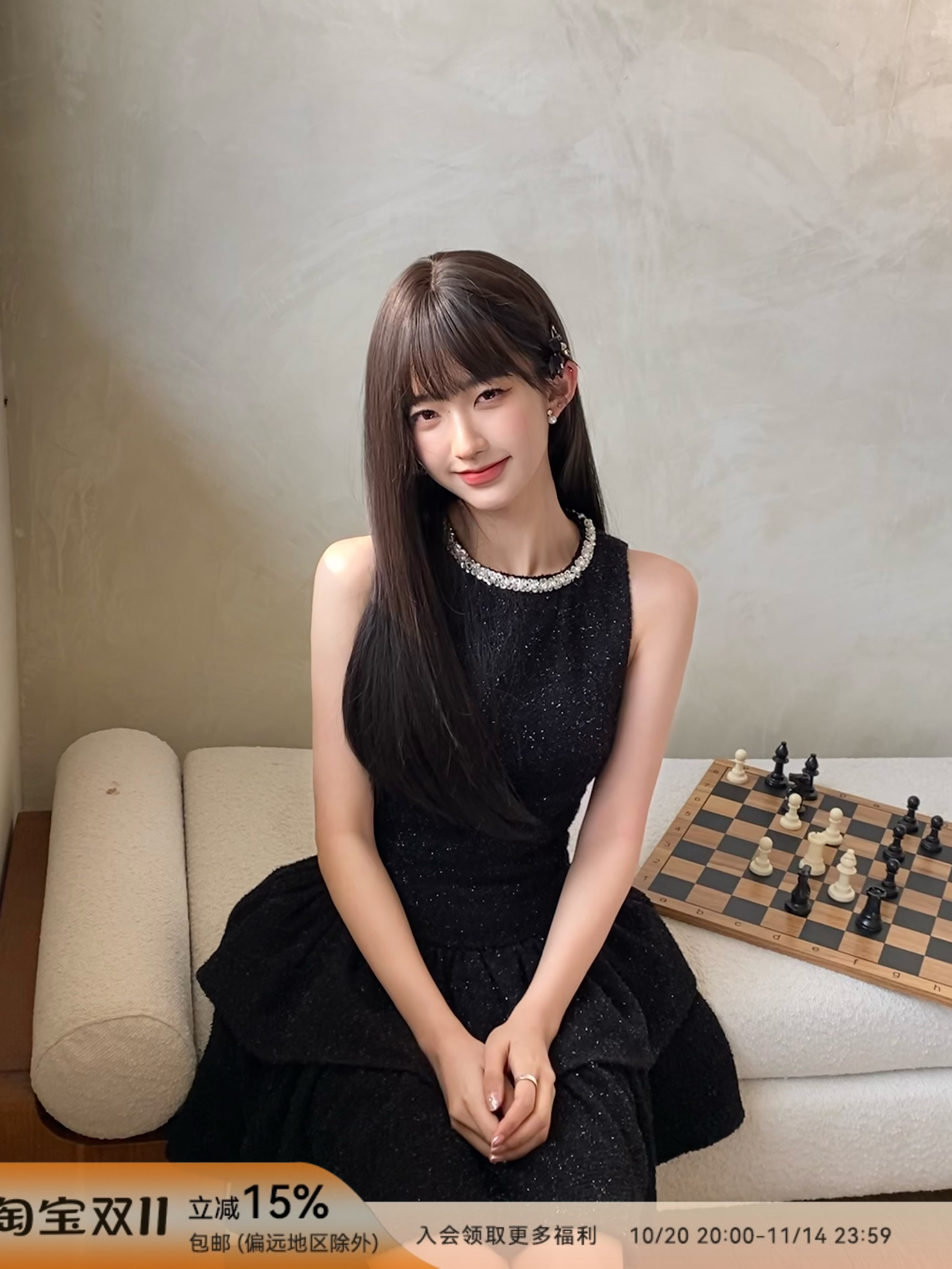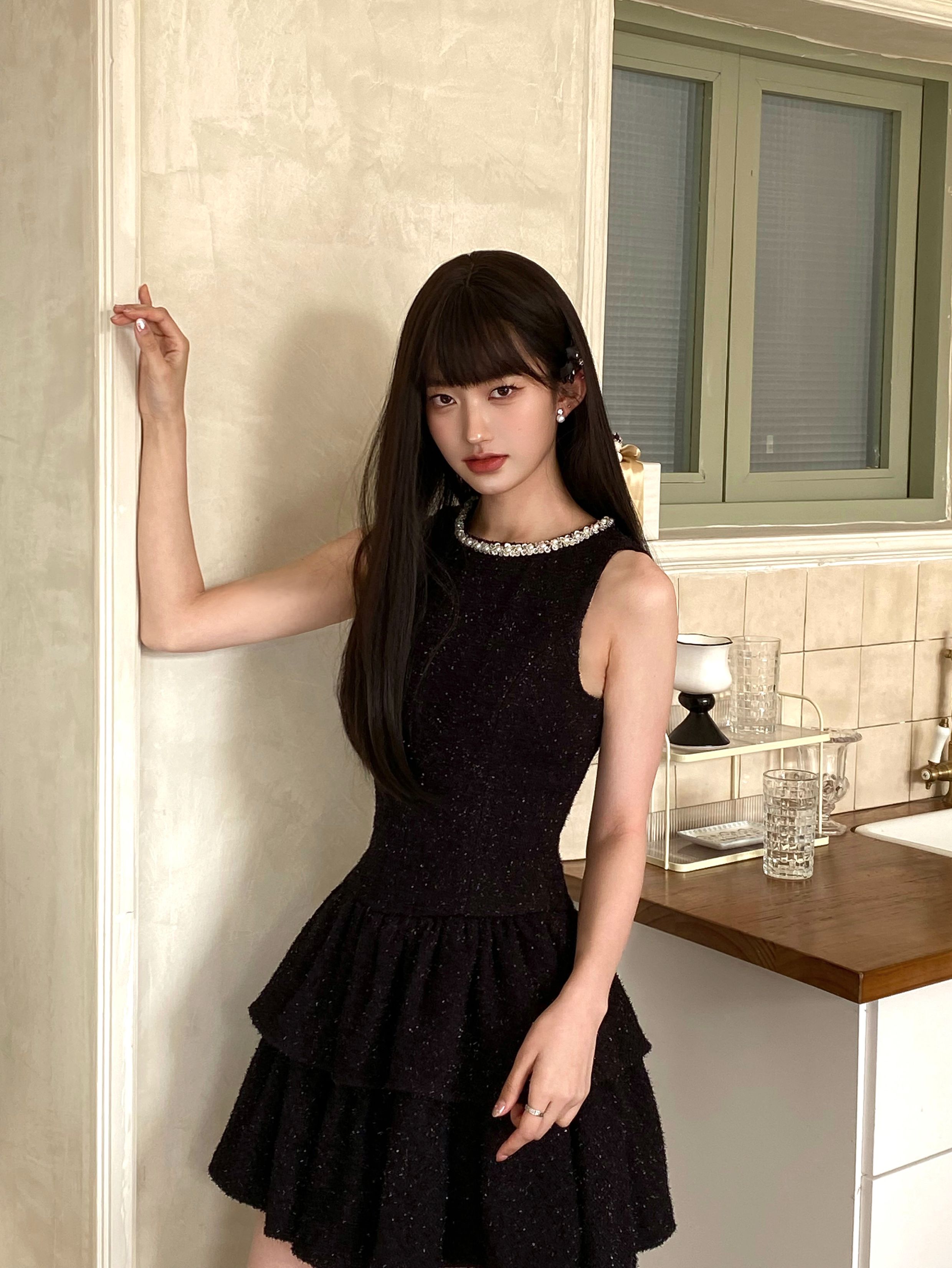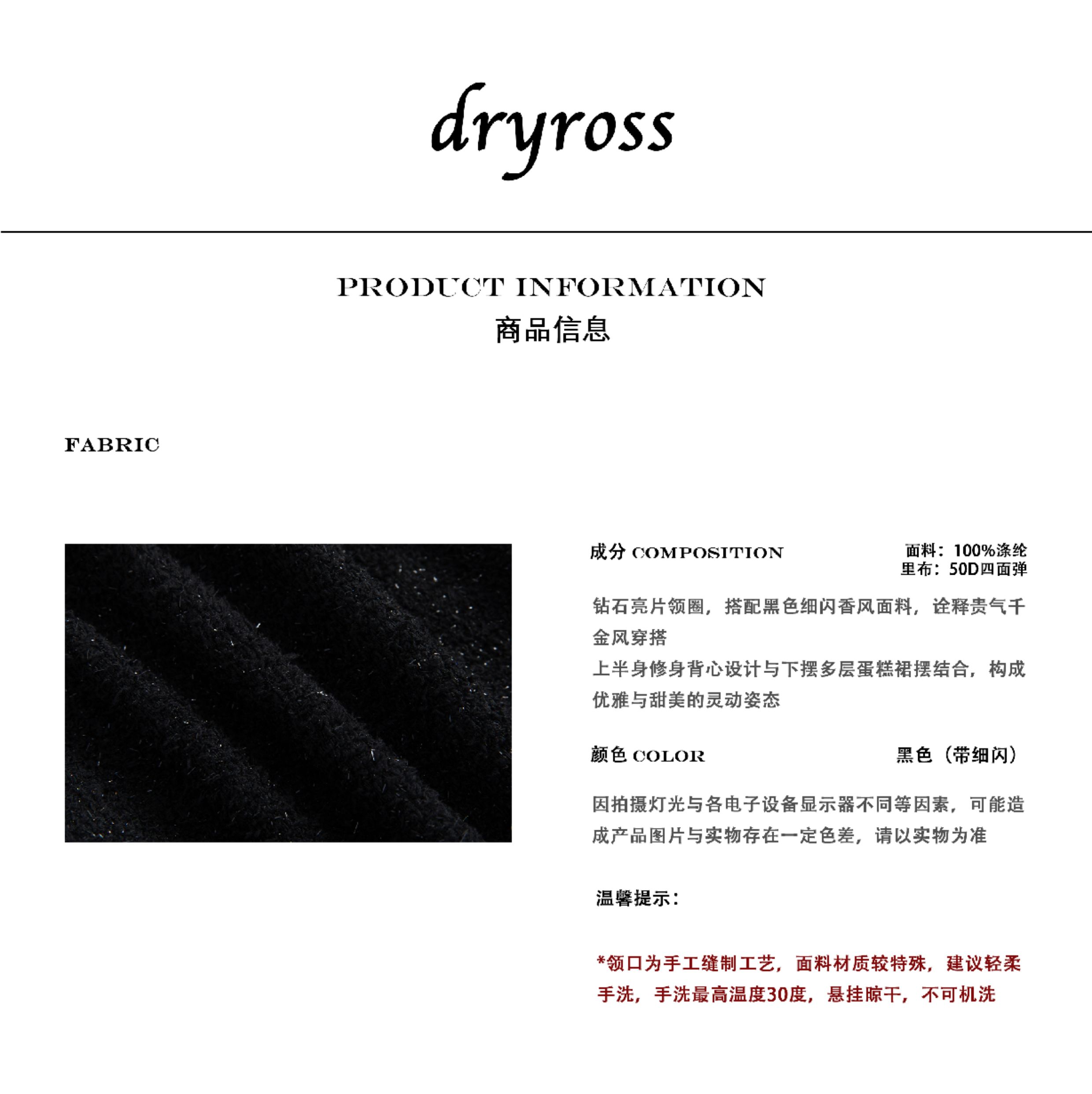 dryross原创 细闪钻石领千金小黑裙背心裙生日约会小礼裙女连衣裙