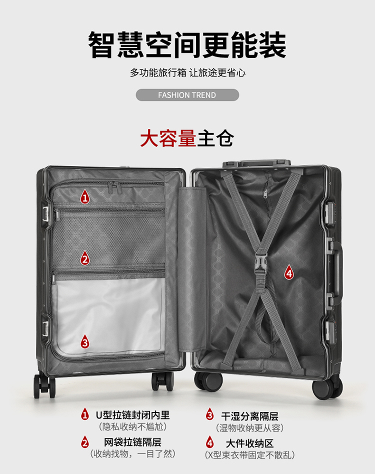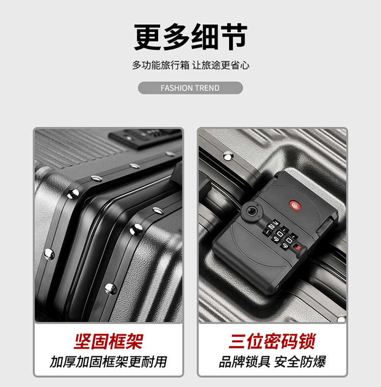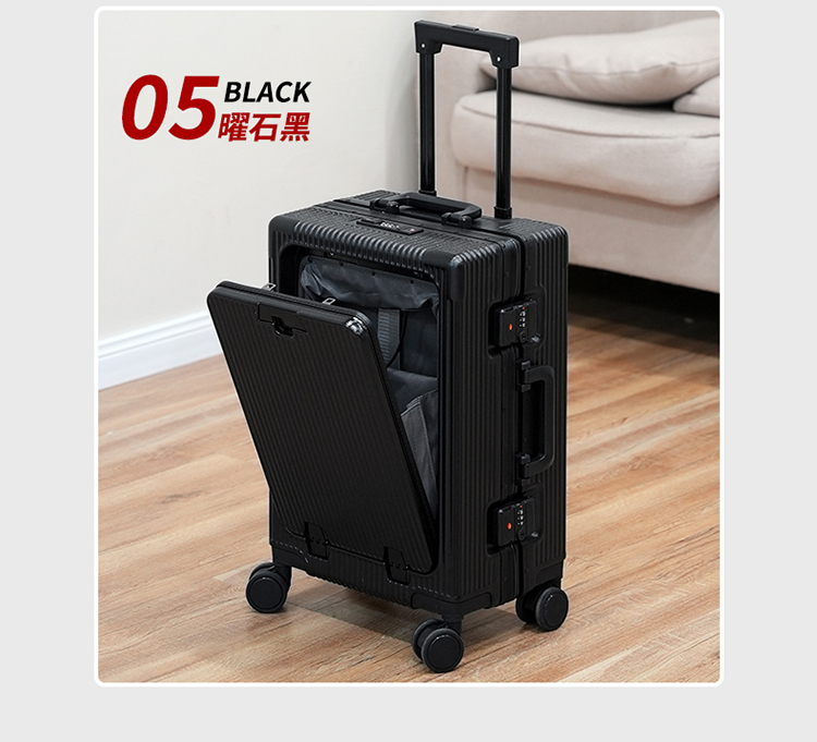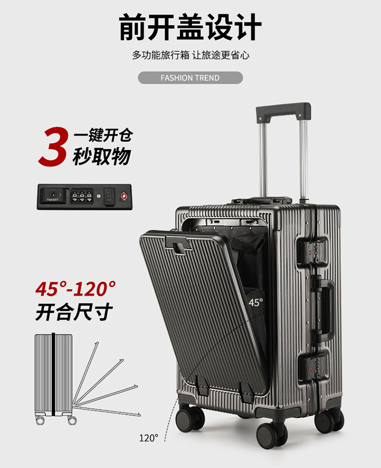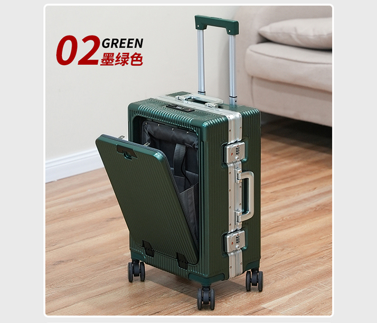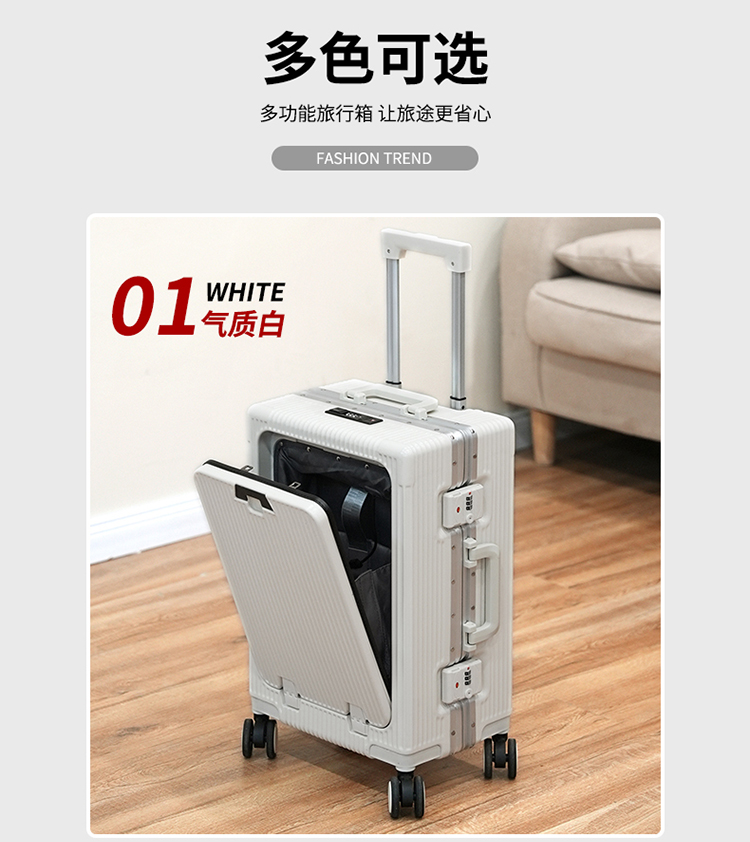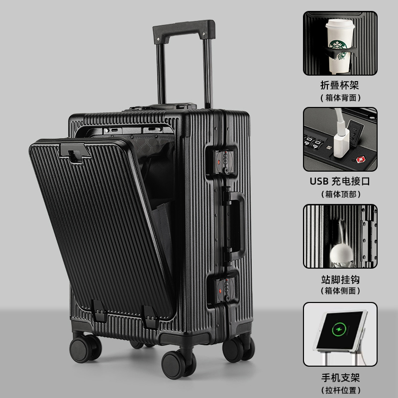 前置开口拉杆旅行李箱铝框大容量多功能轻学生20寸可登机25新款男