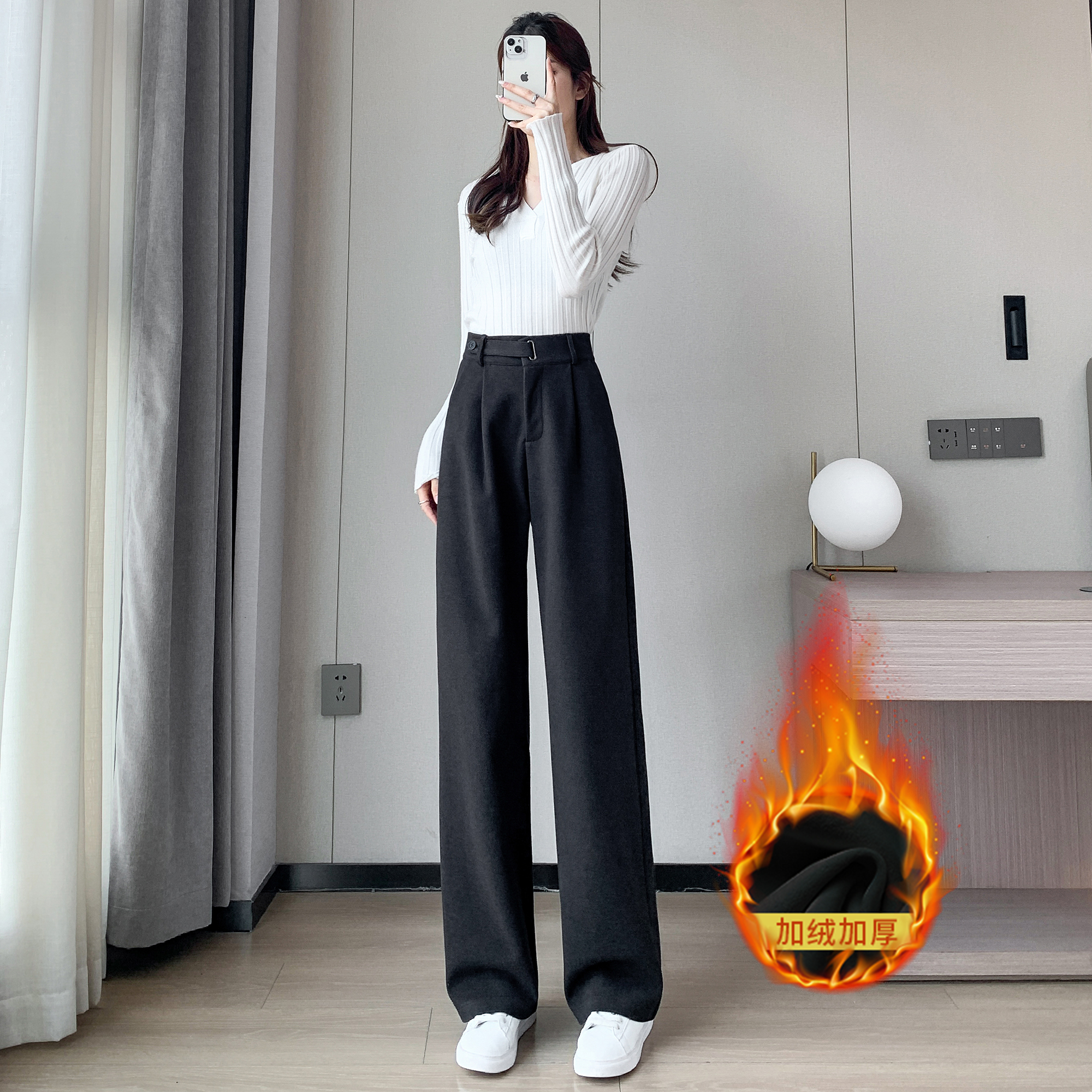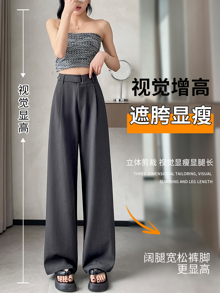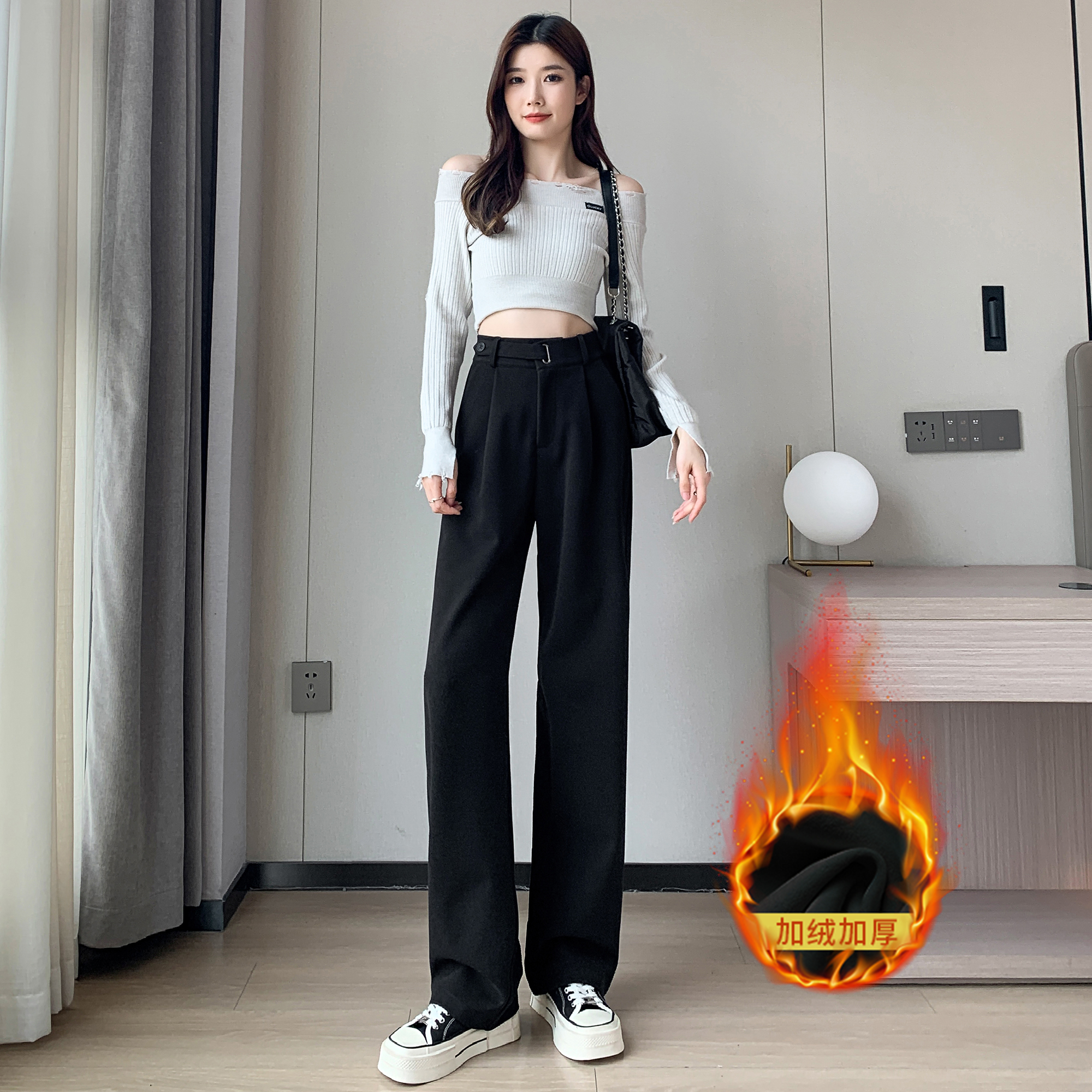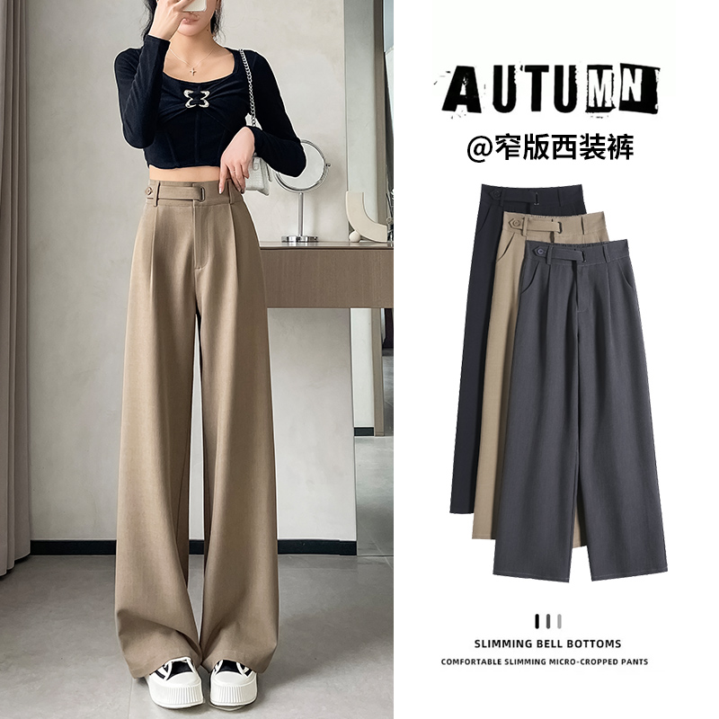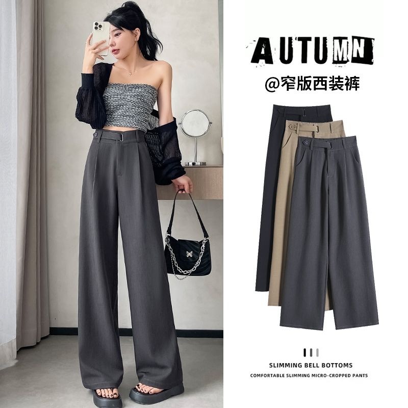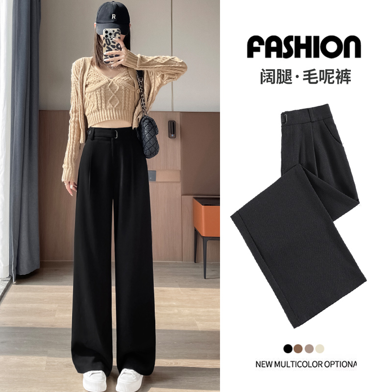 拉夏贝尔黑色高级感西装裤女春夏秋冬高腰垂感加绒加厚窄版阔腿裤