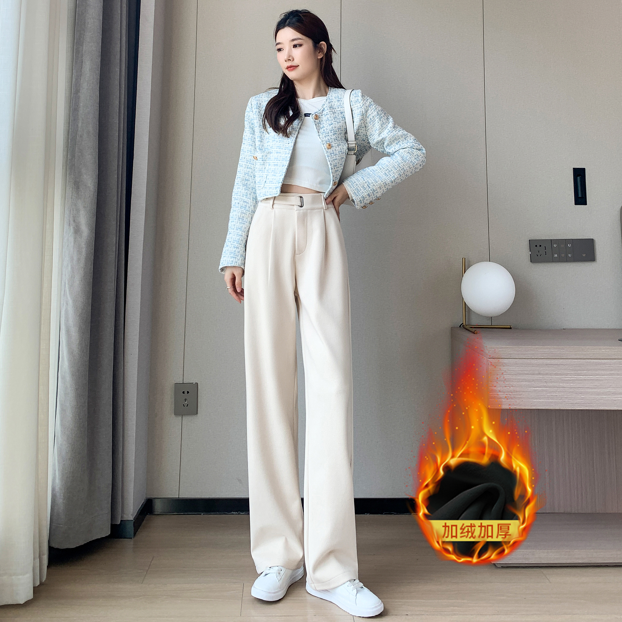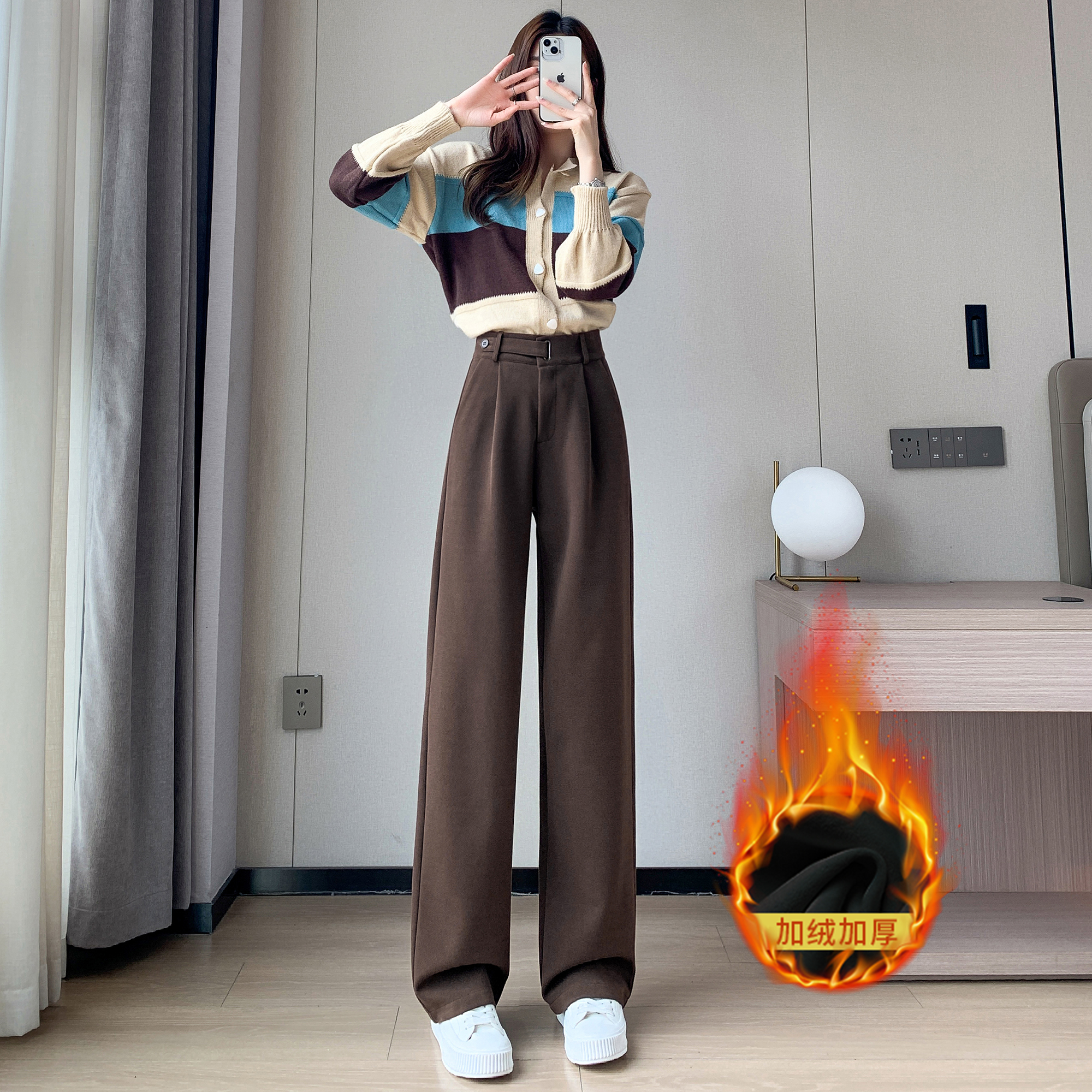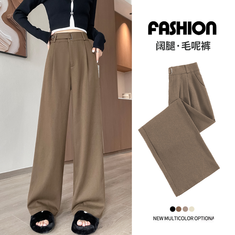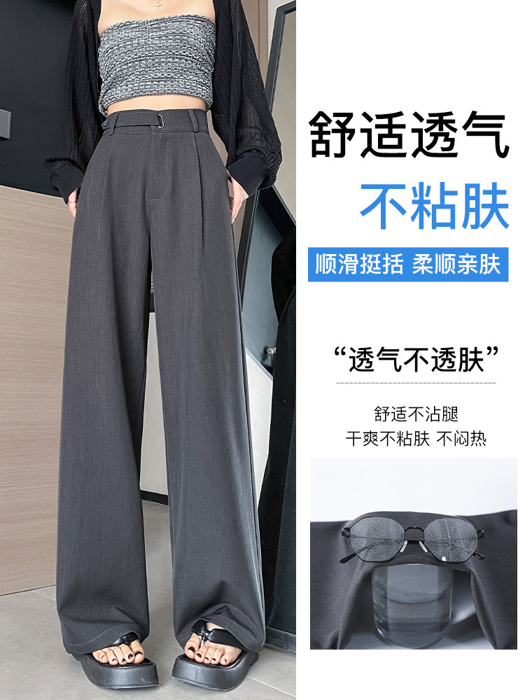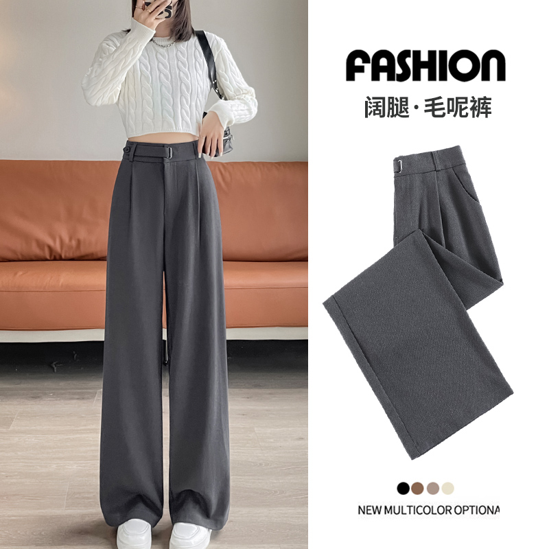拉夏贝尔黑色高级感西装裤女春夏秋冬高腰垂感加绒加厚窄版阔腿裤