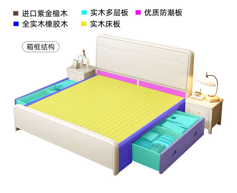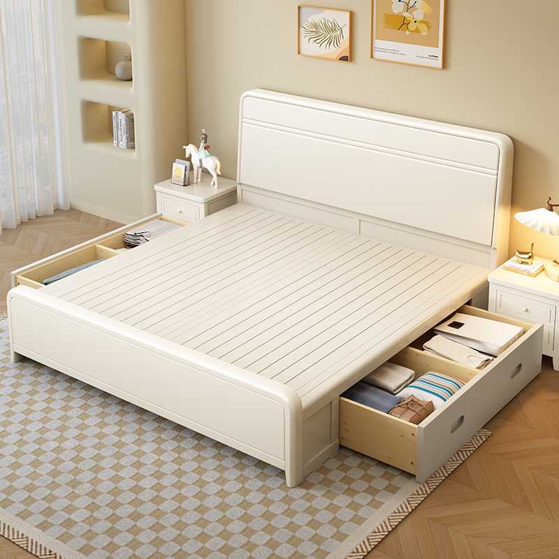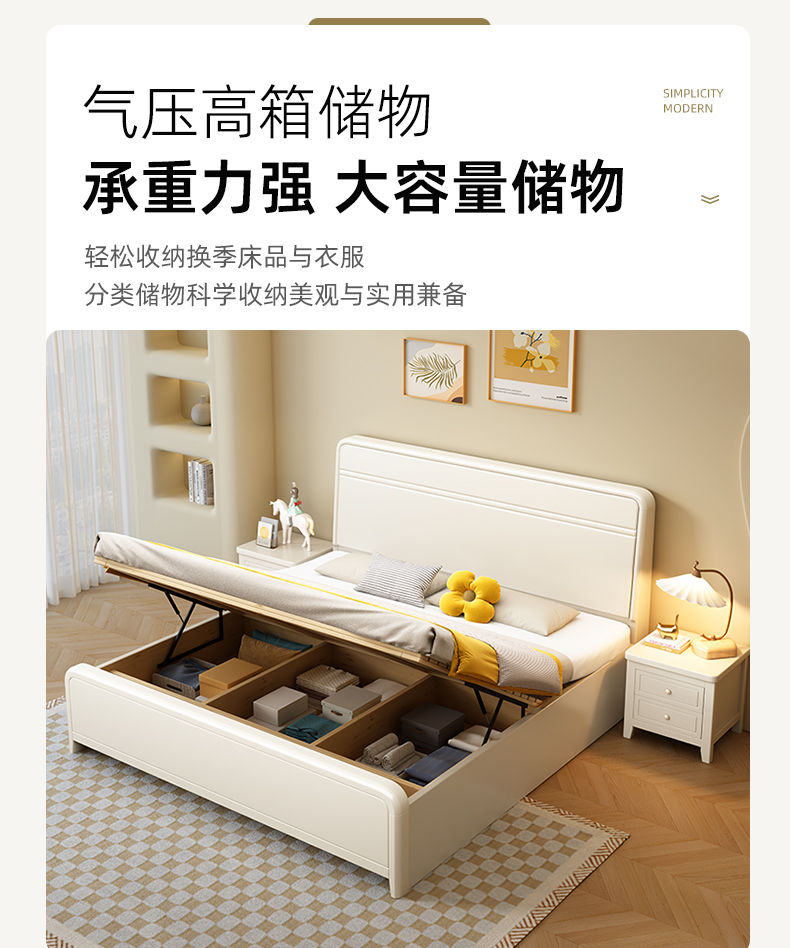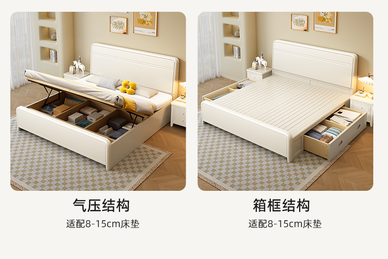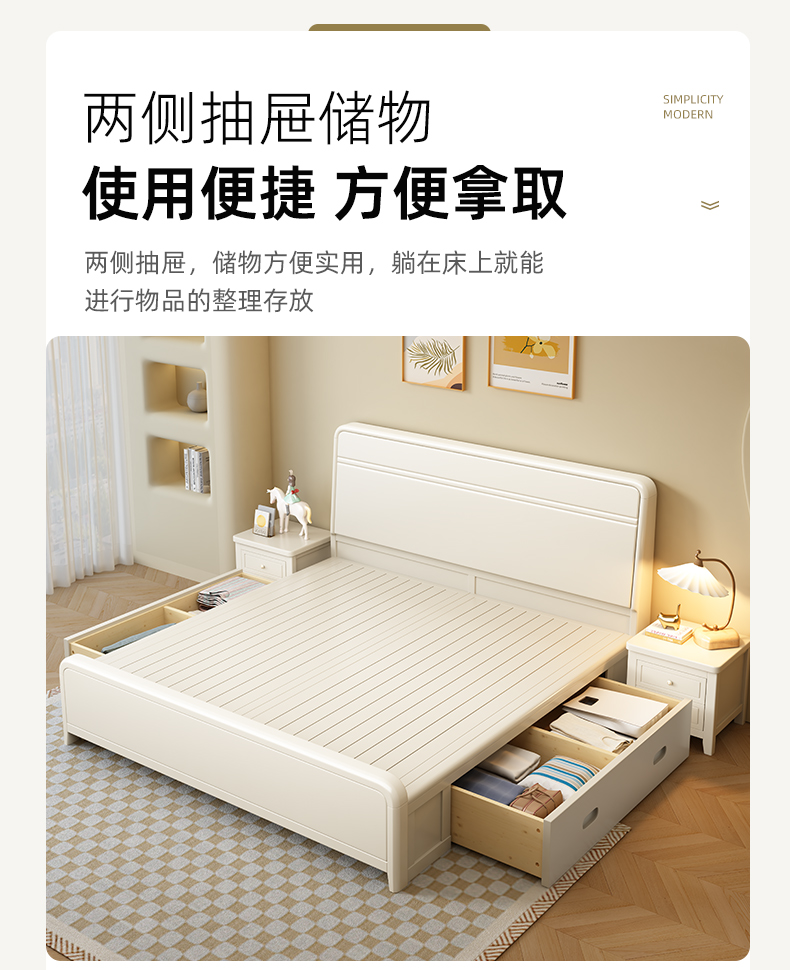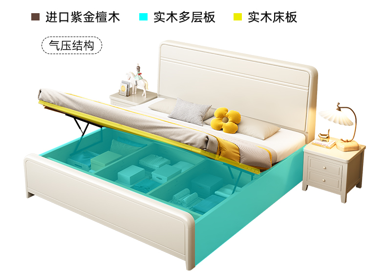 全实木床1.8米双人床现代简约卧室工厂直销气压抽屉1.5白色储物床