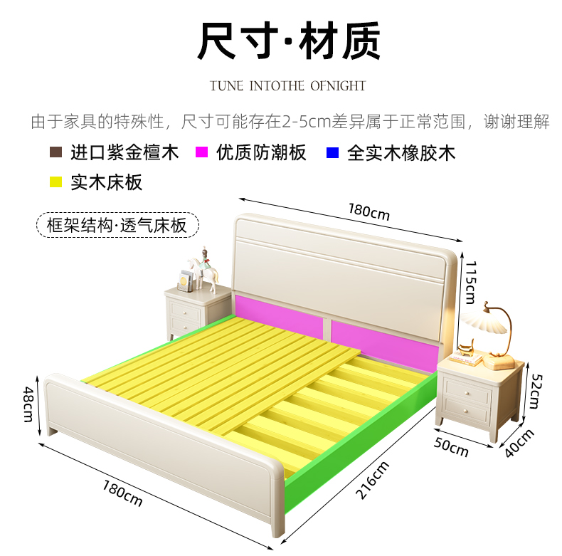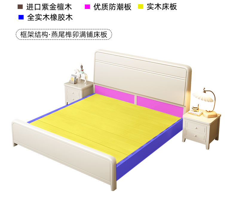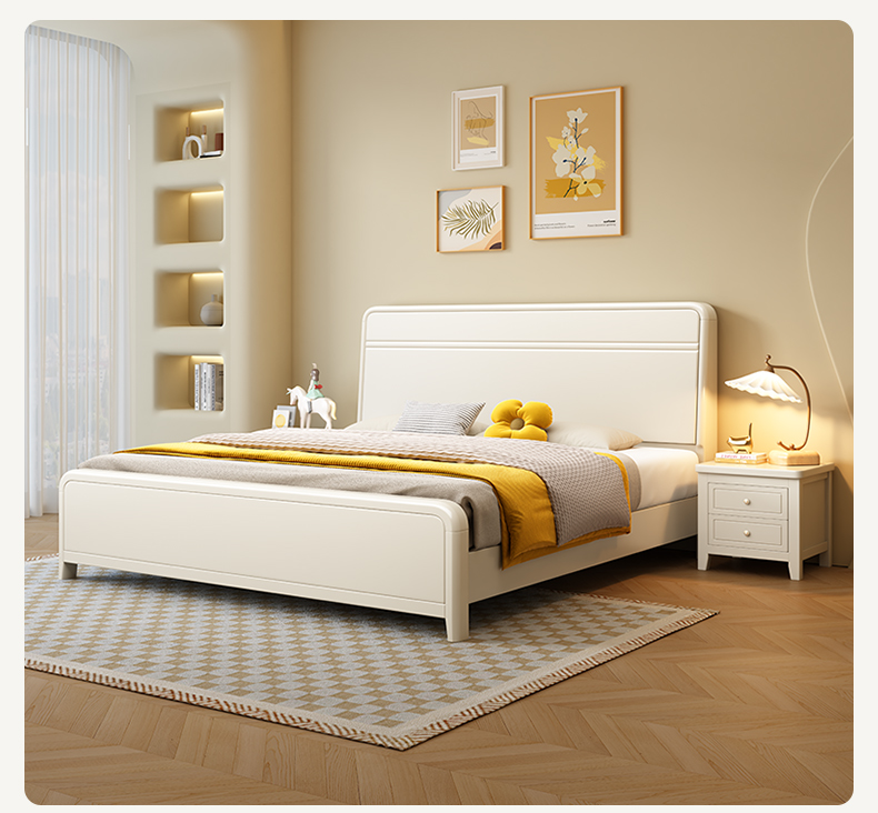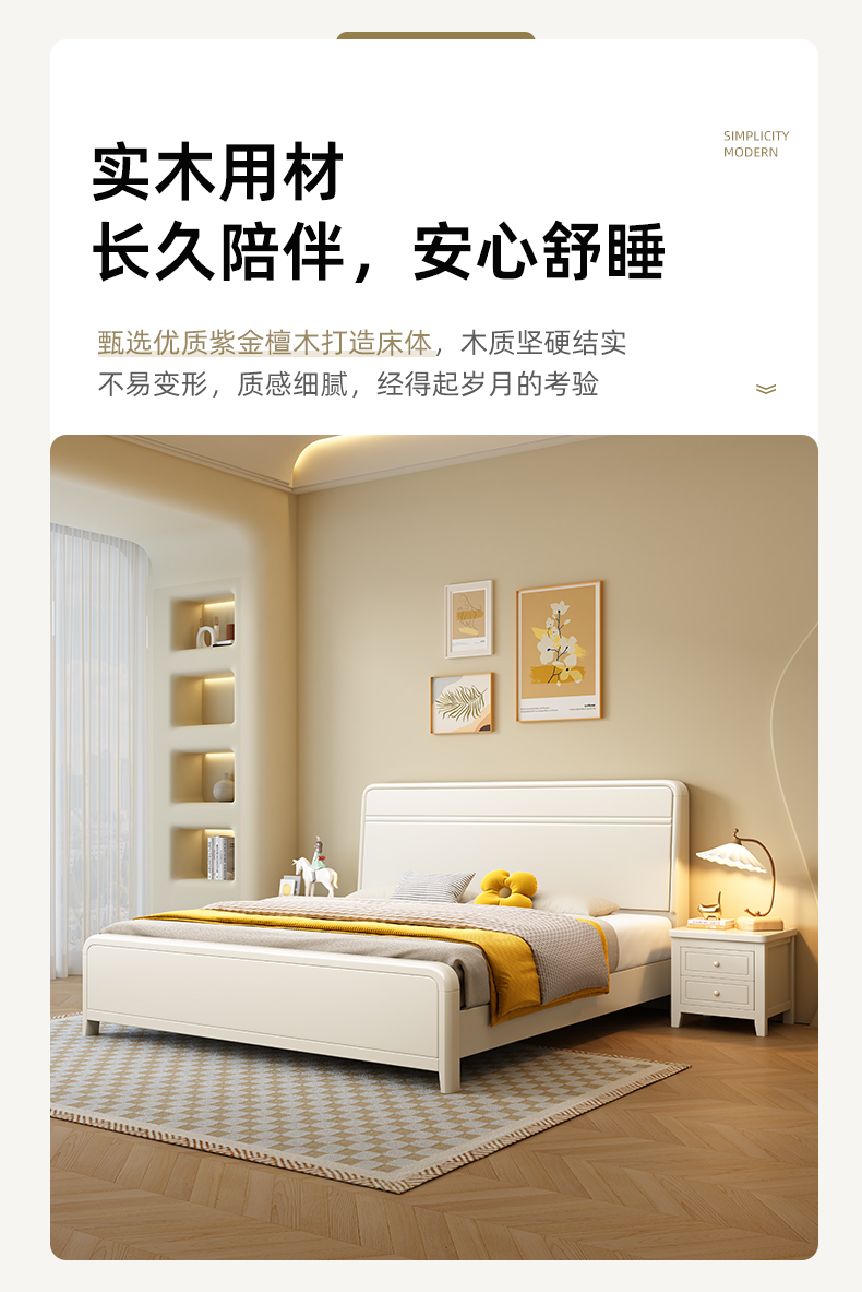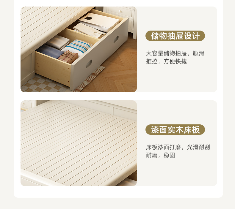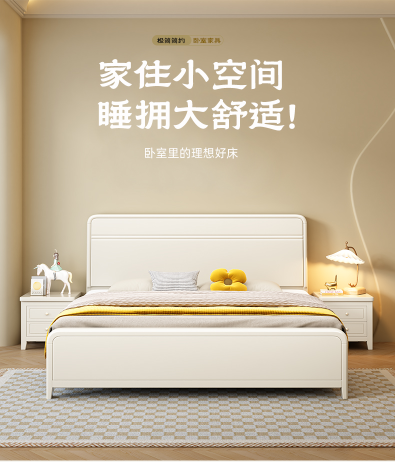 全实木床1.8米双人床现代简约卧室工厂直销气压抽屉1.5白色储物床