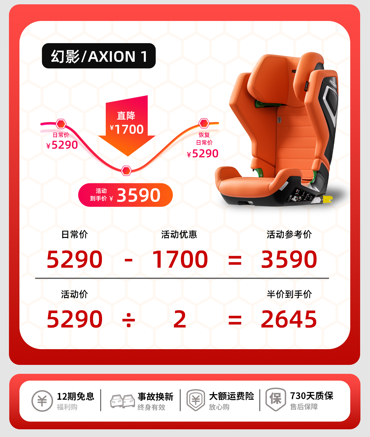 德国进口RECARO儿童安全座椅3-12岁中大童汽车载专用AXION 1幻影