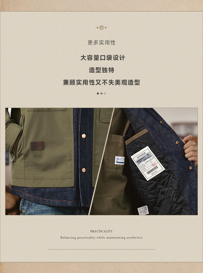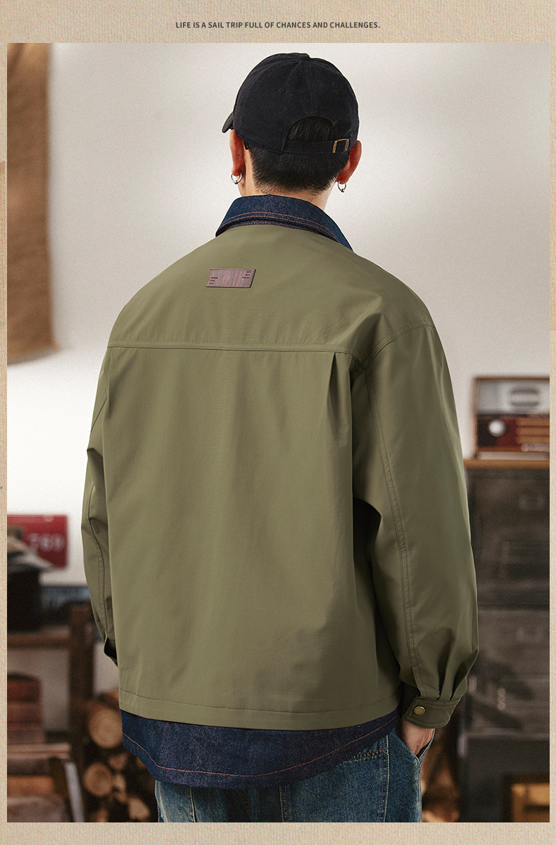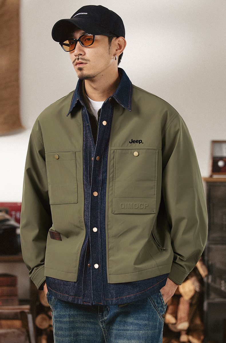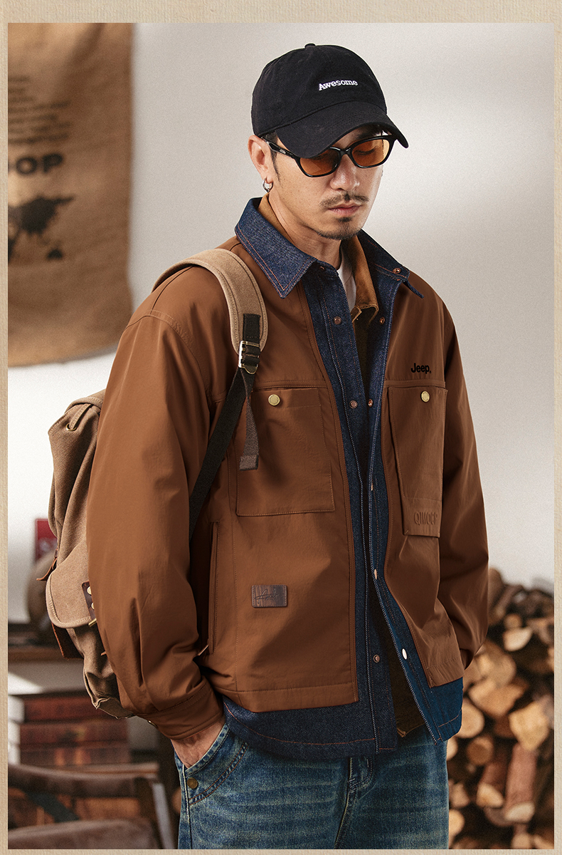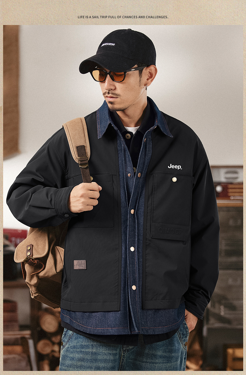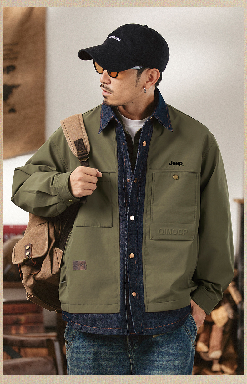 JEEP吉普工装夹克男士短款外套复古秋冬季2025新款假两件牛仔拼接