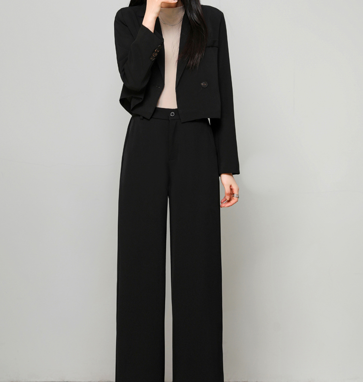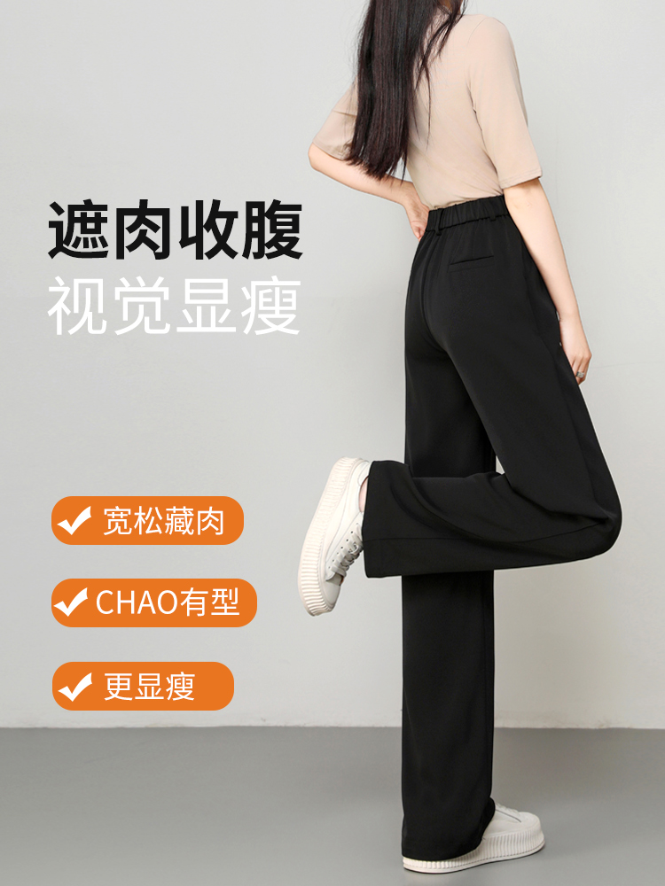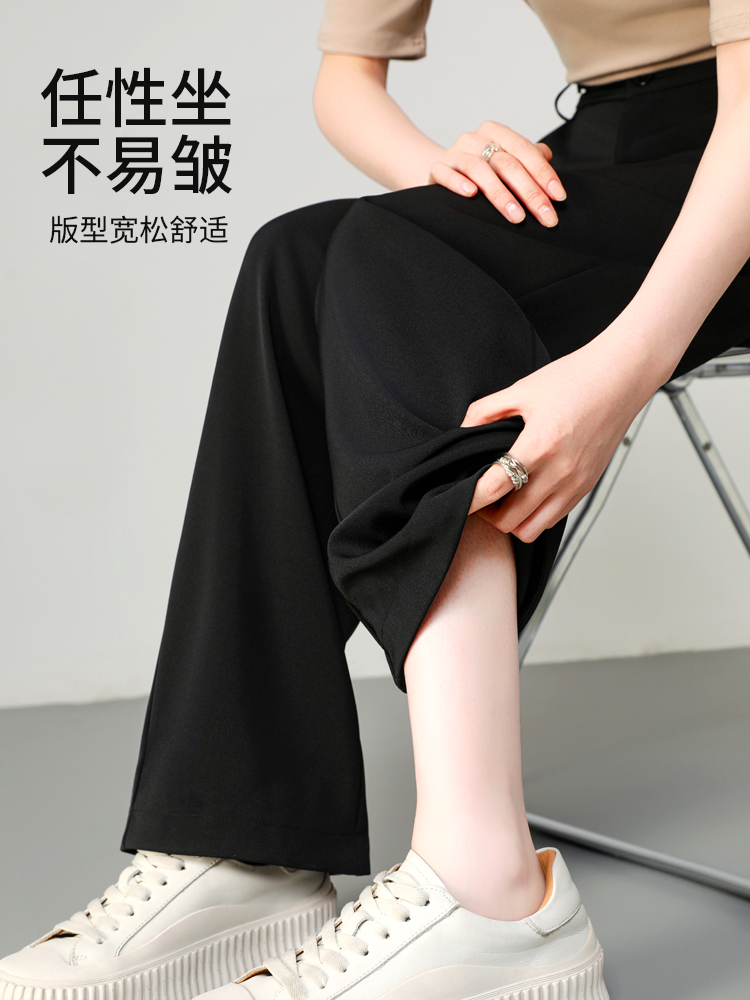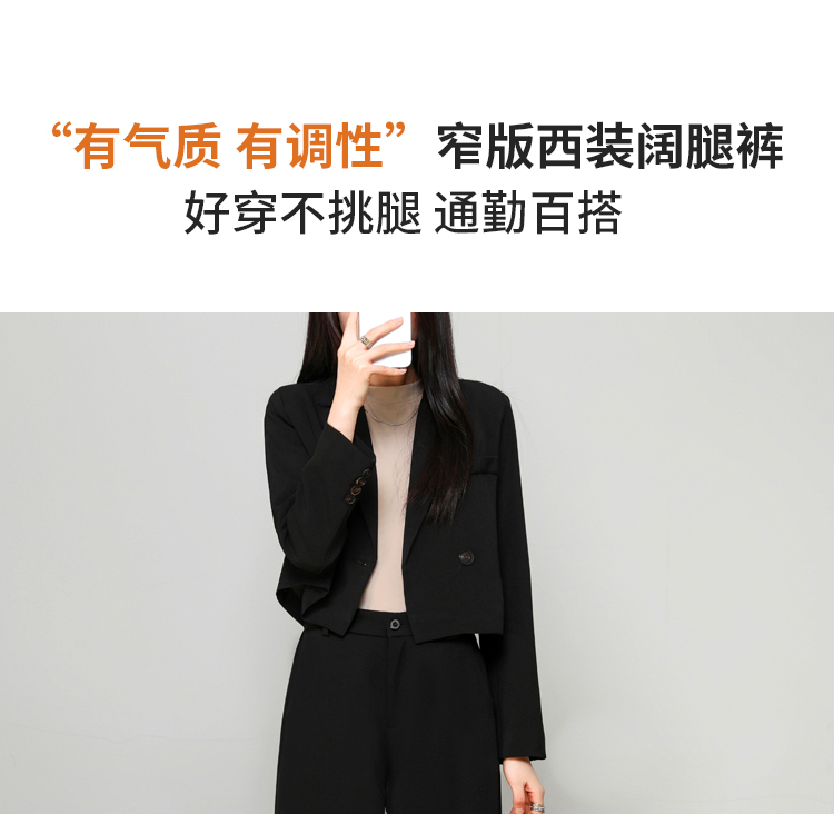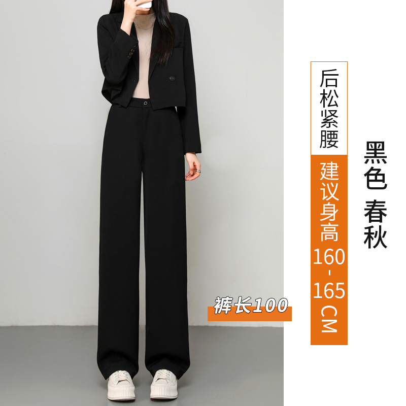 黑色西装裤女秋冬加绒高级垂坠感职业休闲小个子阔腿裤窄版直筒裤