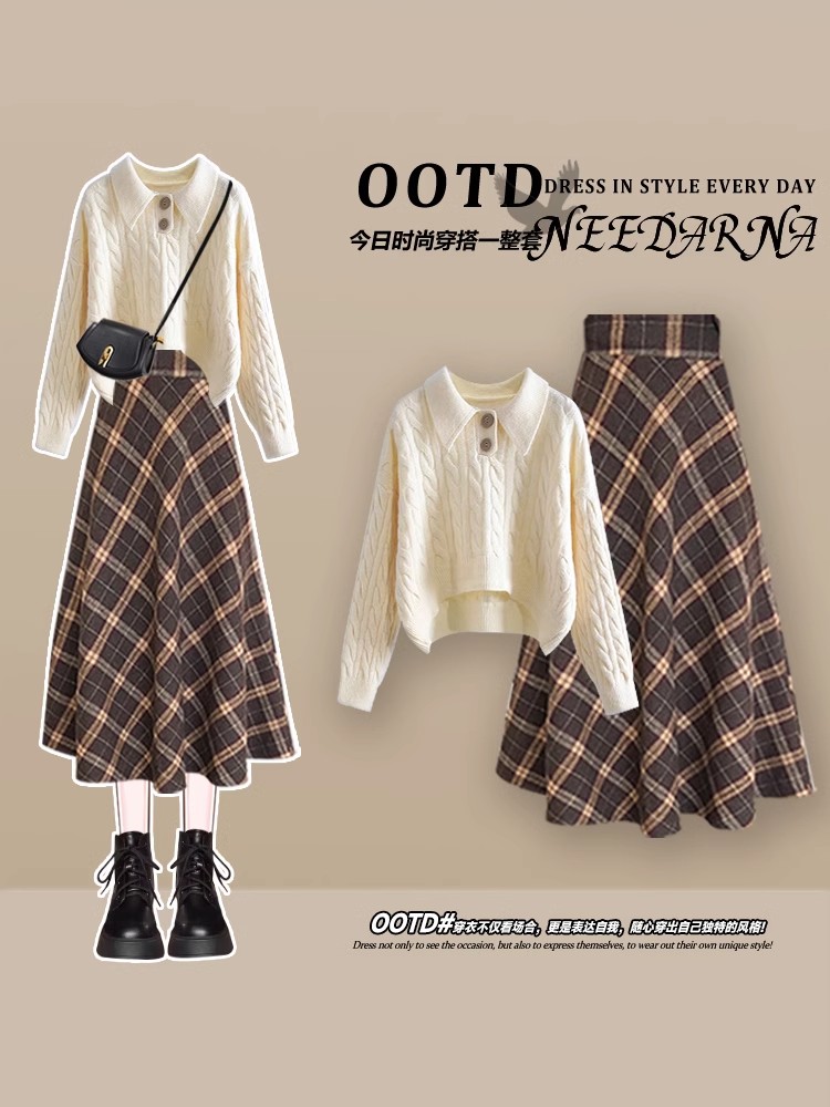 英国DGKP一整套入秋韩系舒芙蕾轻法风穿搭针织连衣裙秋冬美拉德女
