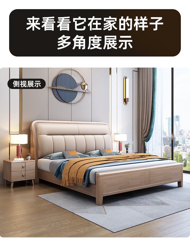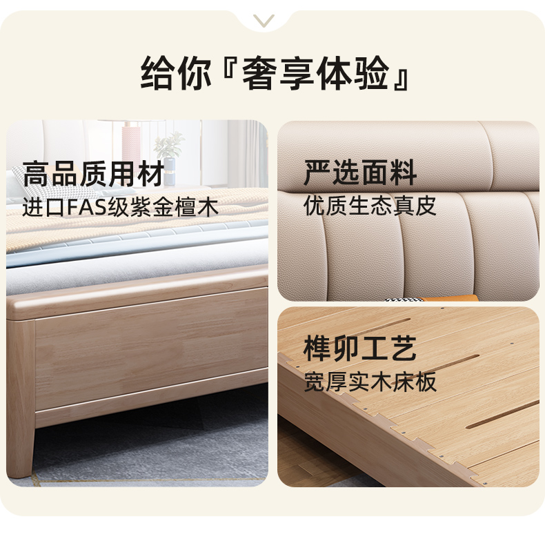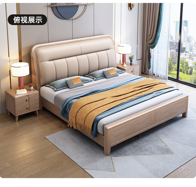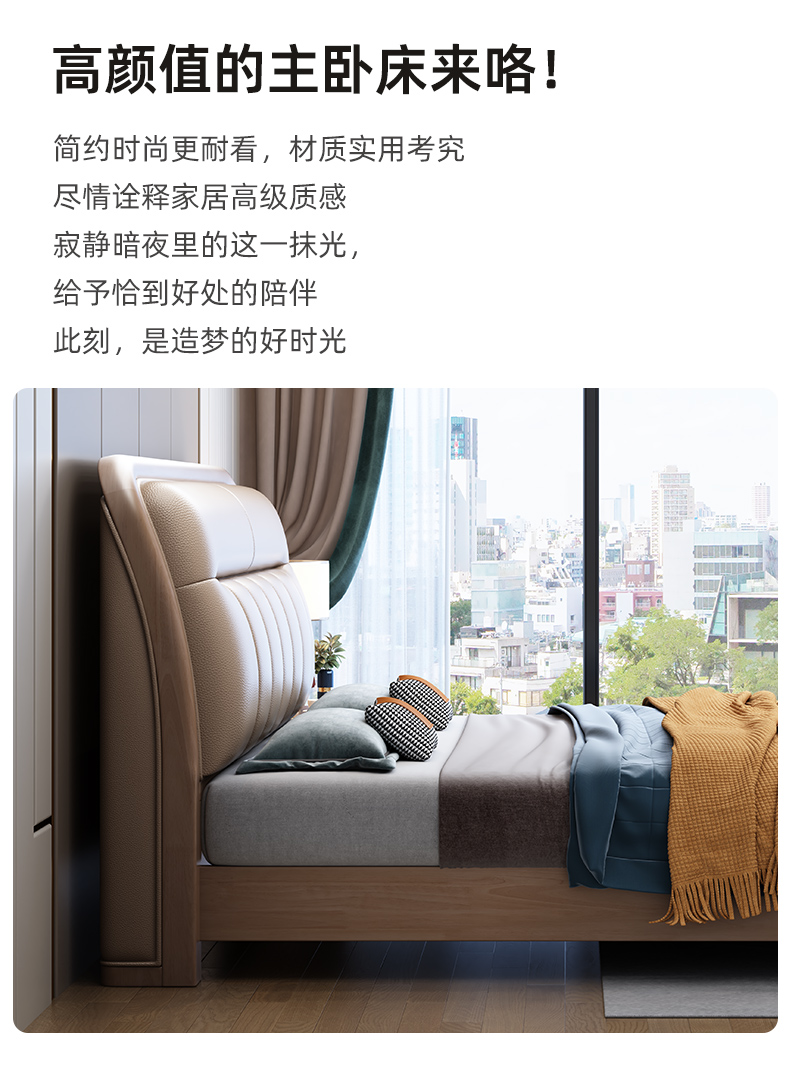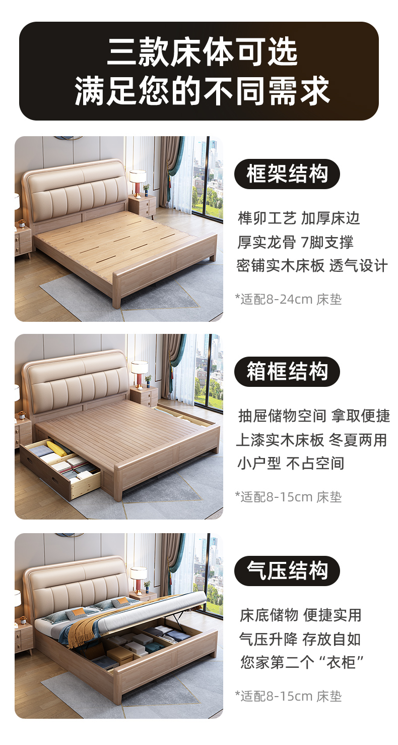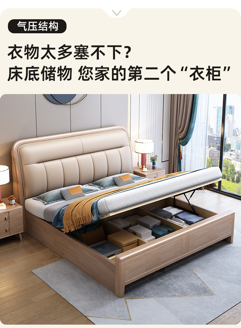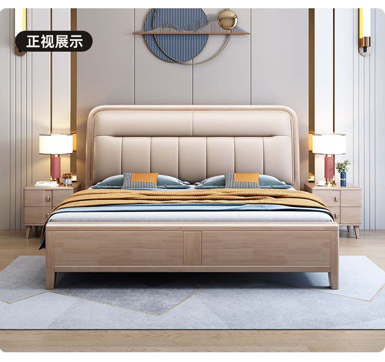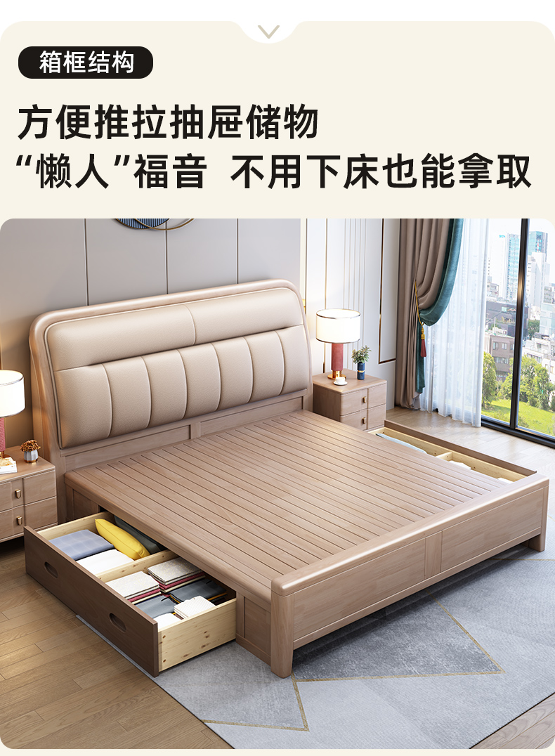 实木床1.8米1.5m双人床简约现代北欧真皮软包主卧大气2米储物婚床