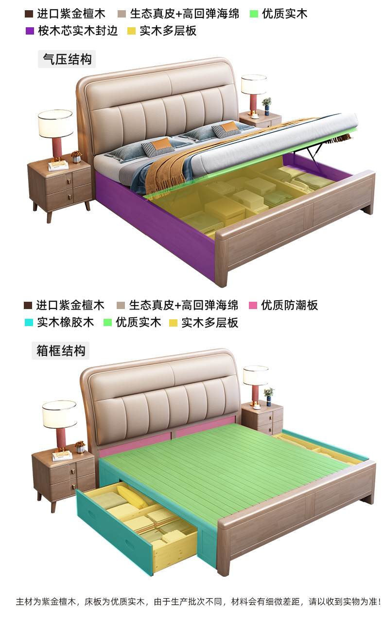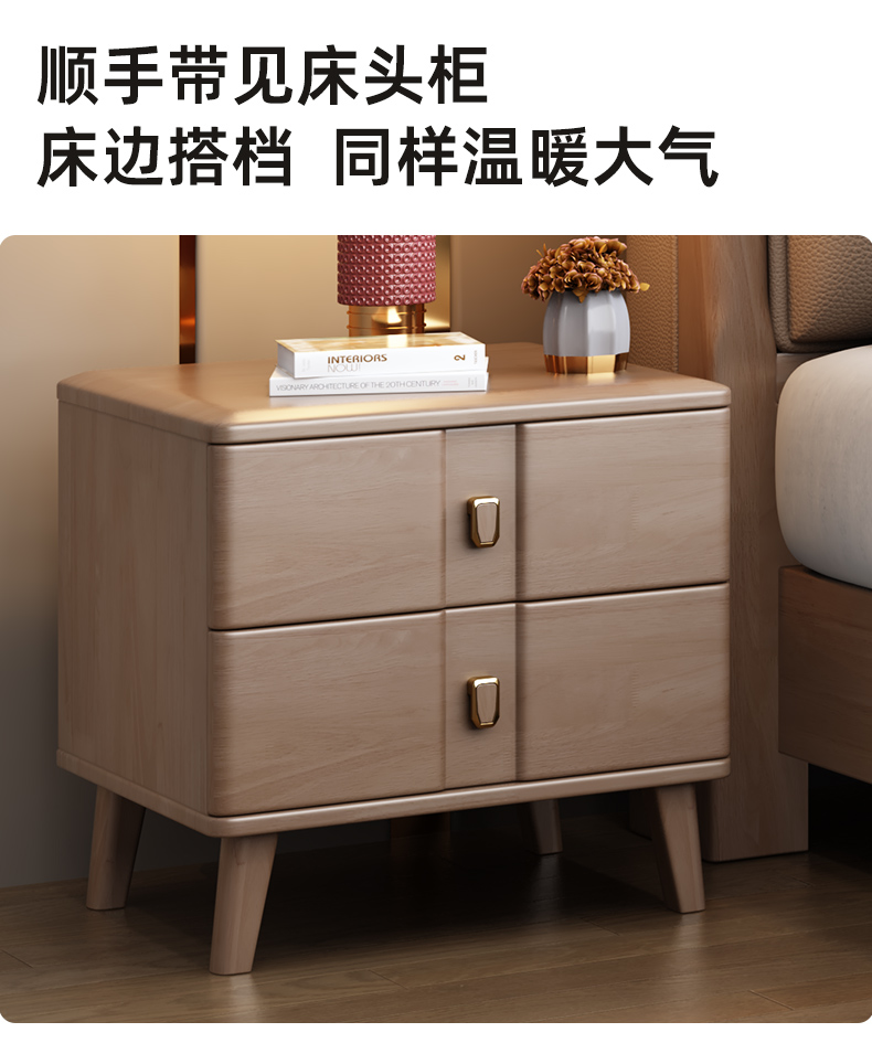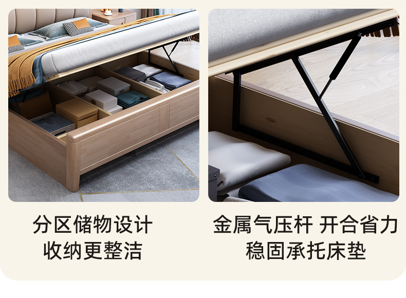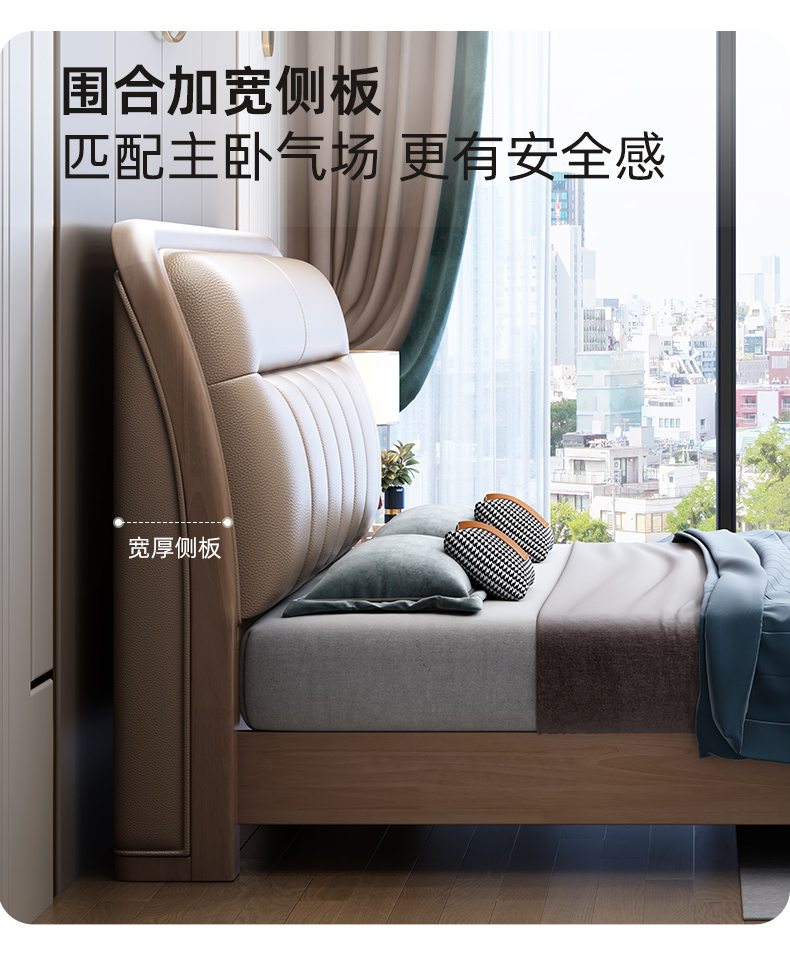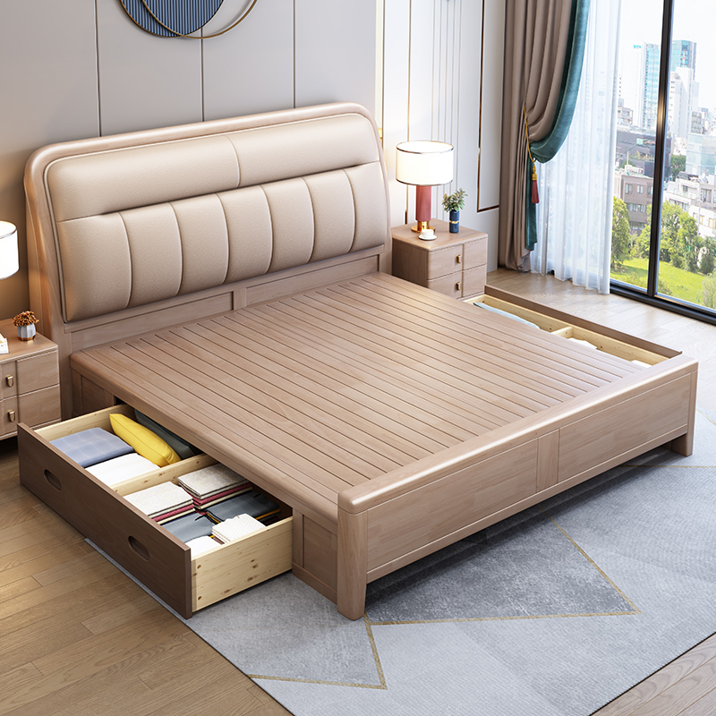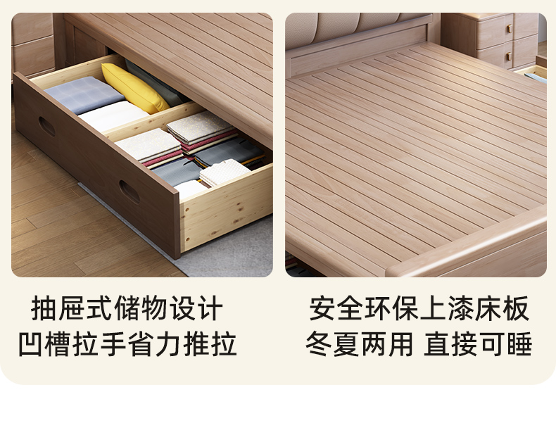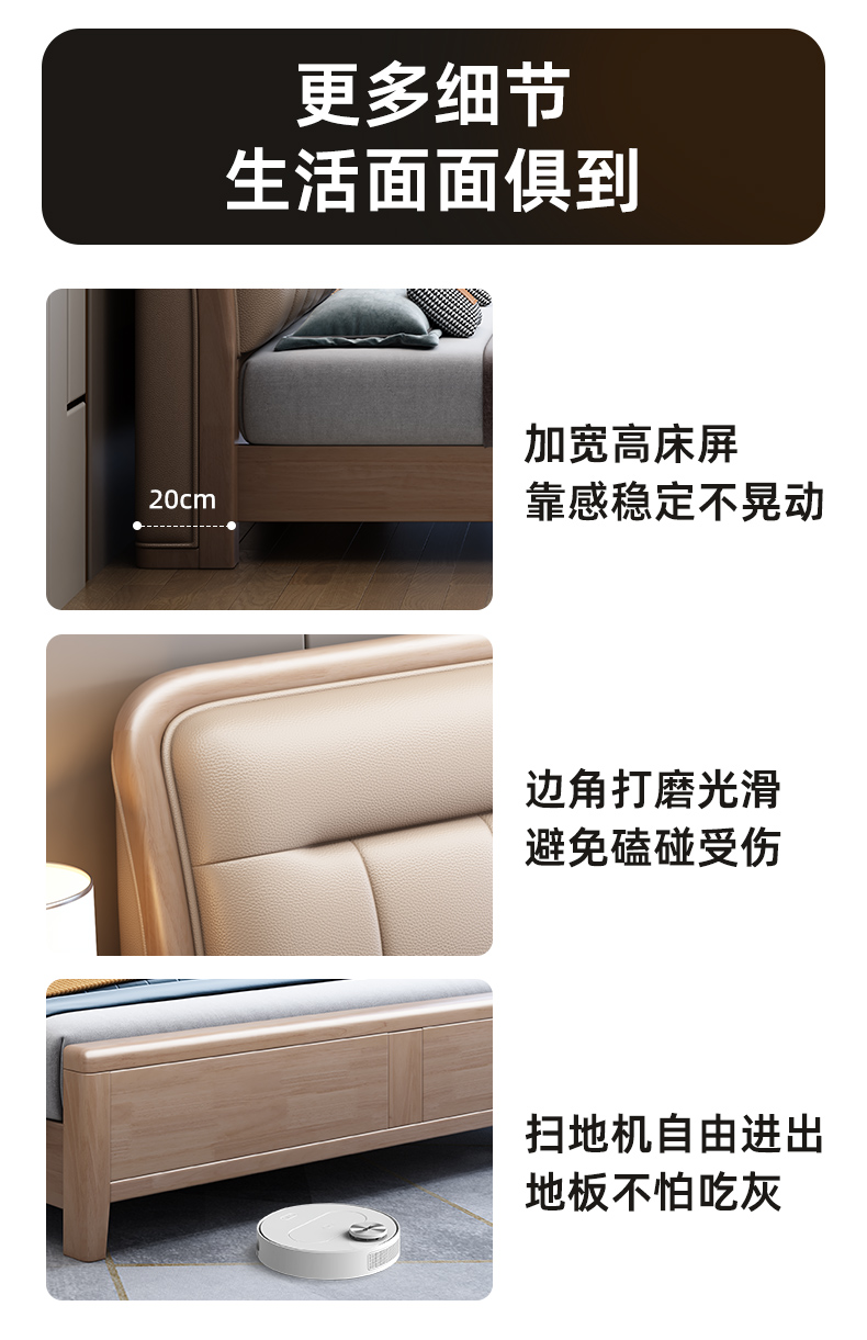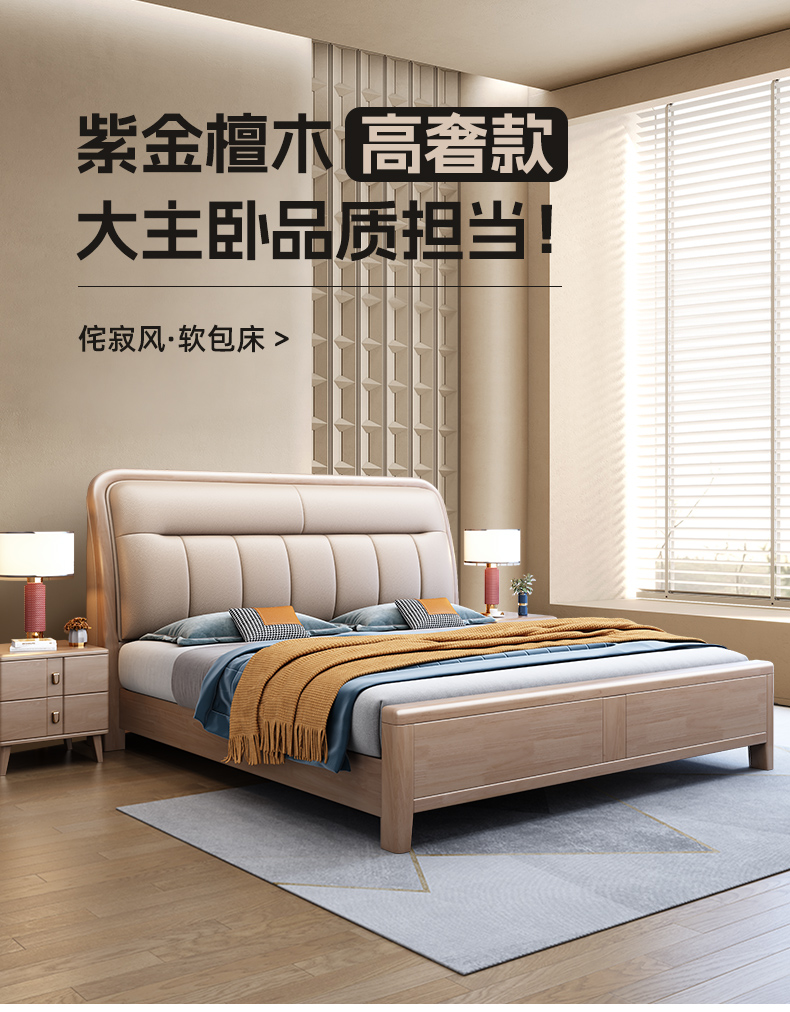 实木床1.8米1.5m双人床简约现代北欧真皮软包主卧大气2米储物婚床