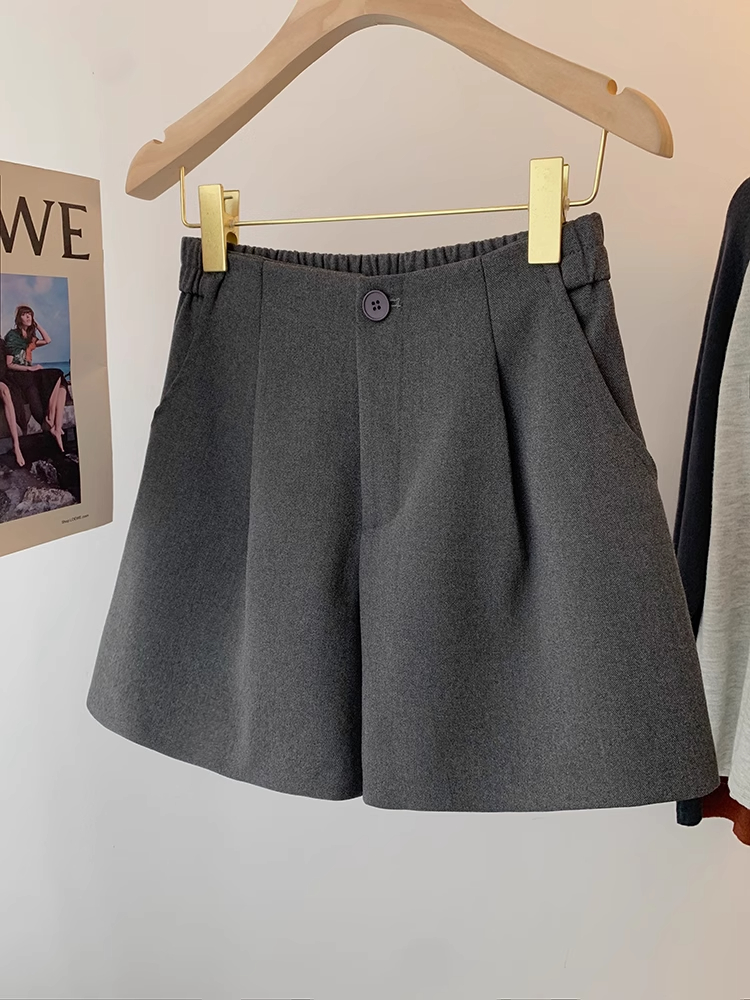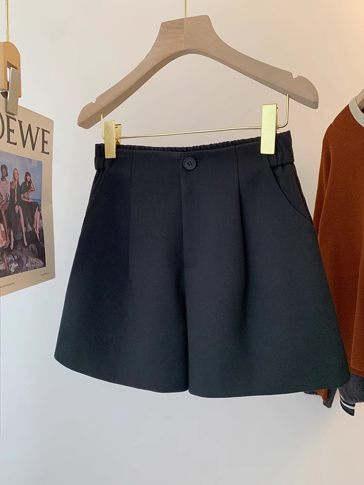 毛呢短裤女秋冬大码胖mm显瘦高腰呢子百搭靴裤外穿打底a字阔腿裤