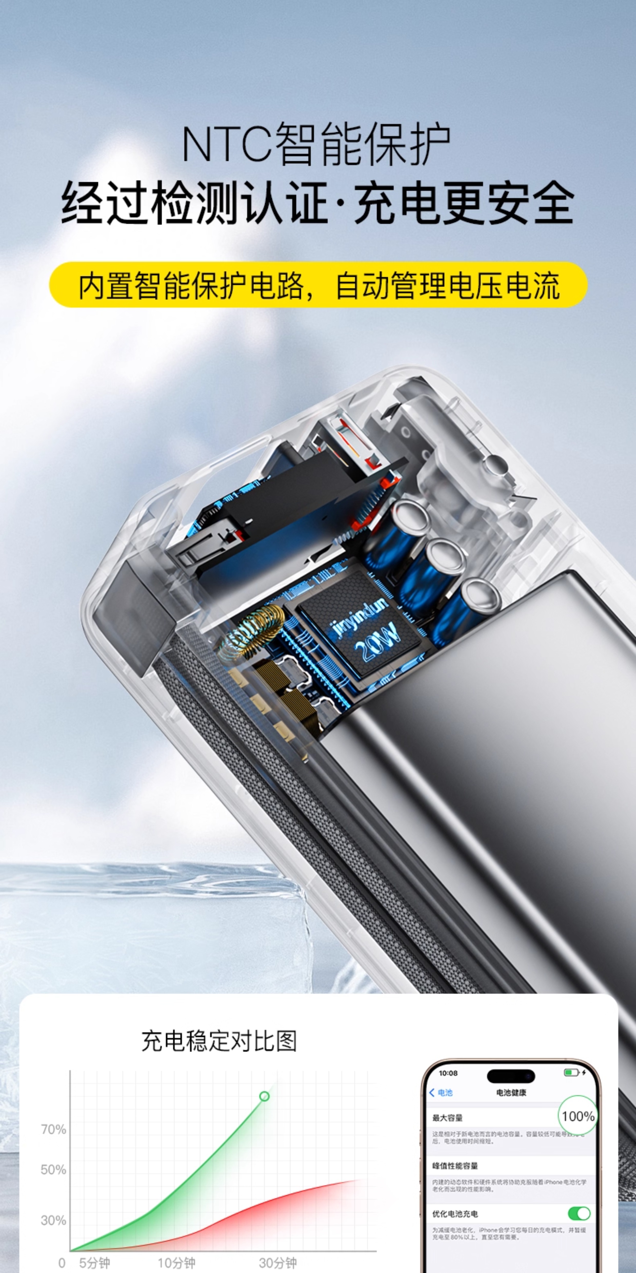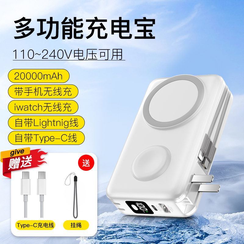 3C认证可上飞机新款磁吸充电宝20000毫安快充大容量带插头三合一移动电源适用iwatch手表iPhone17苹果16手机