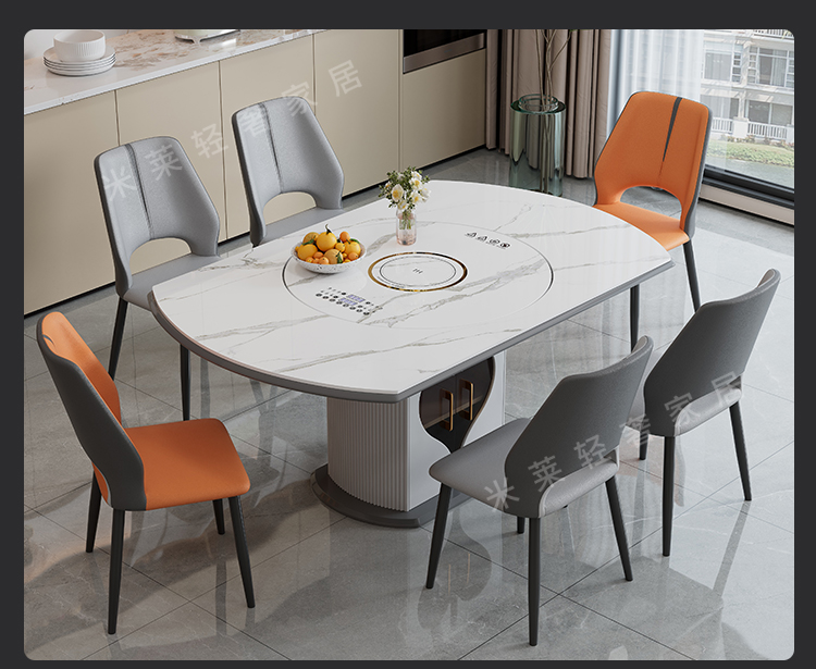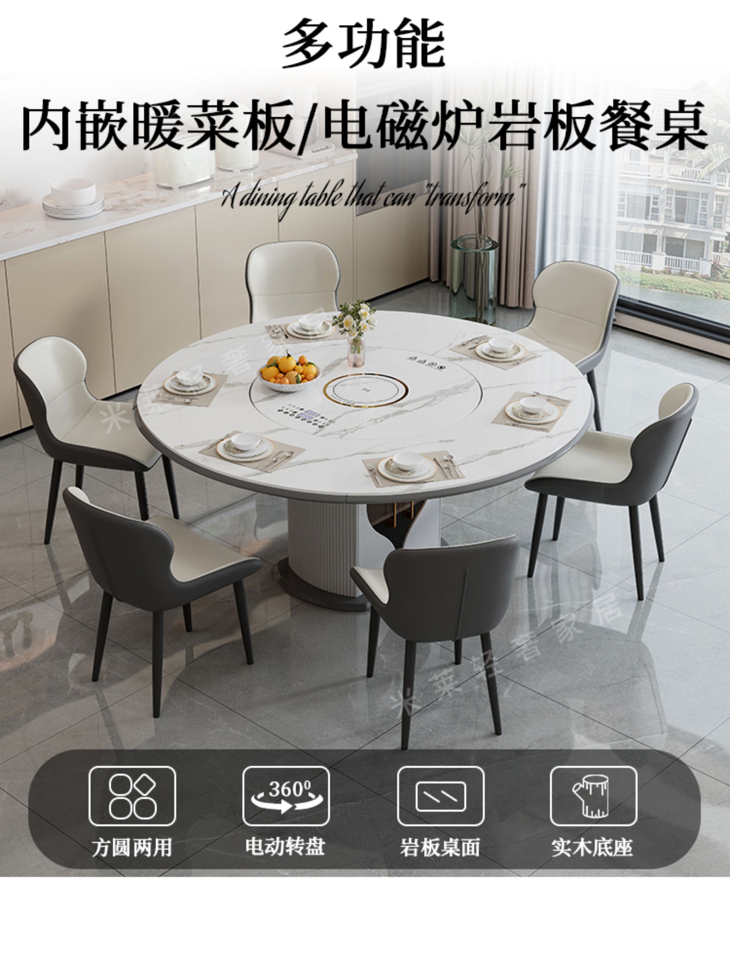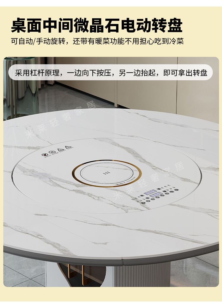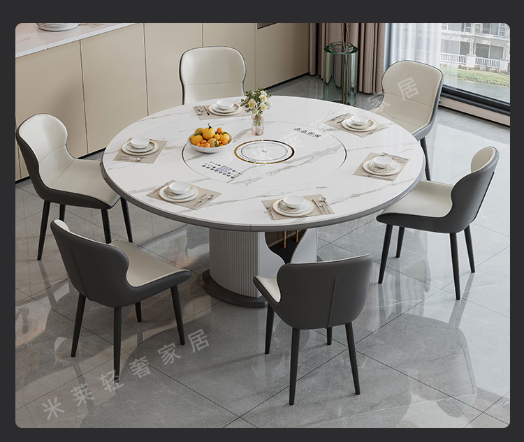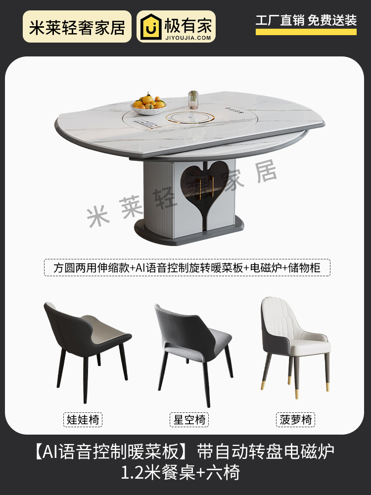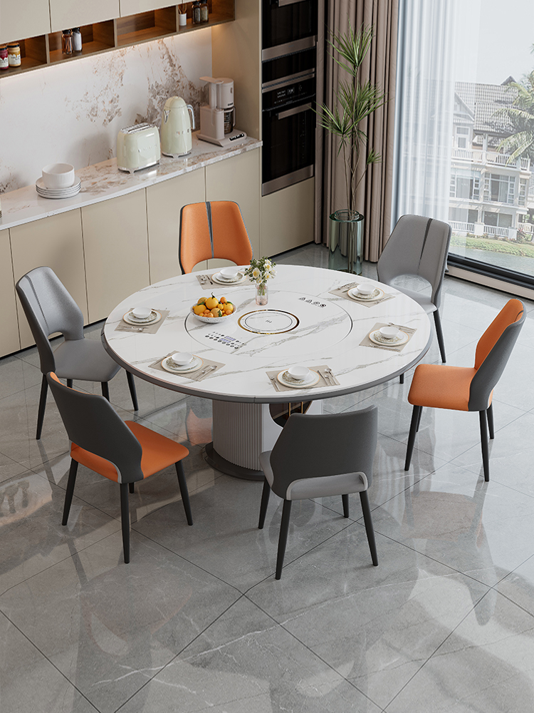 轻奢岩板多功能伸缩餐桌椅电磁炉电动暖菜板可变圆桌饭桌可配转盘