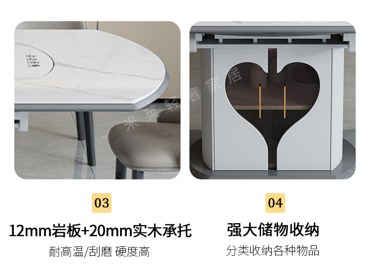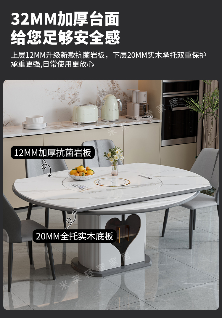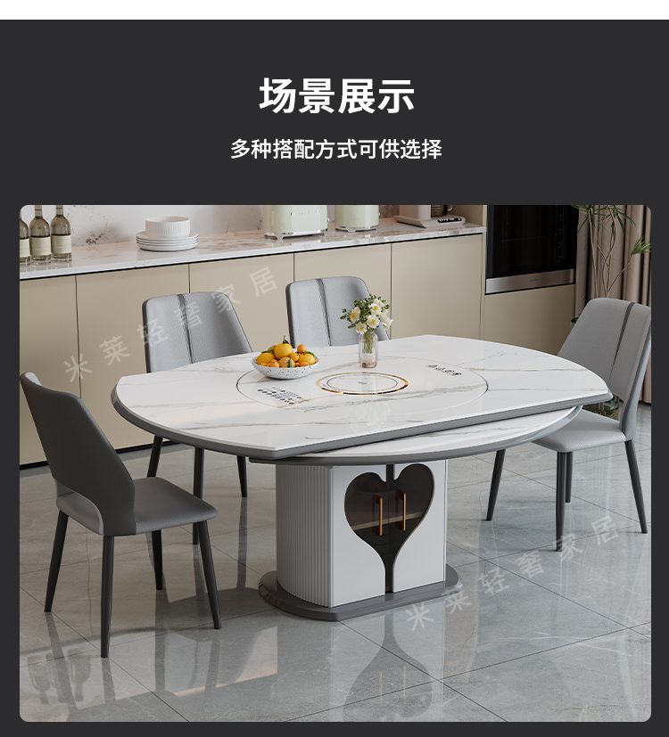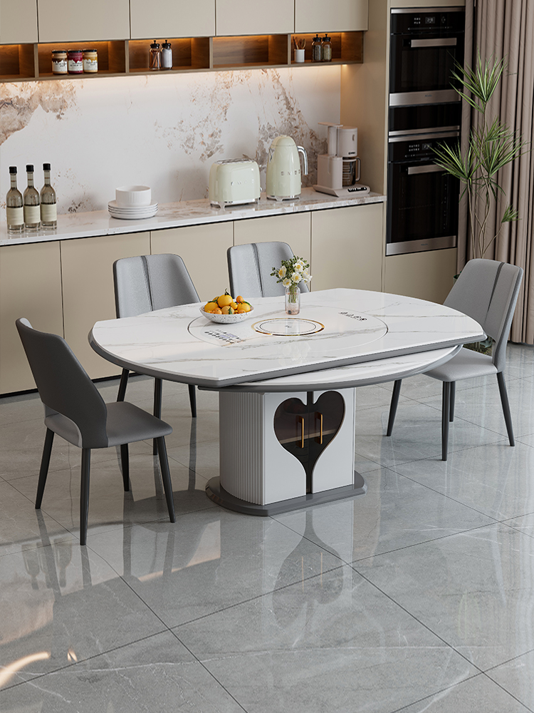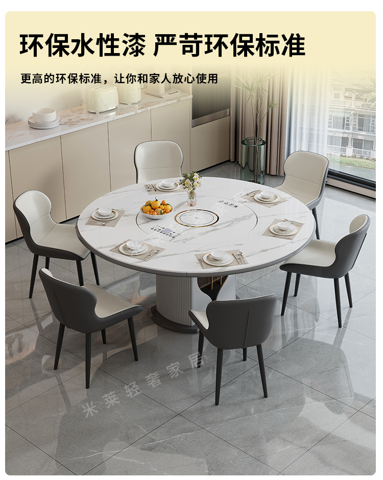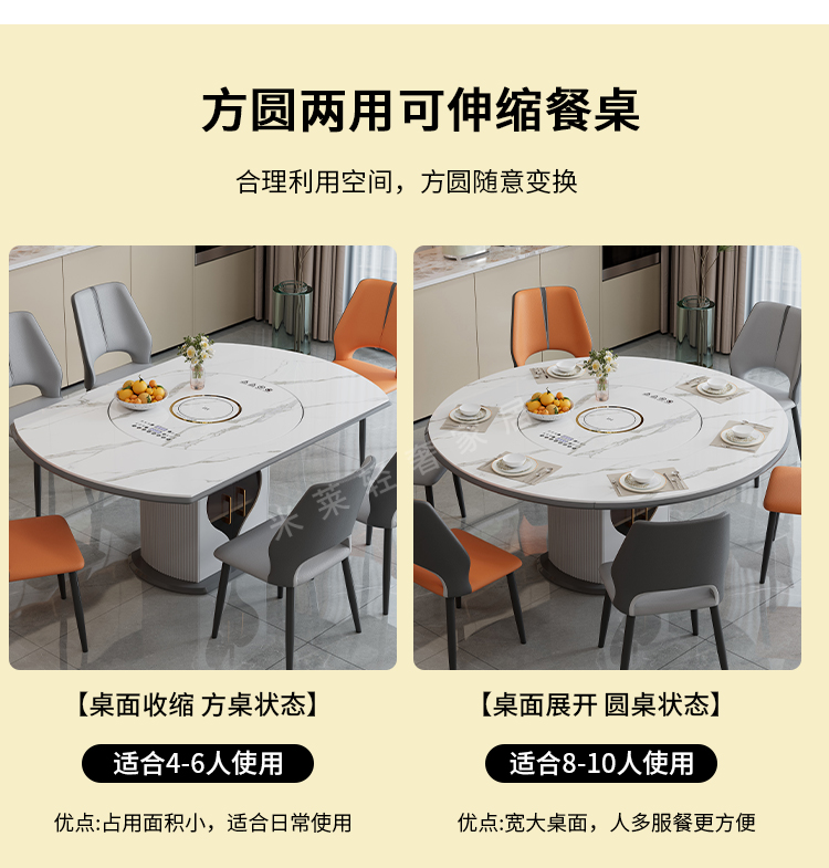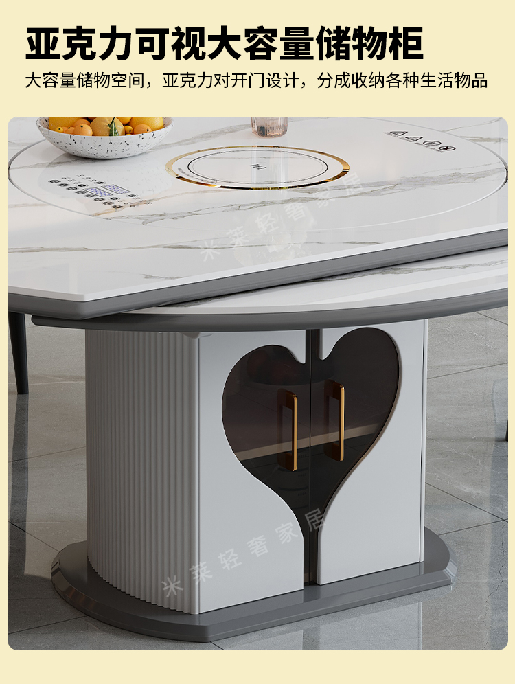 轻奢岩板多功能伸缩餐桌椅电磁炉电动暖菜板可变圆桌饭桌可配转盘