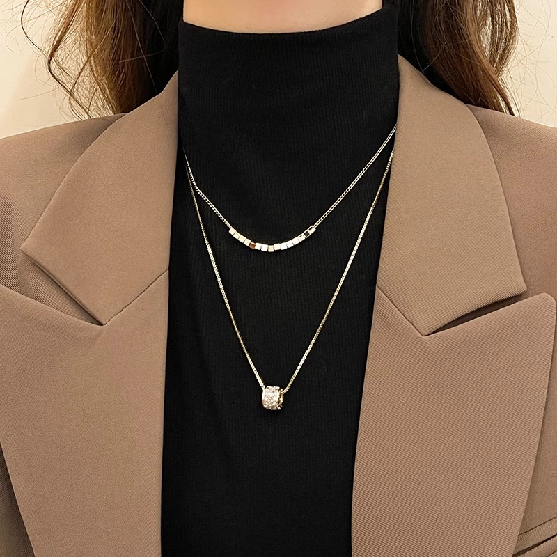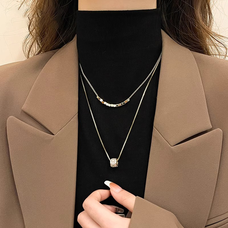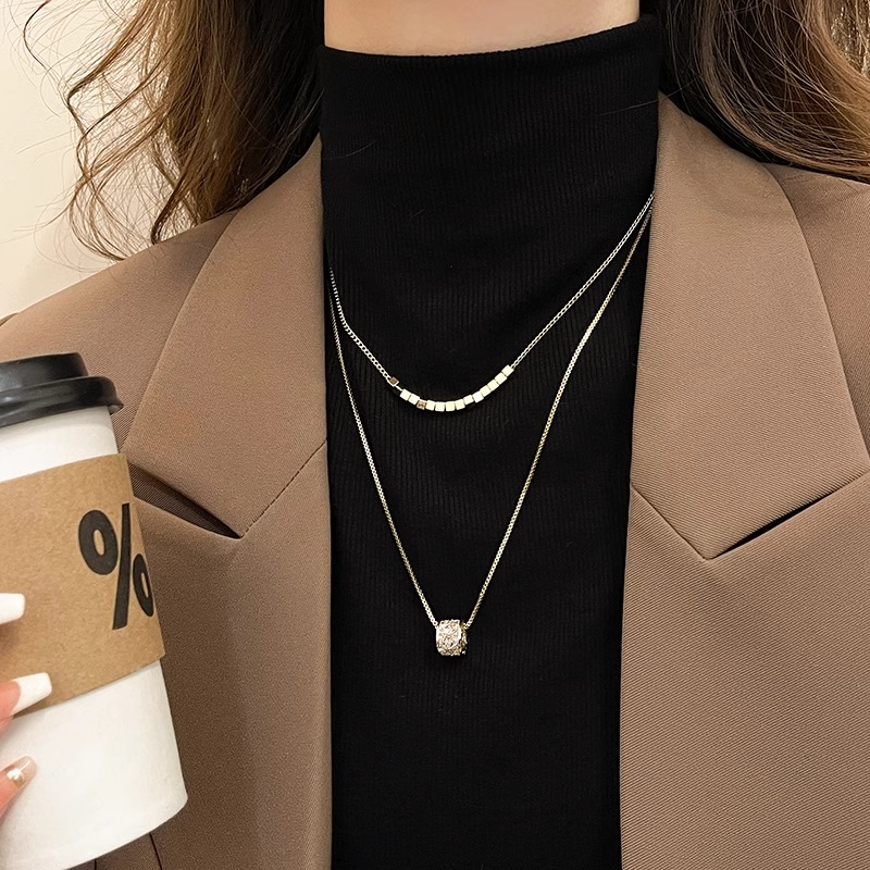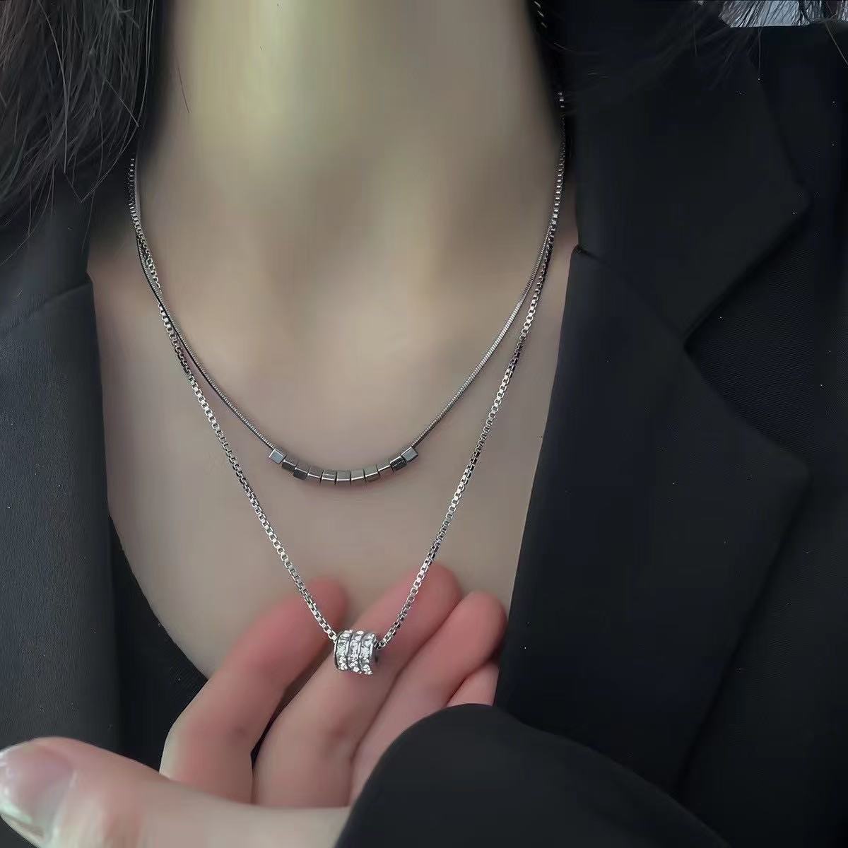 双层叠戴皓石项链女小众设计感毛衣链2025新款爆款高级感秋冬颈链