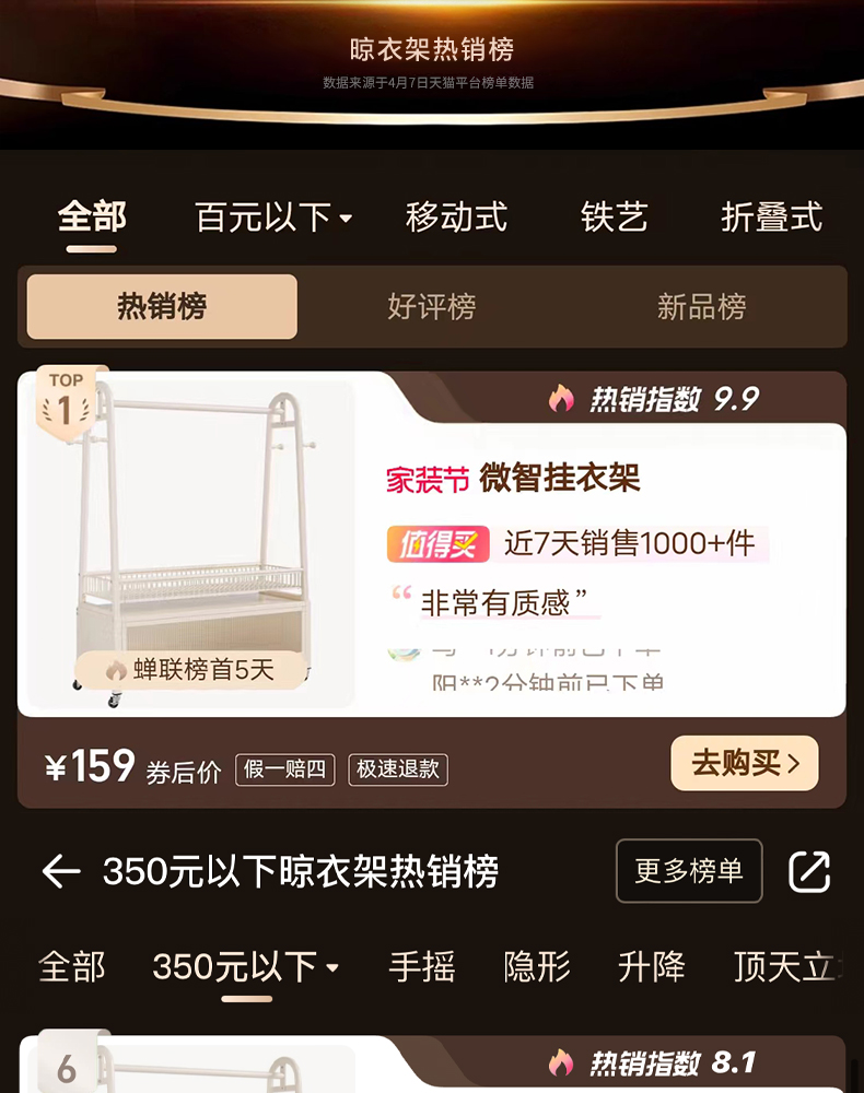 挂衣架落地卧室内家用简易衣帽架轻奢可移动客厅阳台晒晾衣服架子