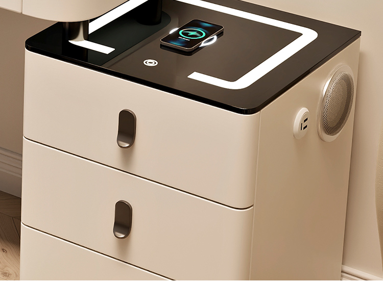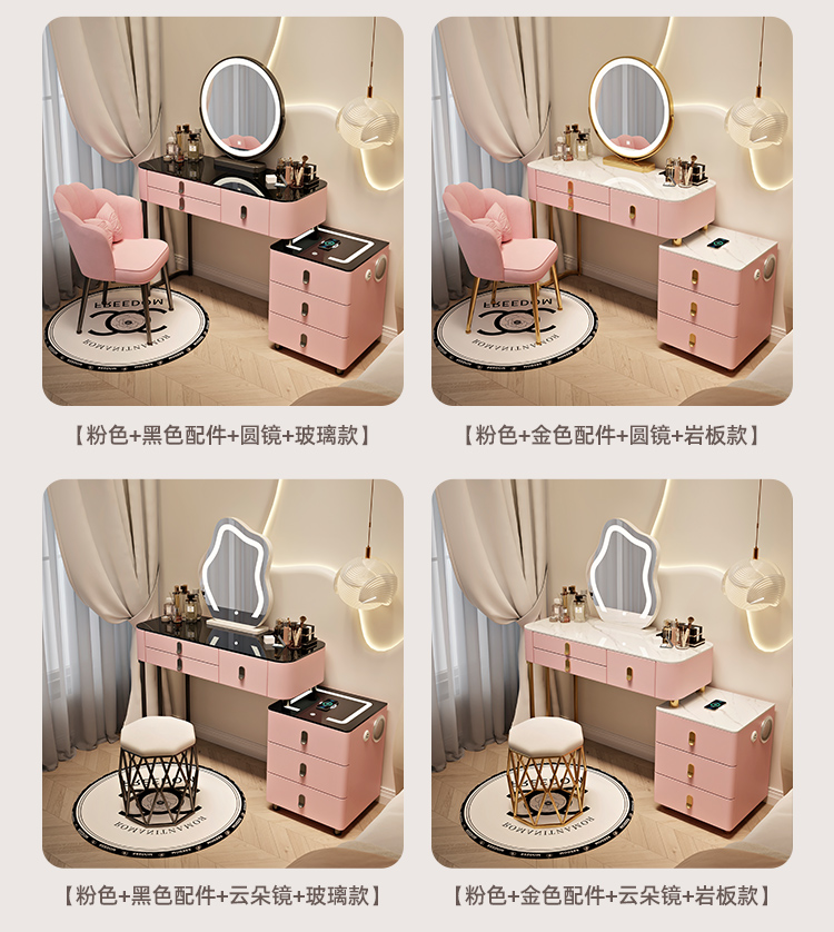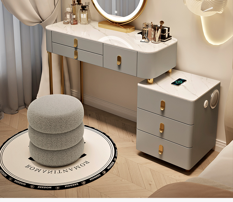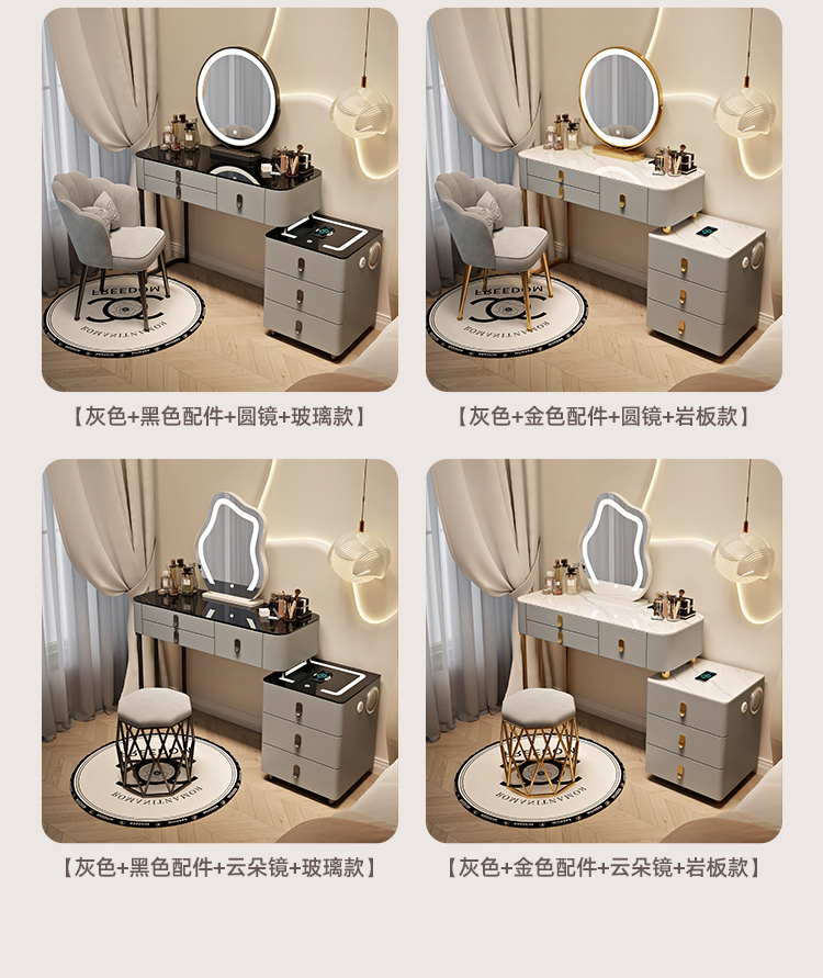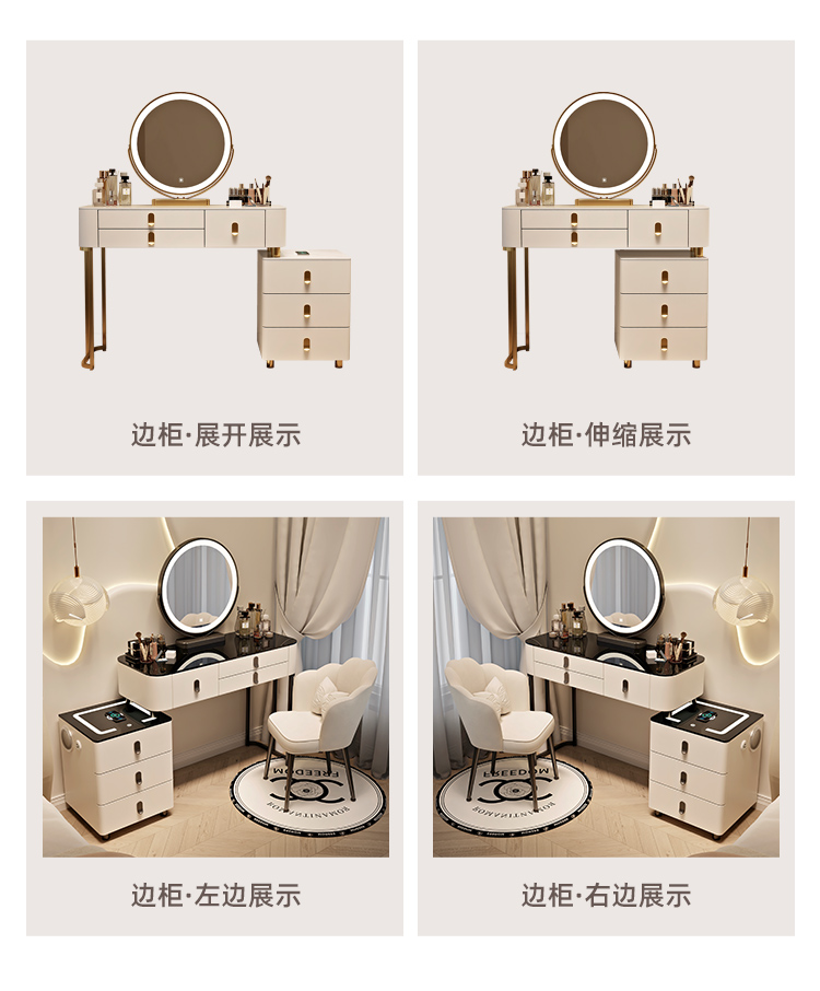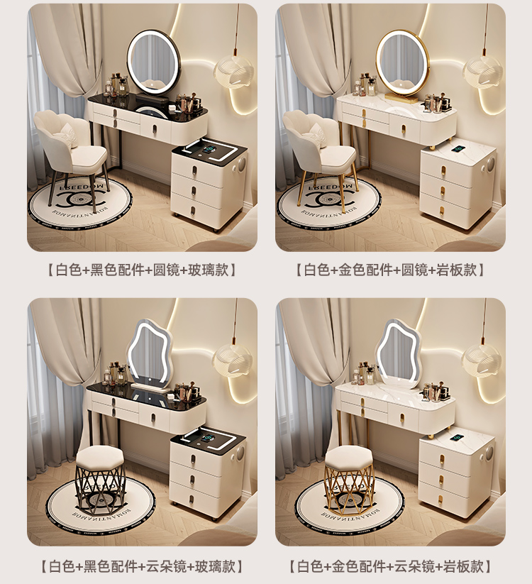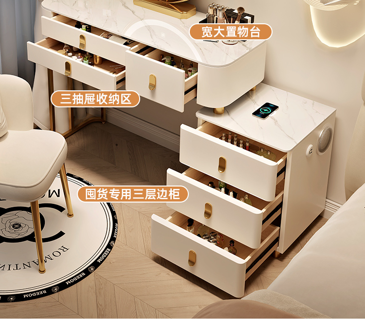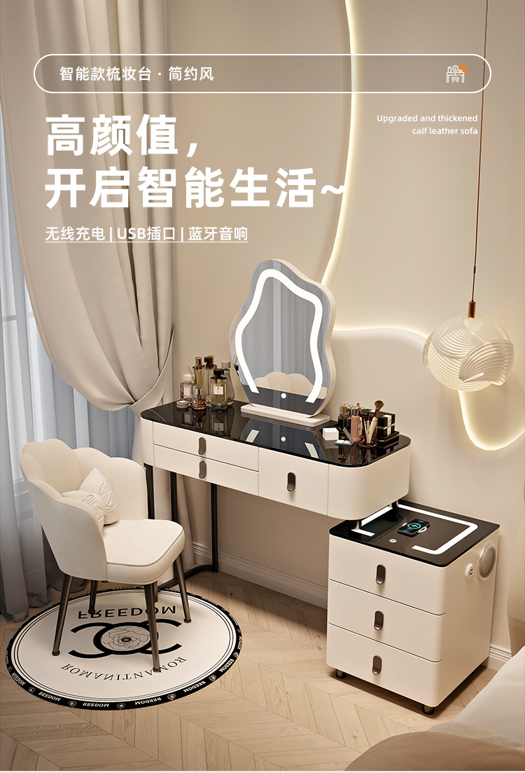 实木梳妆台卧室现代简约轻奢智能无线充电多功能化妆桌收纳柜一体