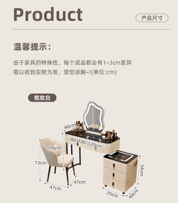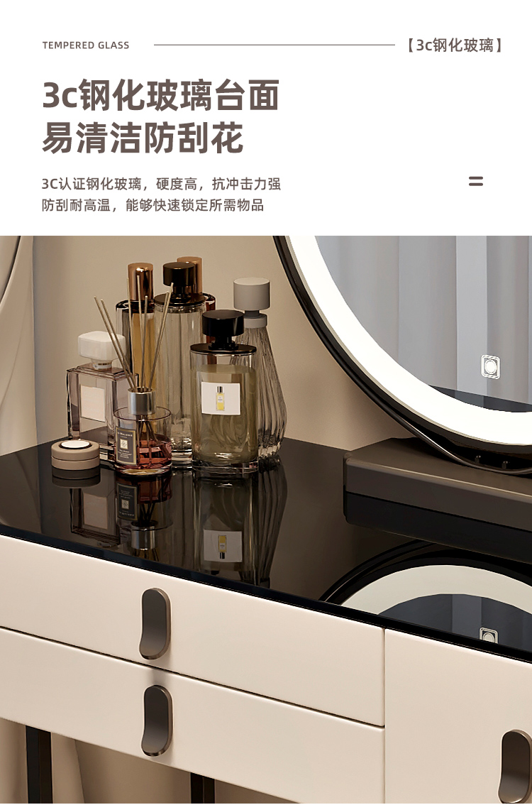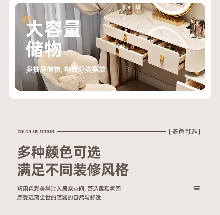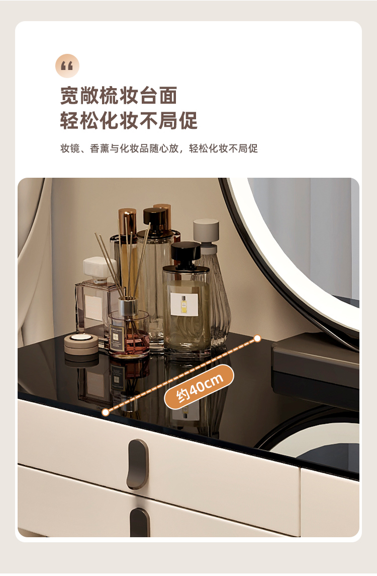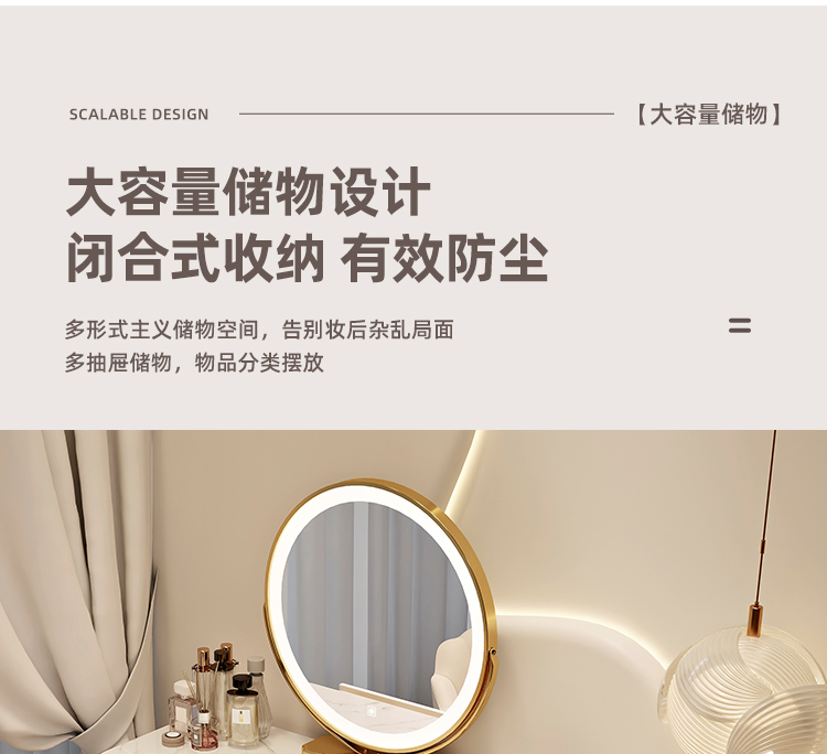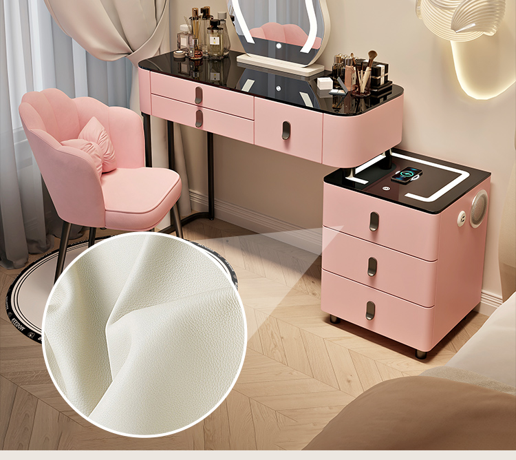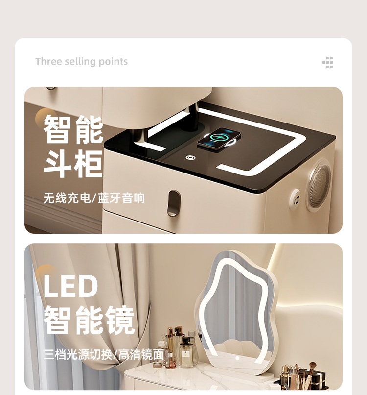 实木梳妆台卧室现代简约轻奢智能无线充电多功能化妆桌收纳柜一体