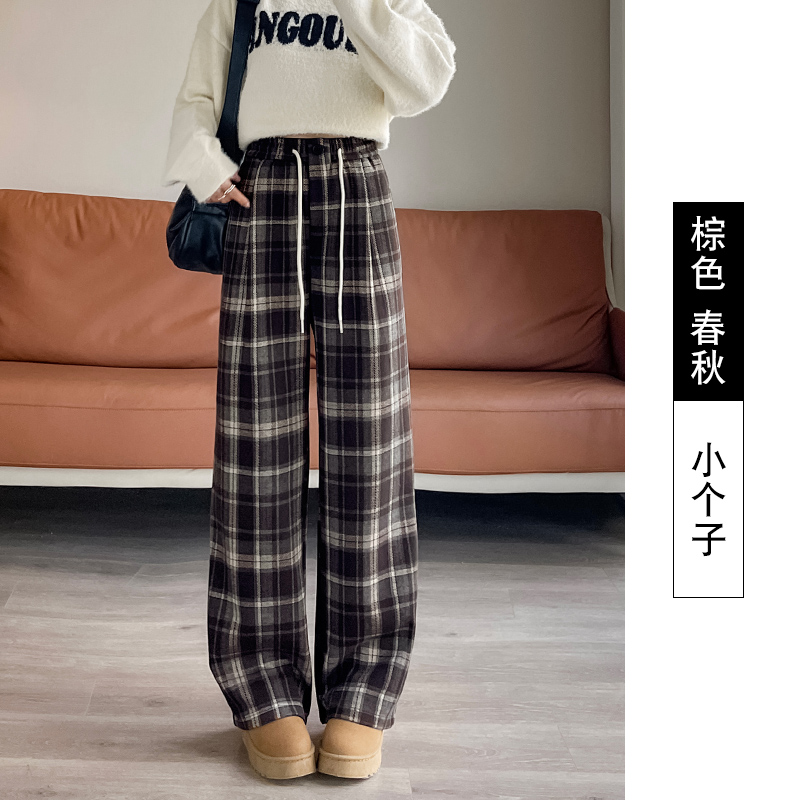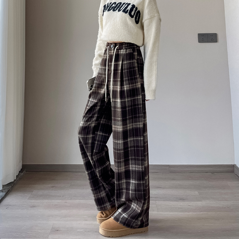 格子毛呢裤女秋冬2025新款高腰显瘦垂感加绒加厚窄版直筒阔腿裤子