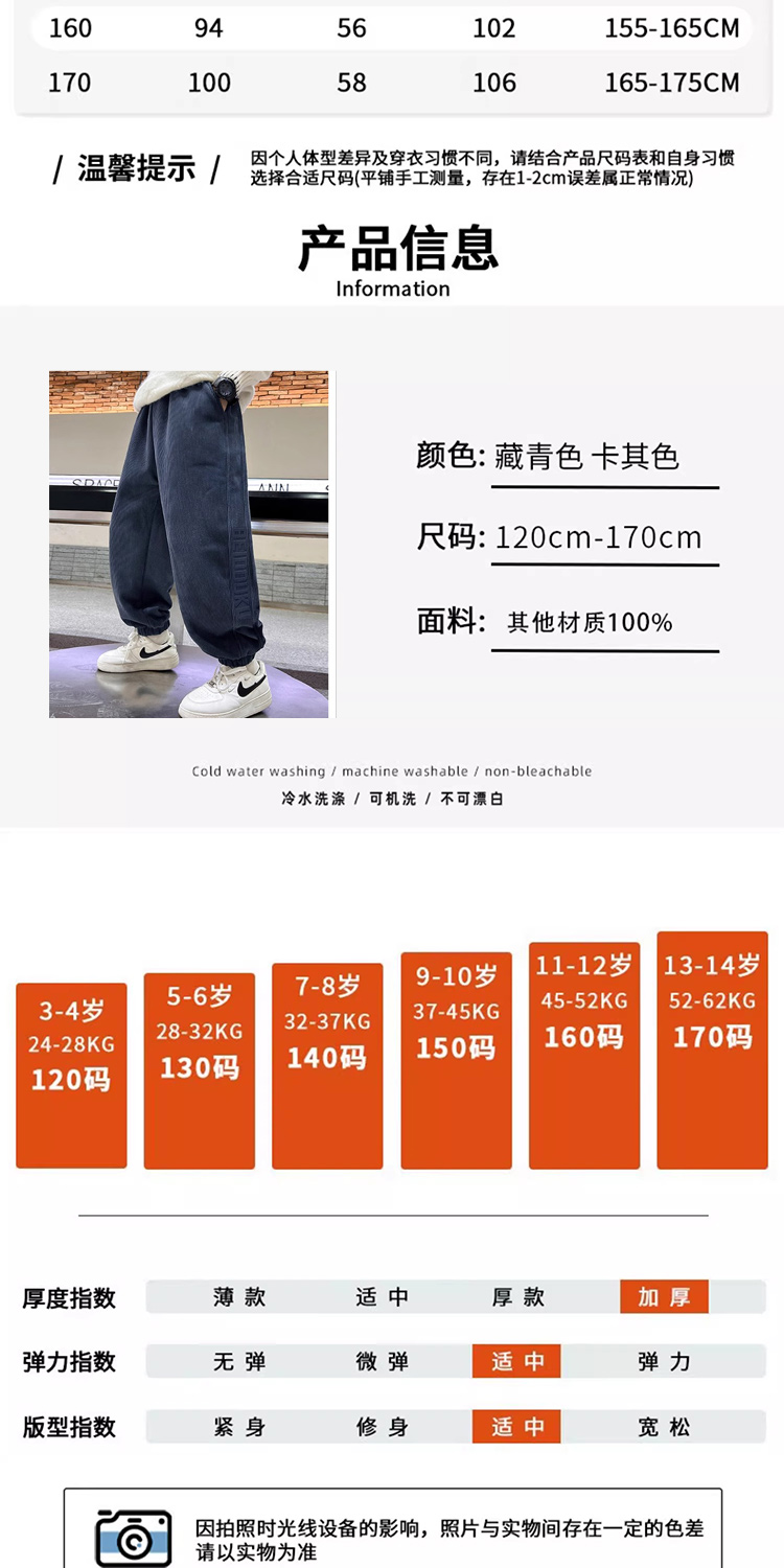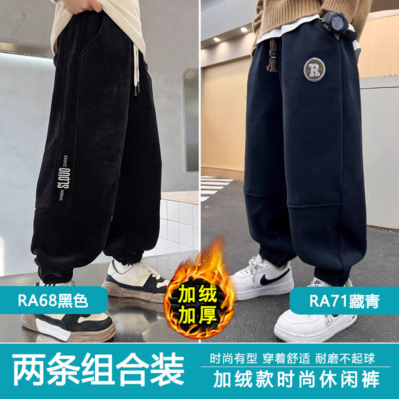 男童秋季裤子2025新款儿童运动休闲裤一体绒加厚冬季中大童长裤潮