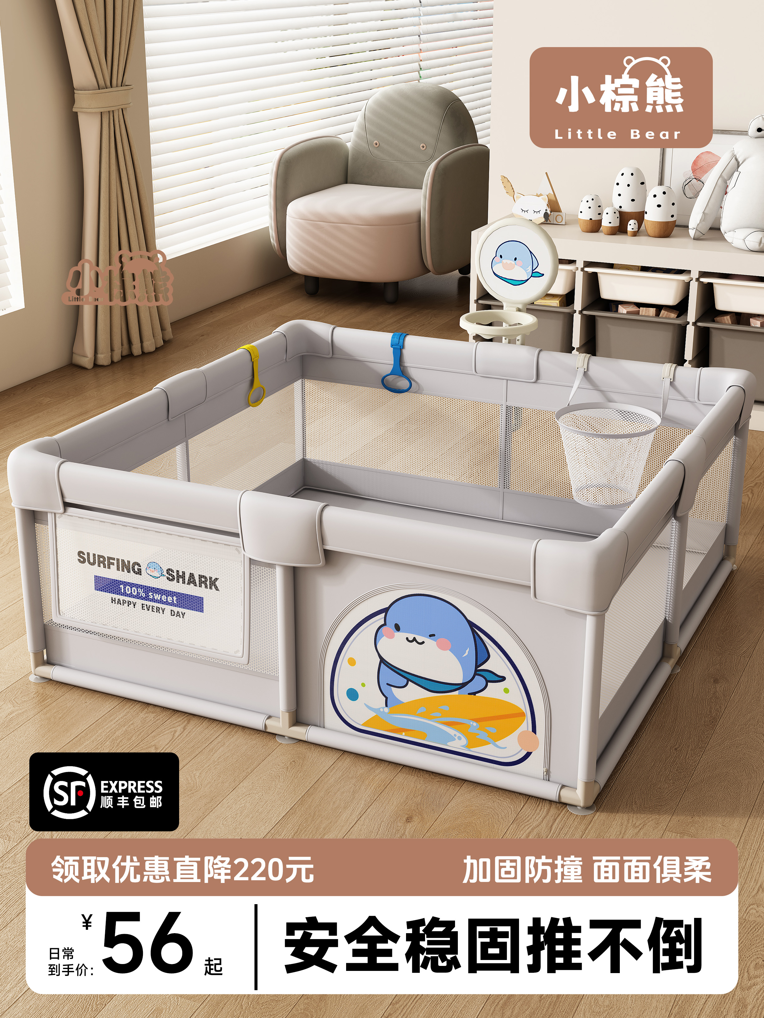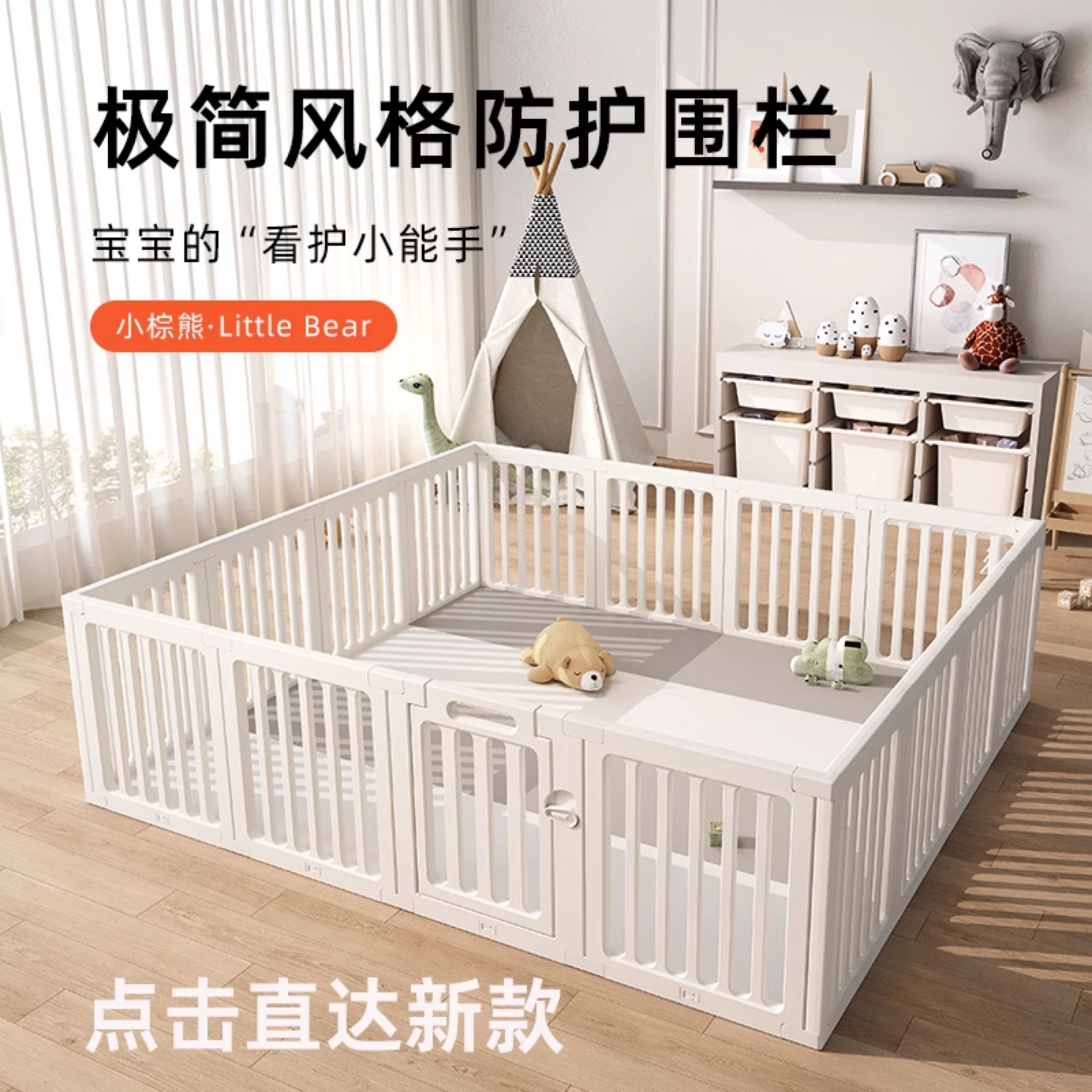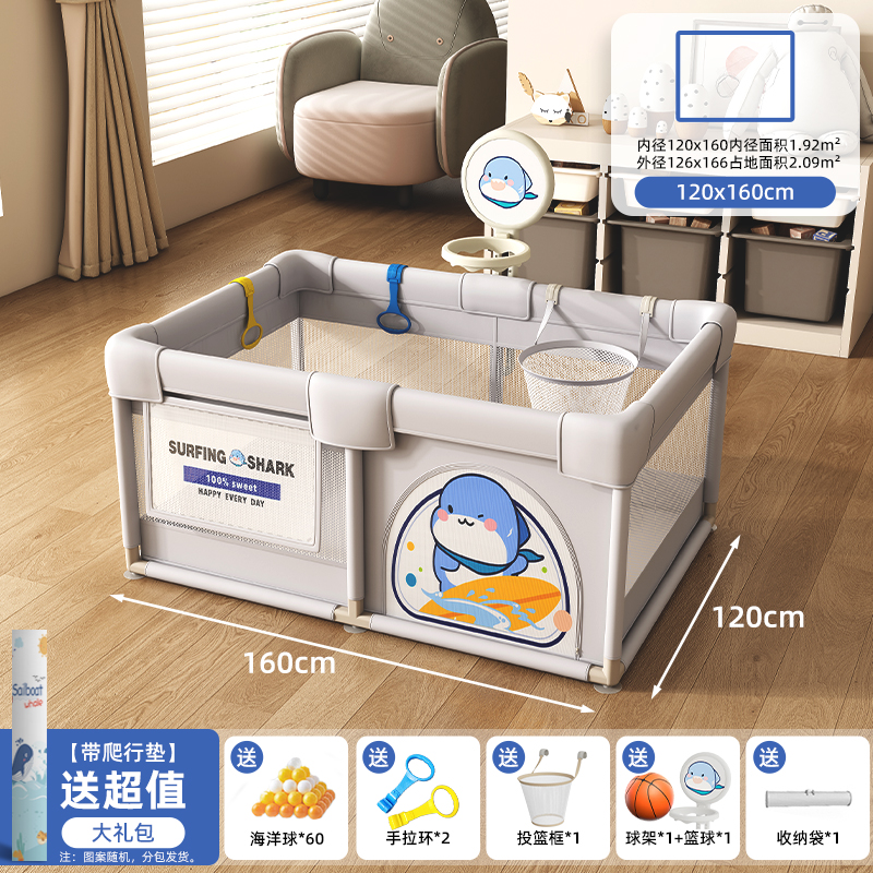 围栏婴儿防护栏地上宝宝爬爬垫一体儿童游戏爬行室内家用客厅专用