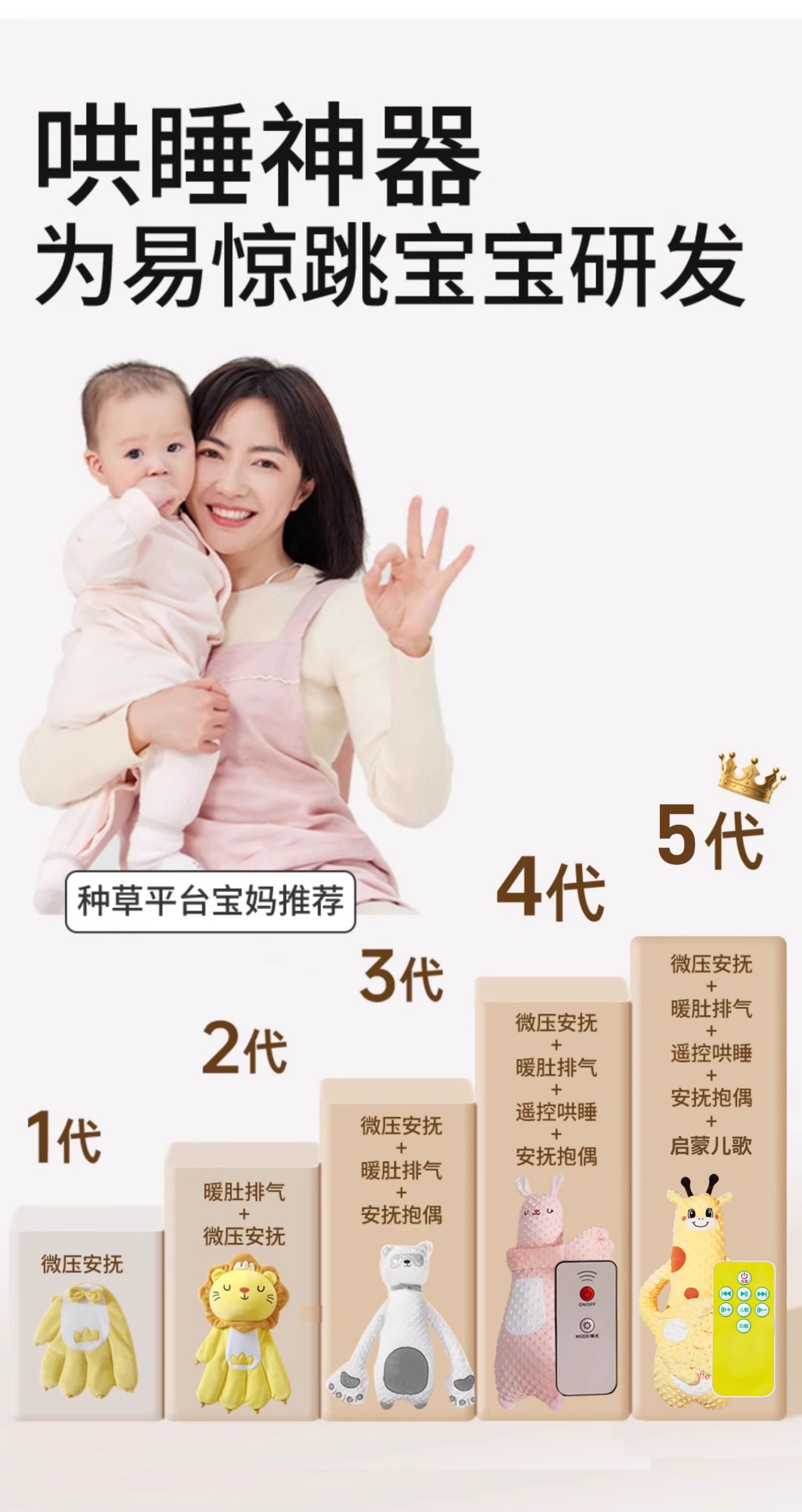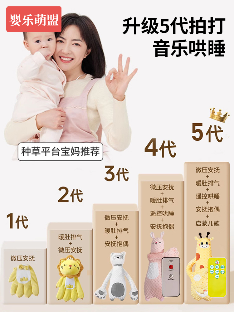 婴儿搂睡哄睡拍打神器安抚手掌宝宝自主入睡哄娃拍拍屁股躺睡玩偶