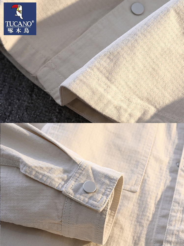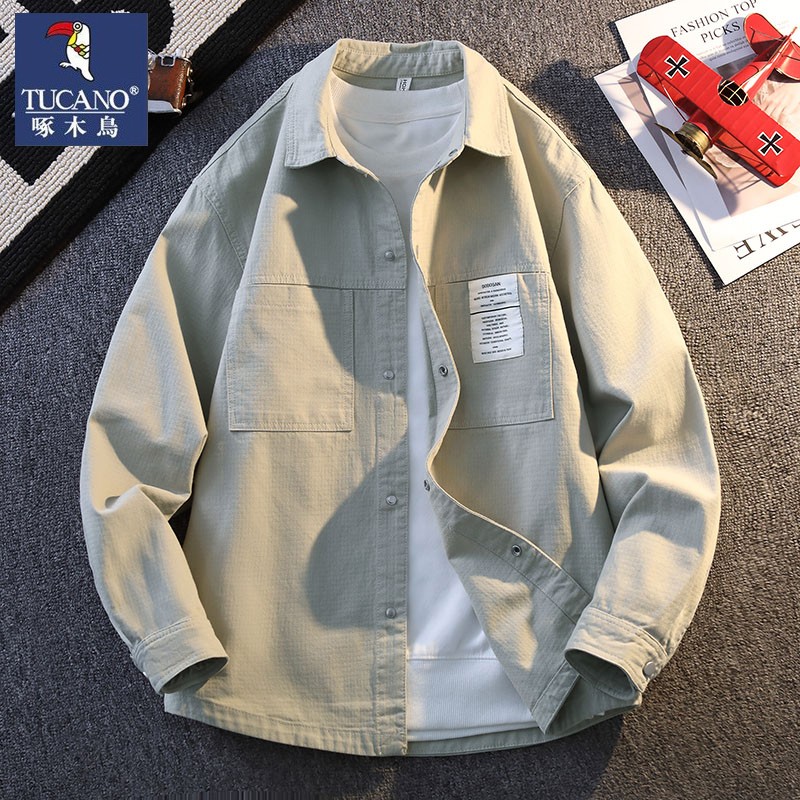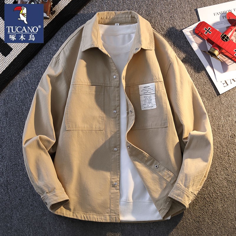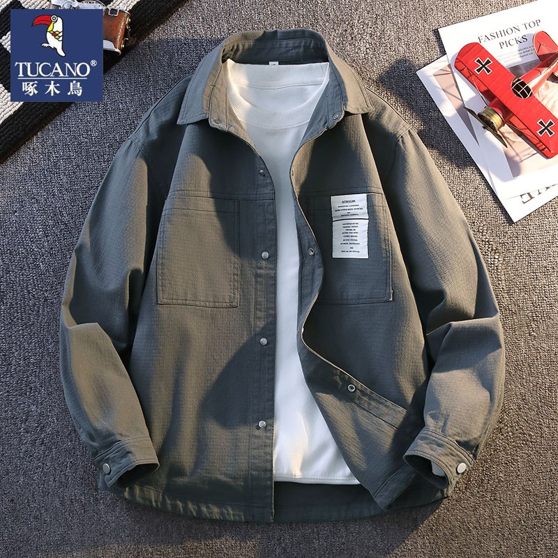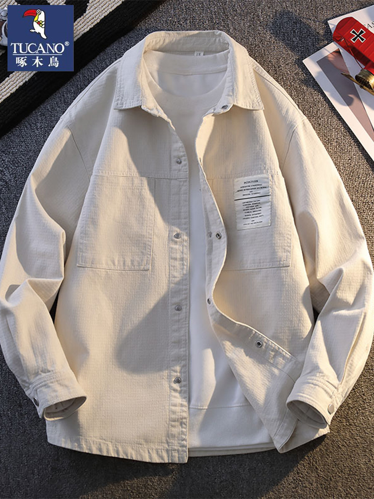 啄木鸟2025新款纹理感春秋季新款宽松衬衫式外套工装夹克男装衣服