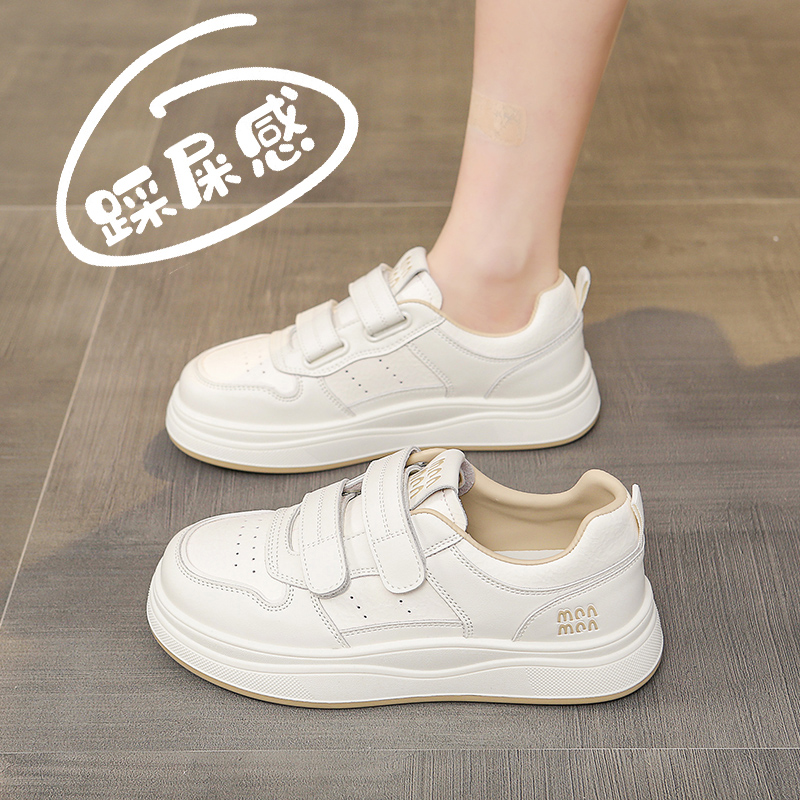 杨幂同款真皮软底小白鞋女2025秋季新款魔术贴板鞋百搭休闲运动鞋