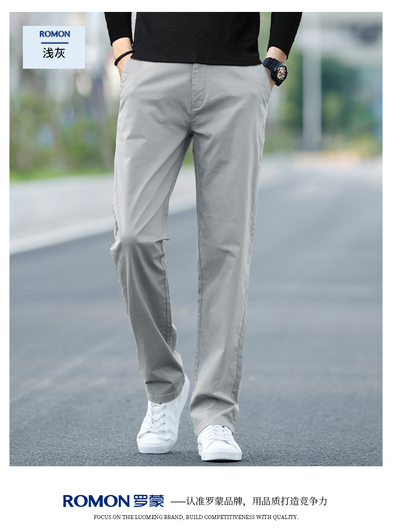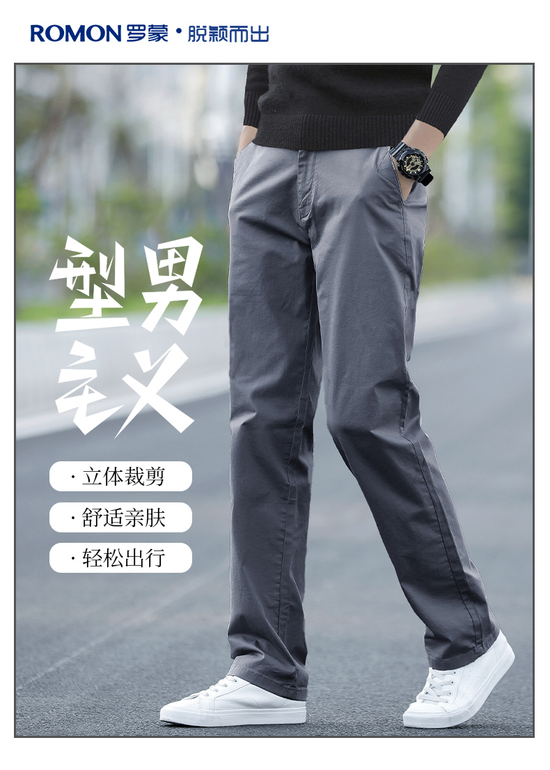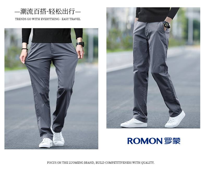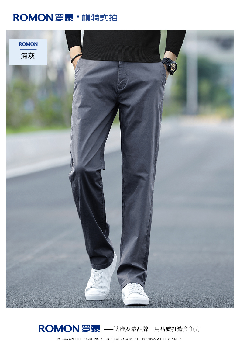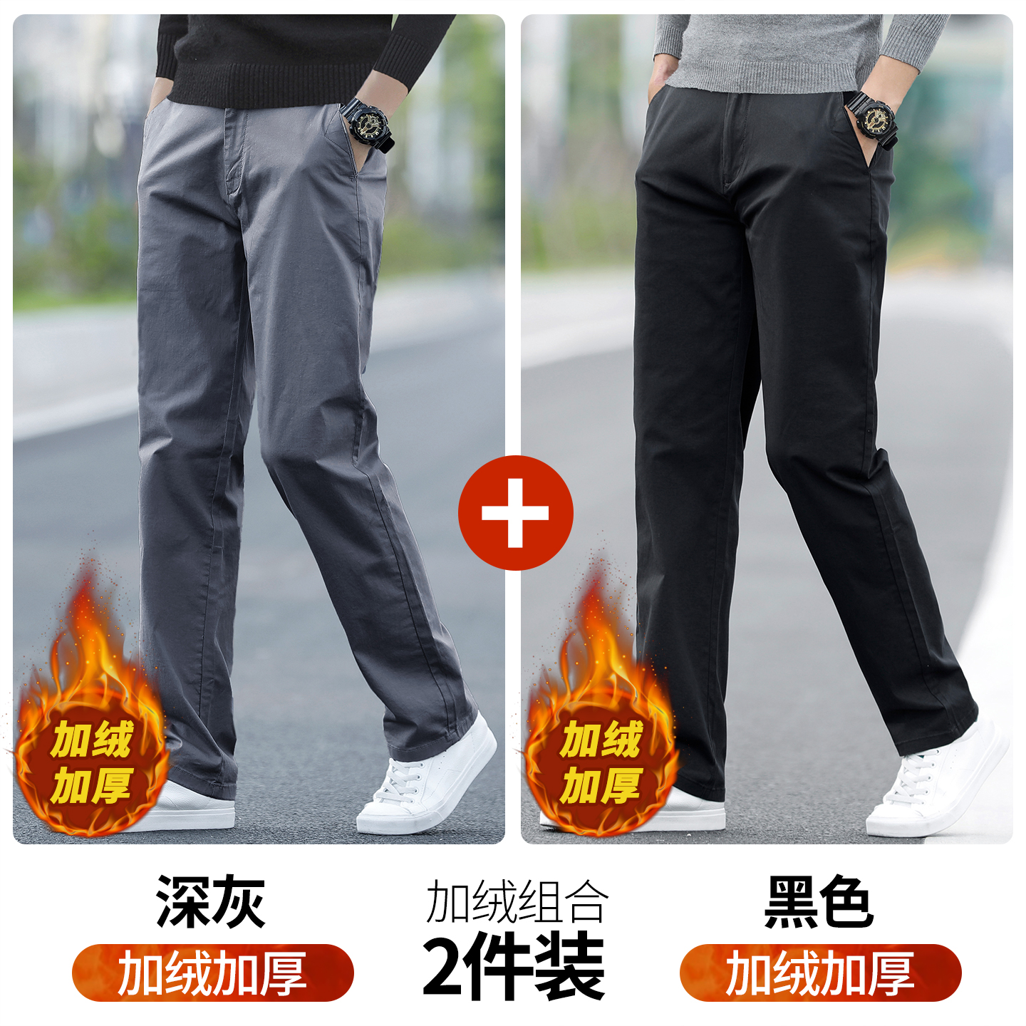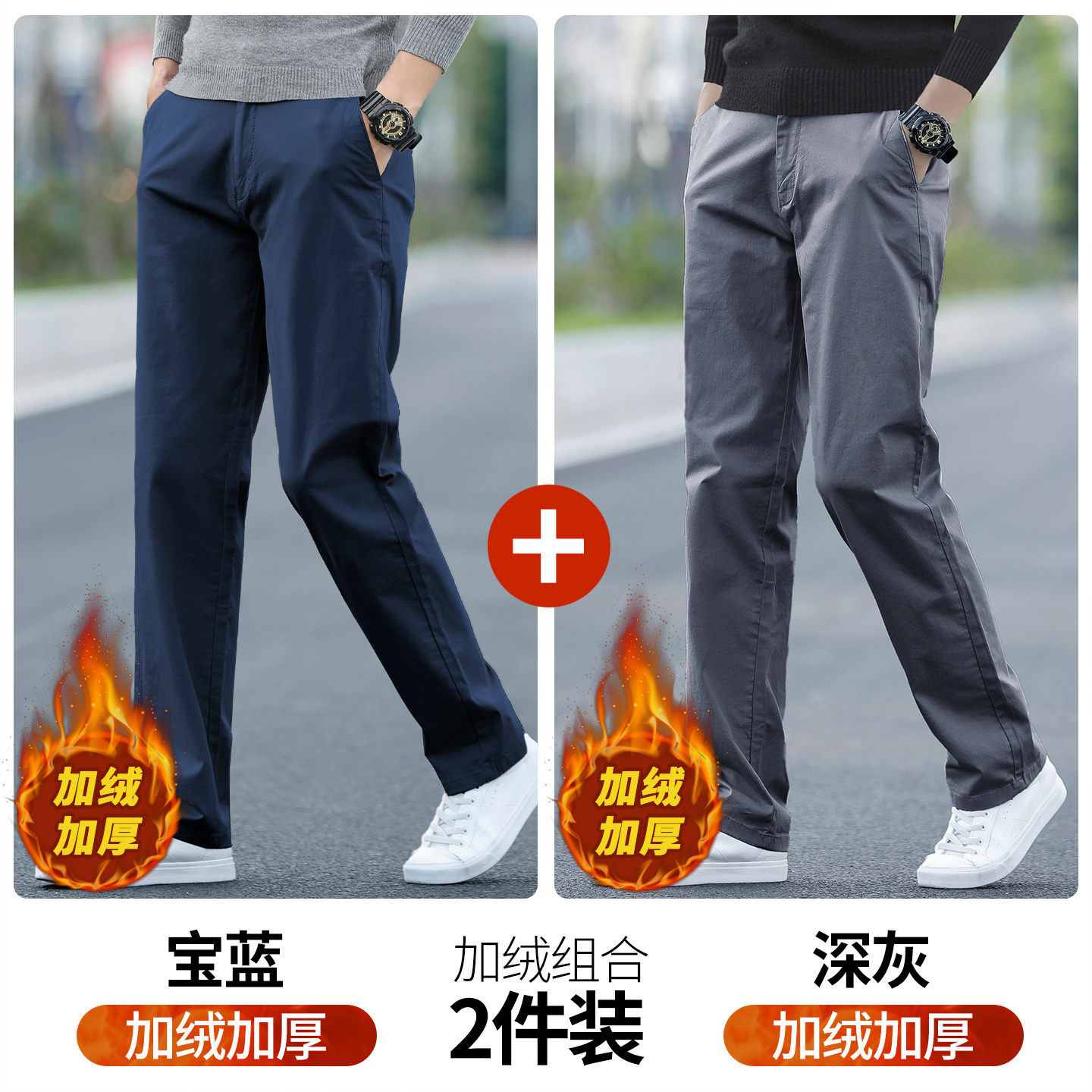 罗蒙纯棉男士休闲裤宽松直筒2025秋冬季加绒加厚西装裤商务长裤子