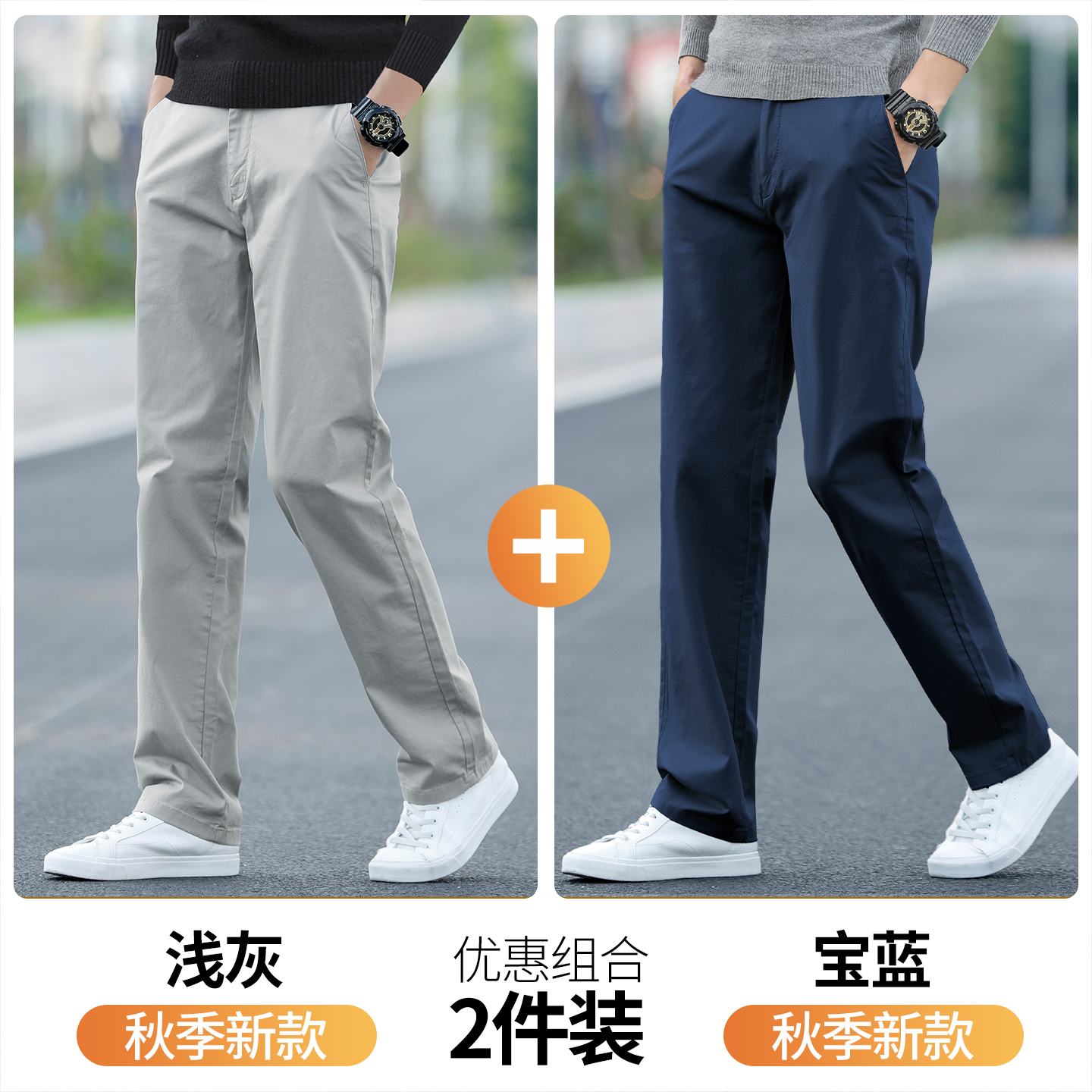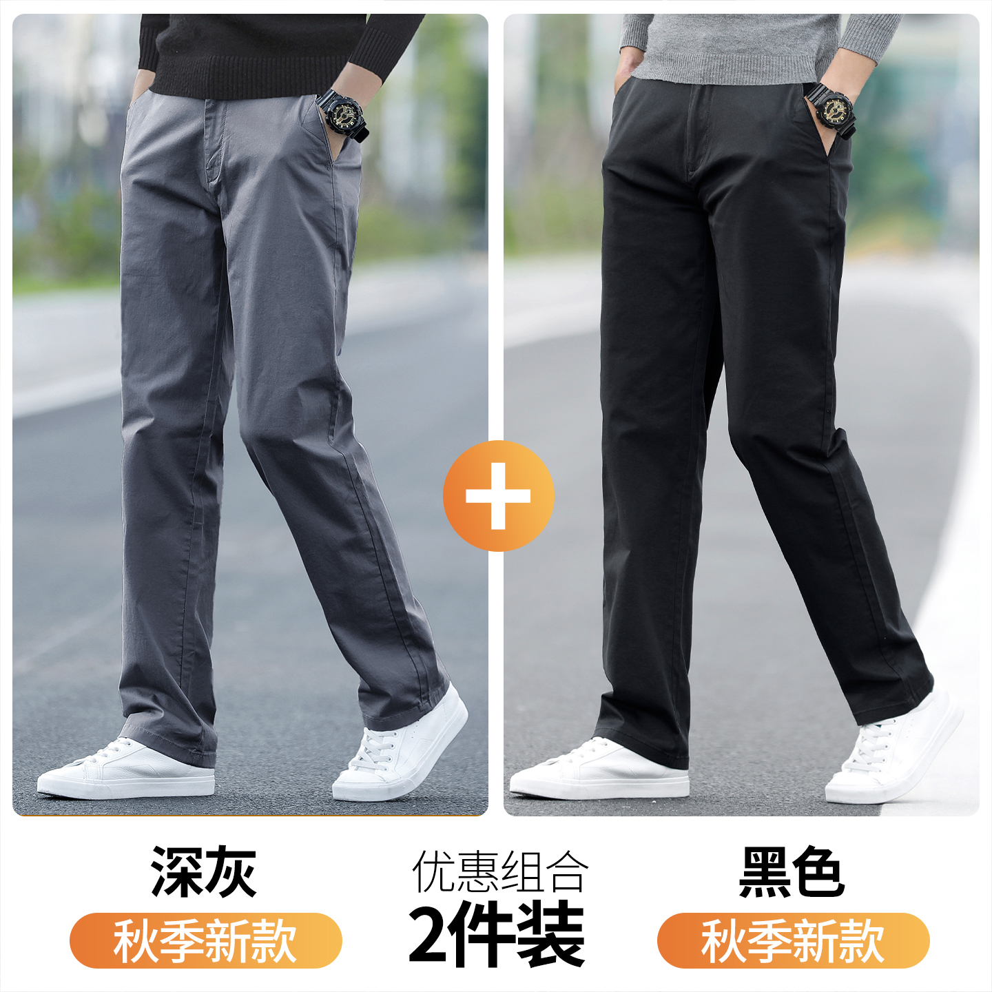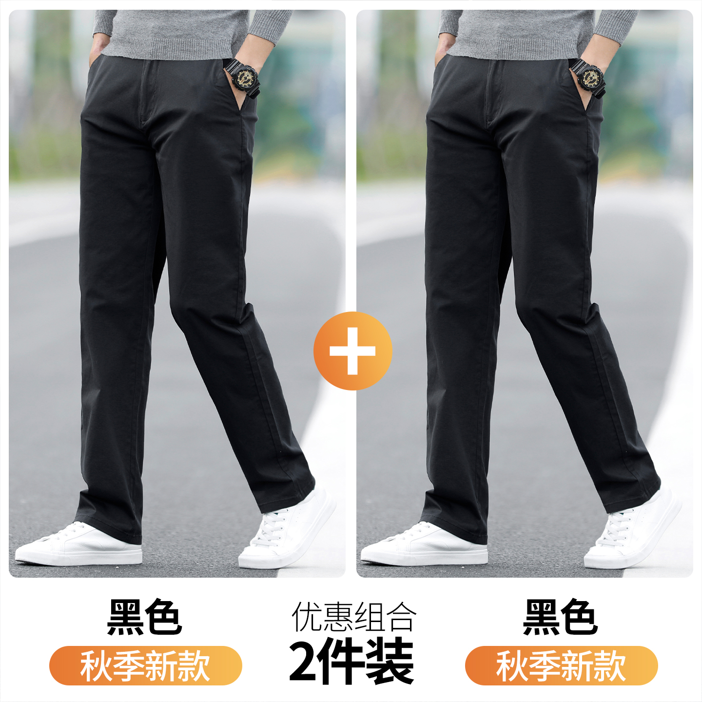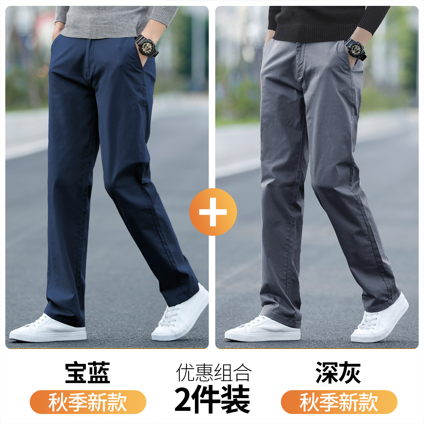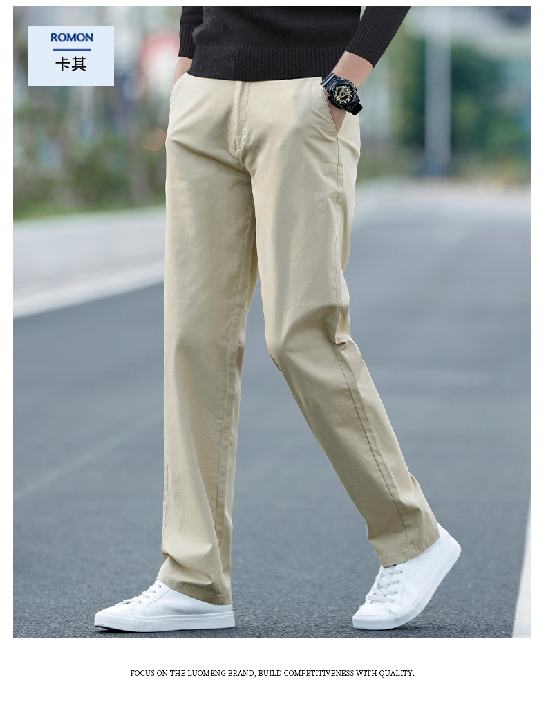 罗蒙纯棉男士休闲裤宽松直筒2025秋冬季加绒加厚西装裤商务长裤子