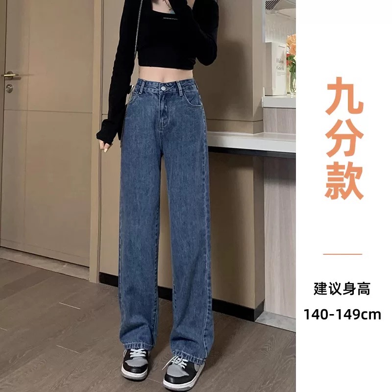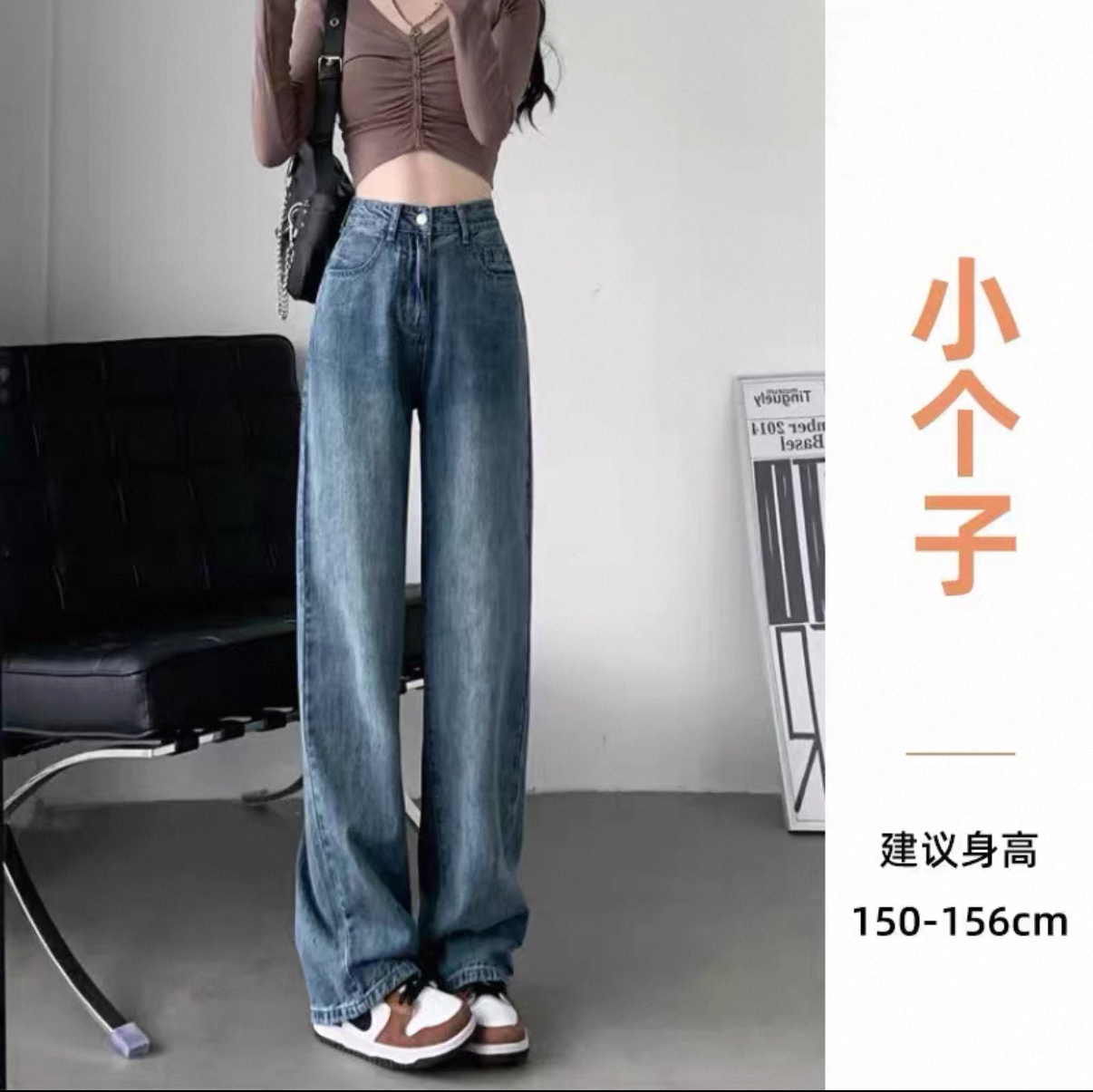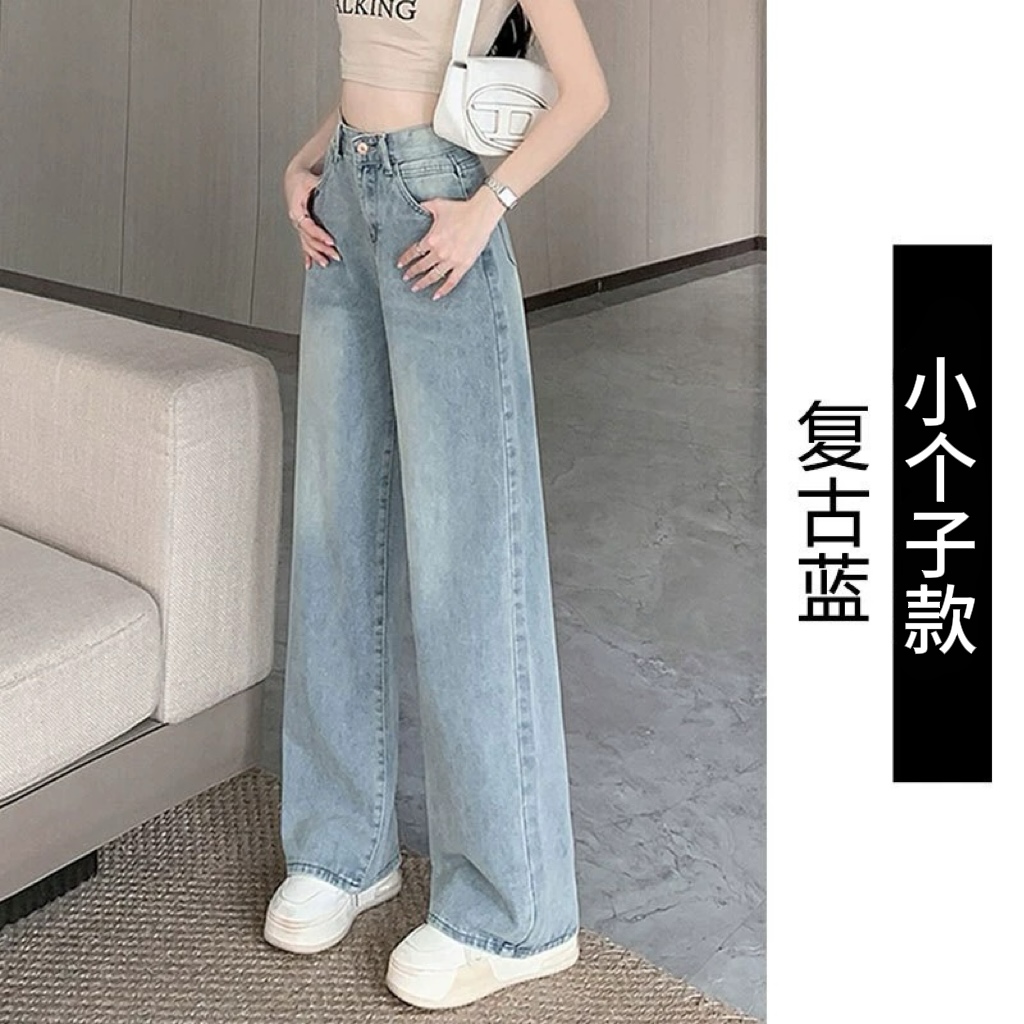 150小个子复古蓝窄版直筒牛仔裤女春夏季高腰显瘦宽松阔腿裤xxs码