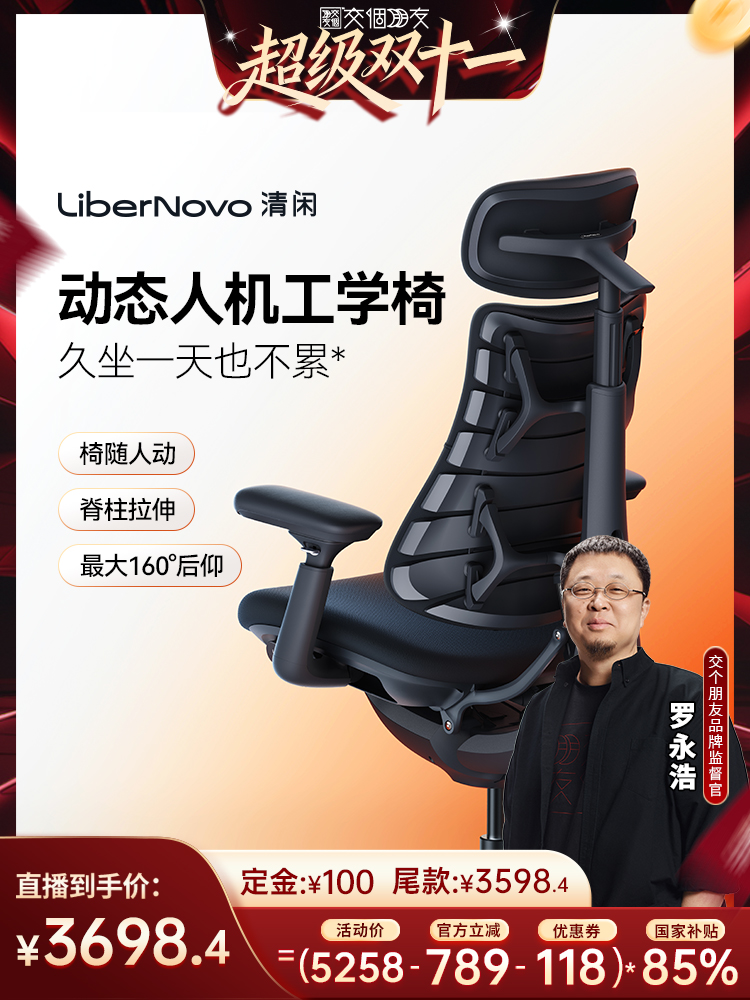 【先加购 7日早10付定 交个朋友双11】清闲动态人机工学椅