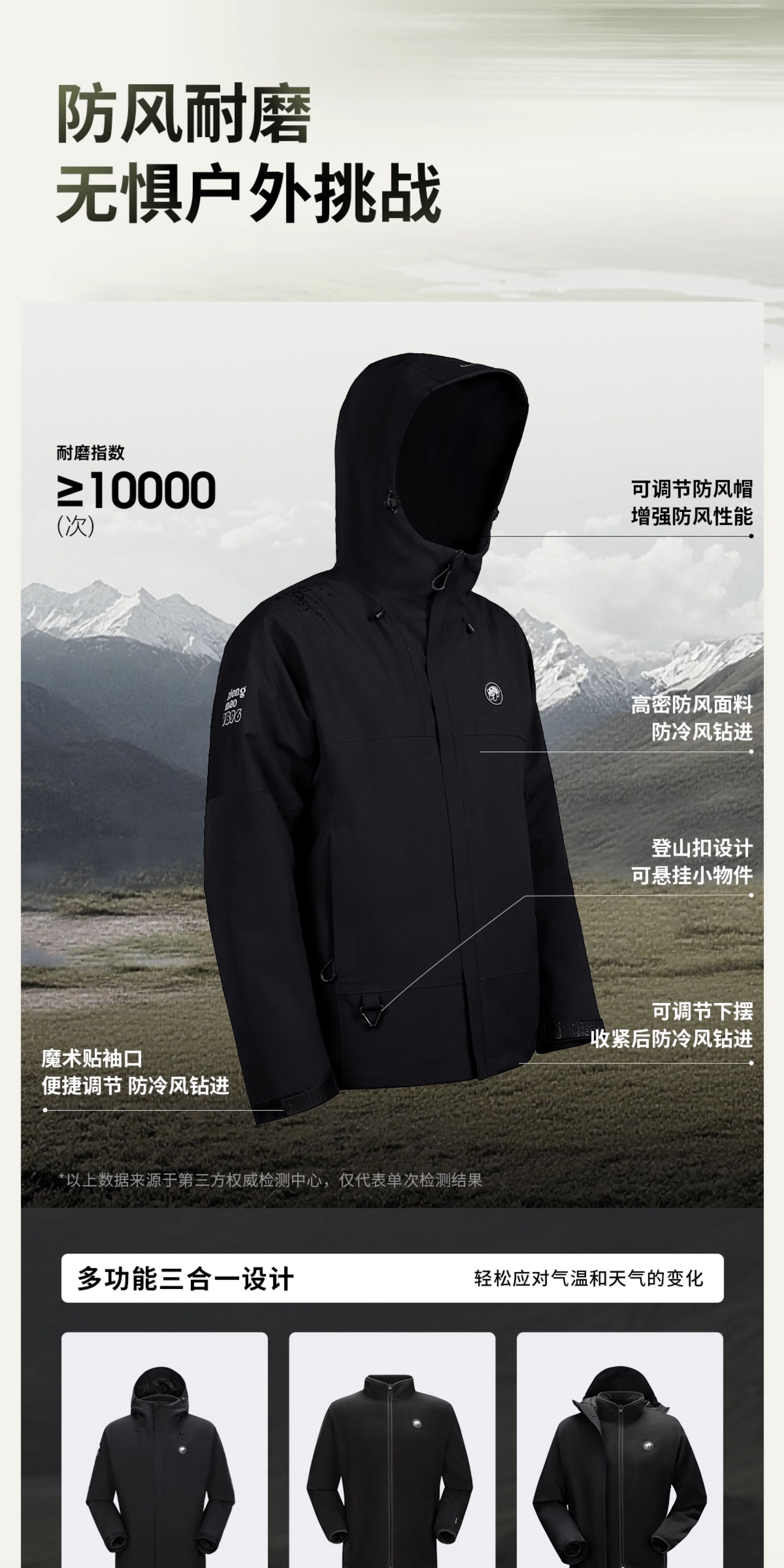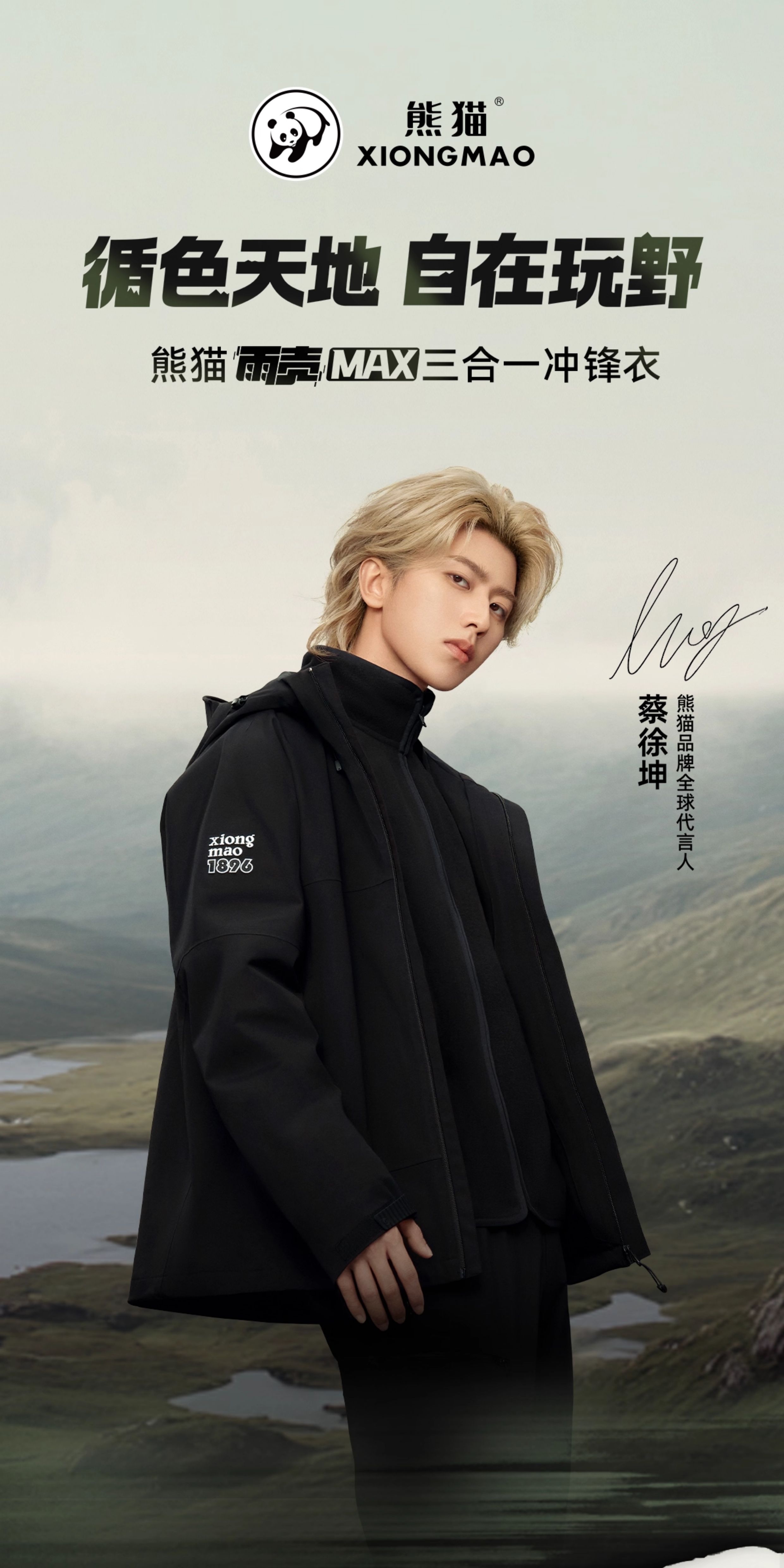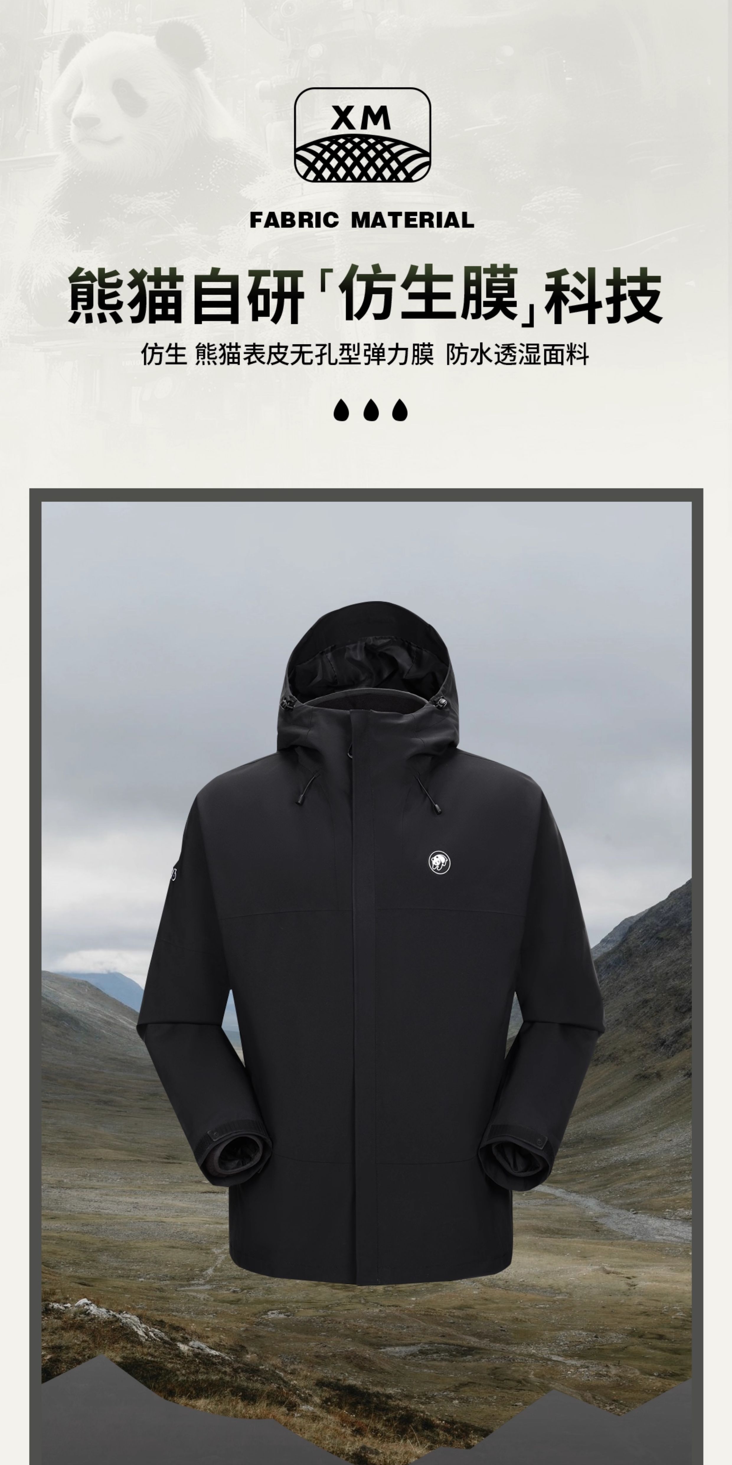 蔡徐坤同款雨壳MAX熊猫冲锋衣三合一秋冬防风防水户外登山服男女