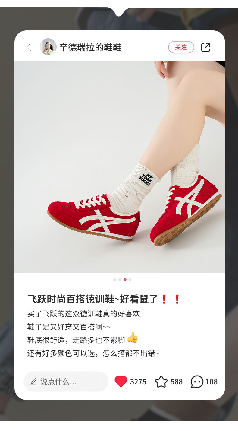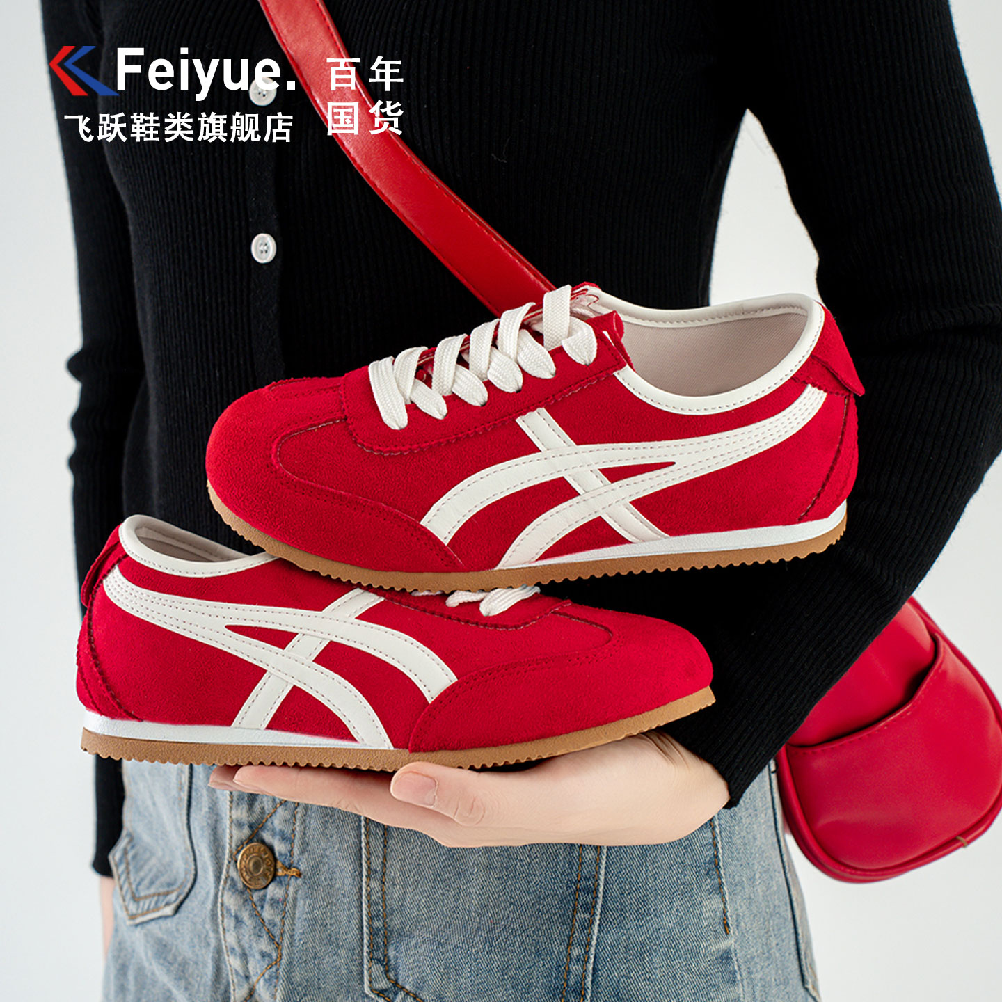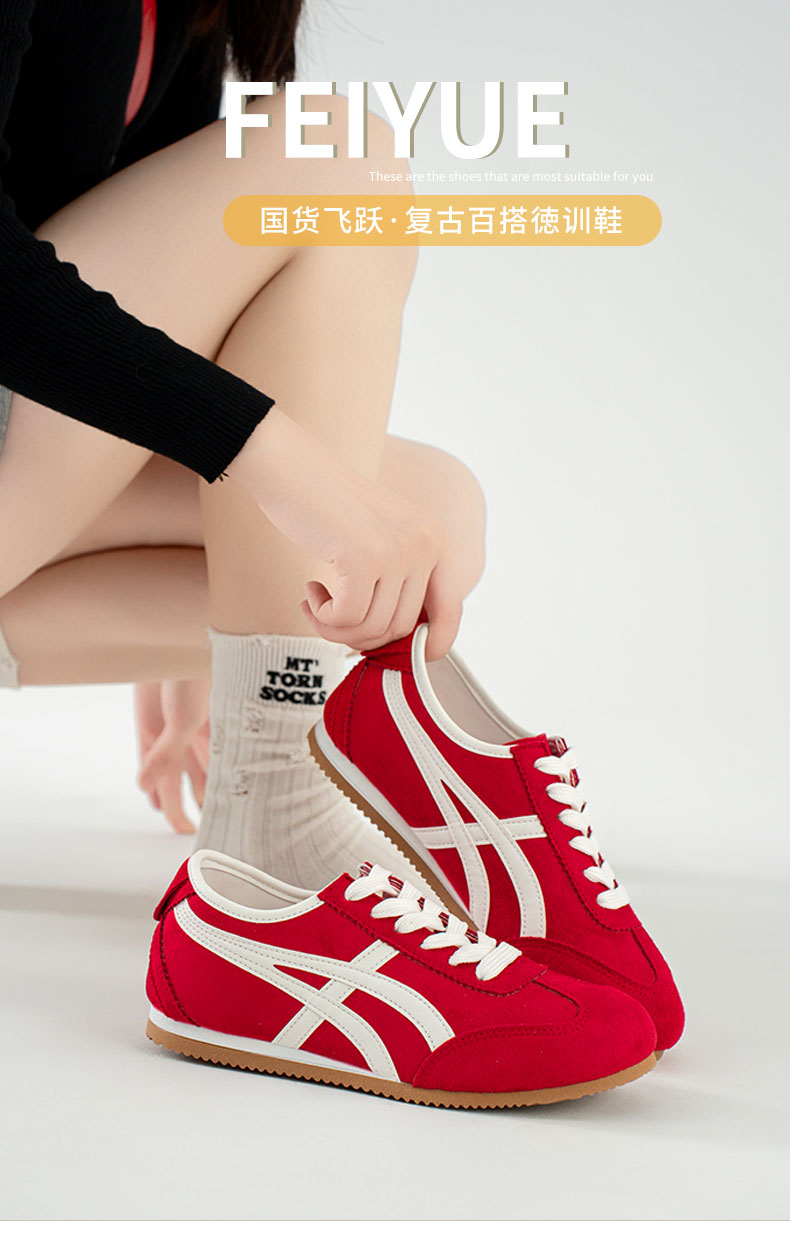 飞跃红色德训鞋女2025新款秋季爆款超火百搭阿甘鞋子运动休闲板鞋