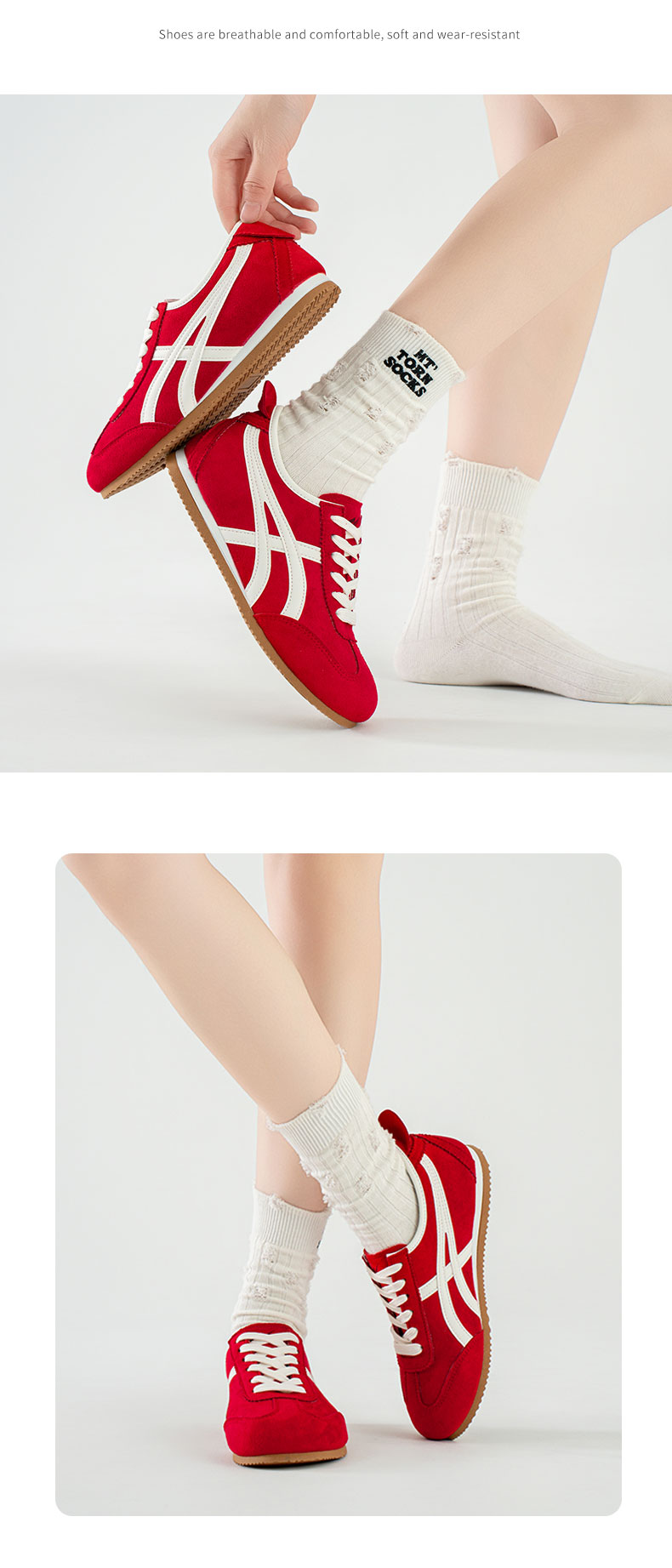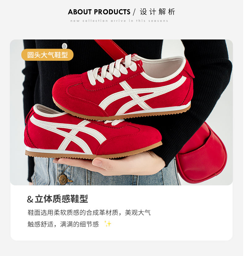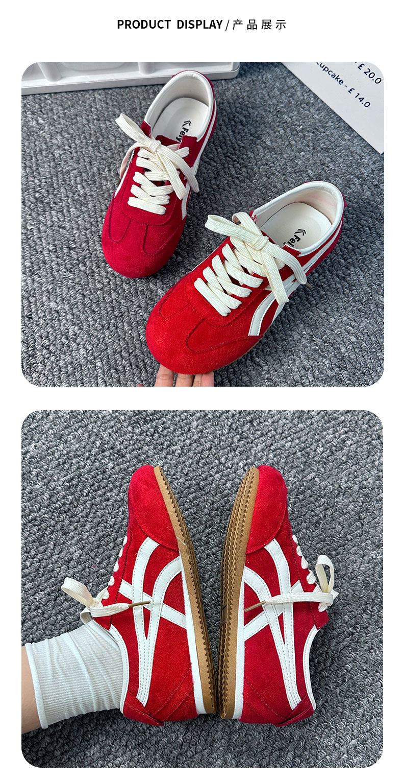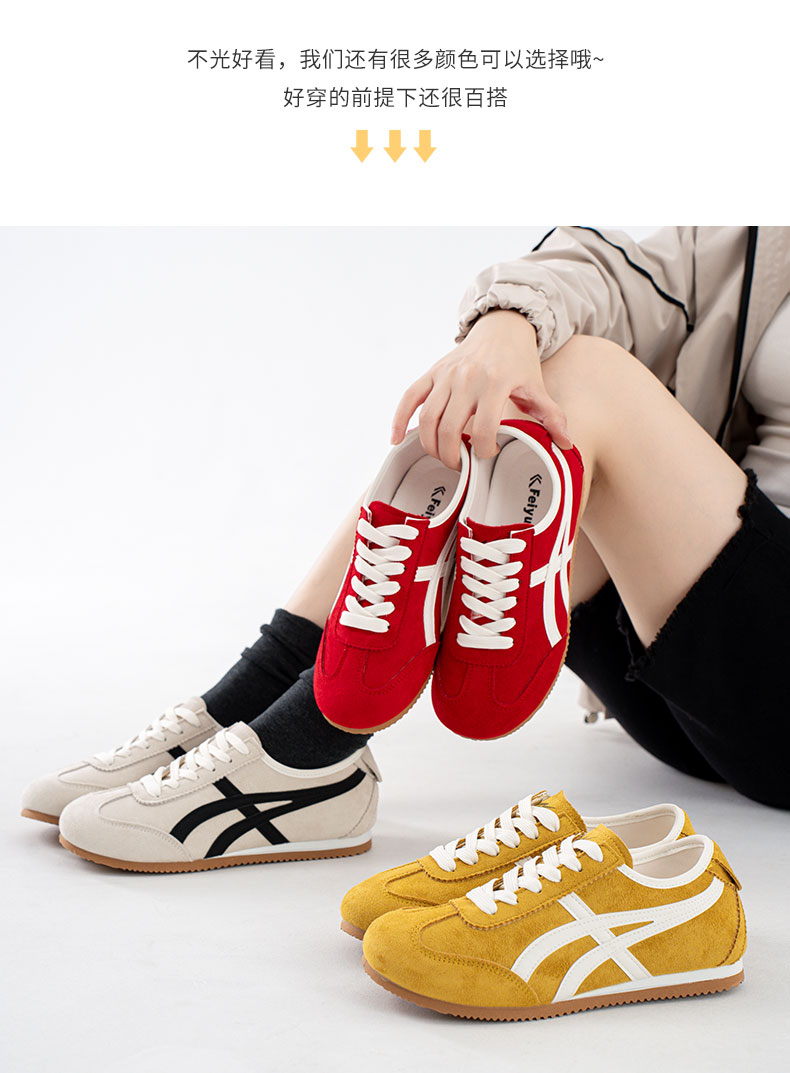 飞跃红色德训鞋女2025新款秋季爆款超火百搭阿甘鞋子运动休闲板鞋