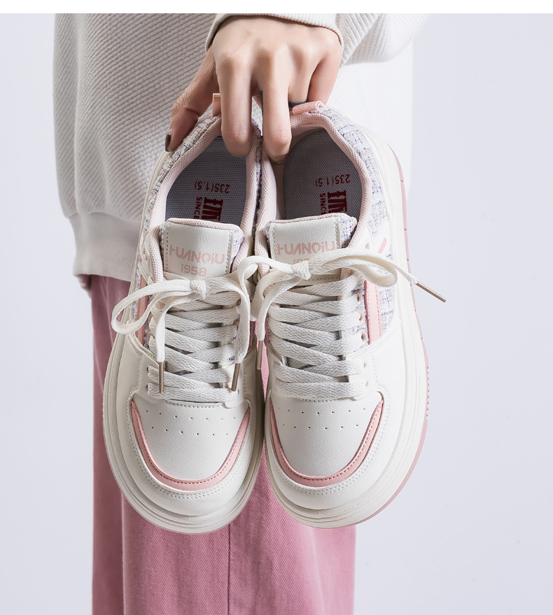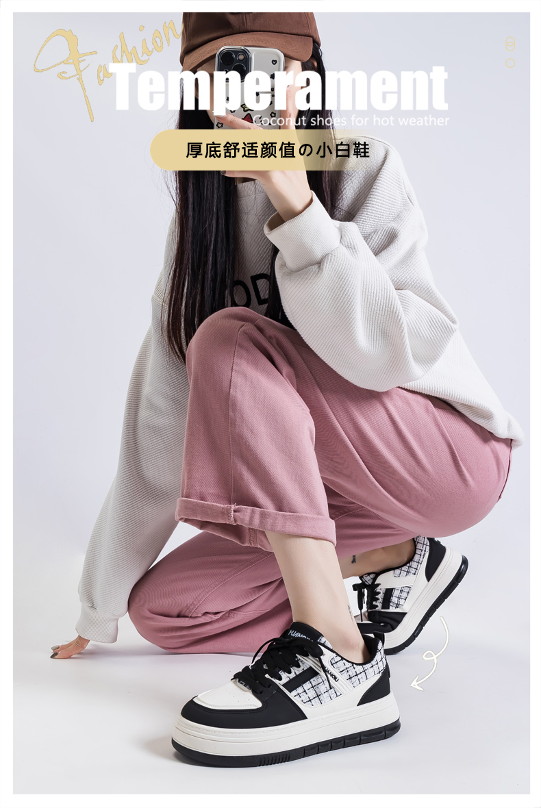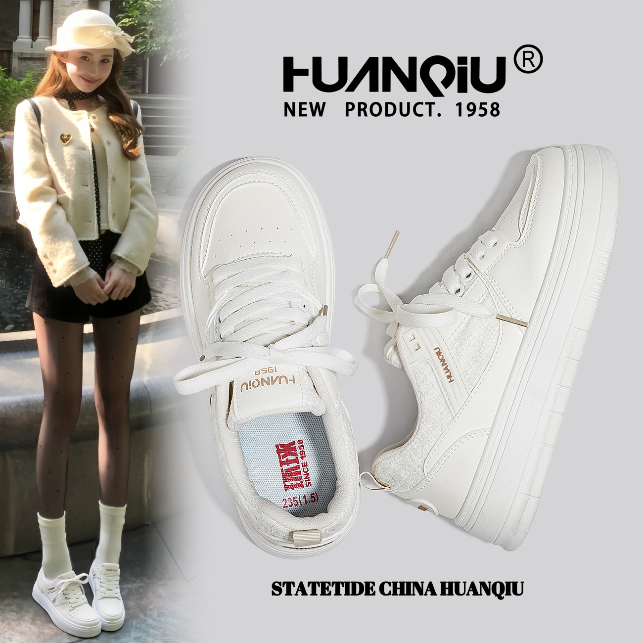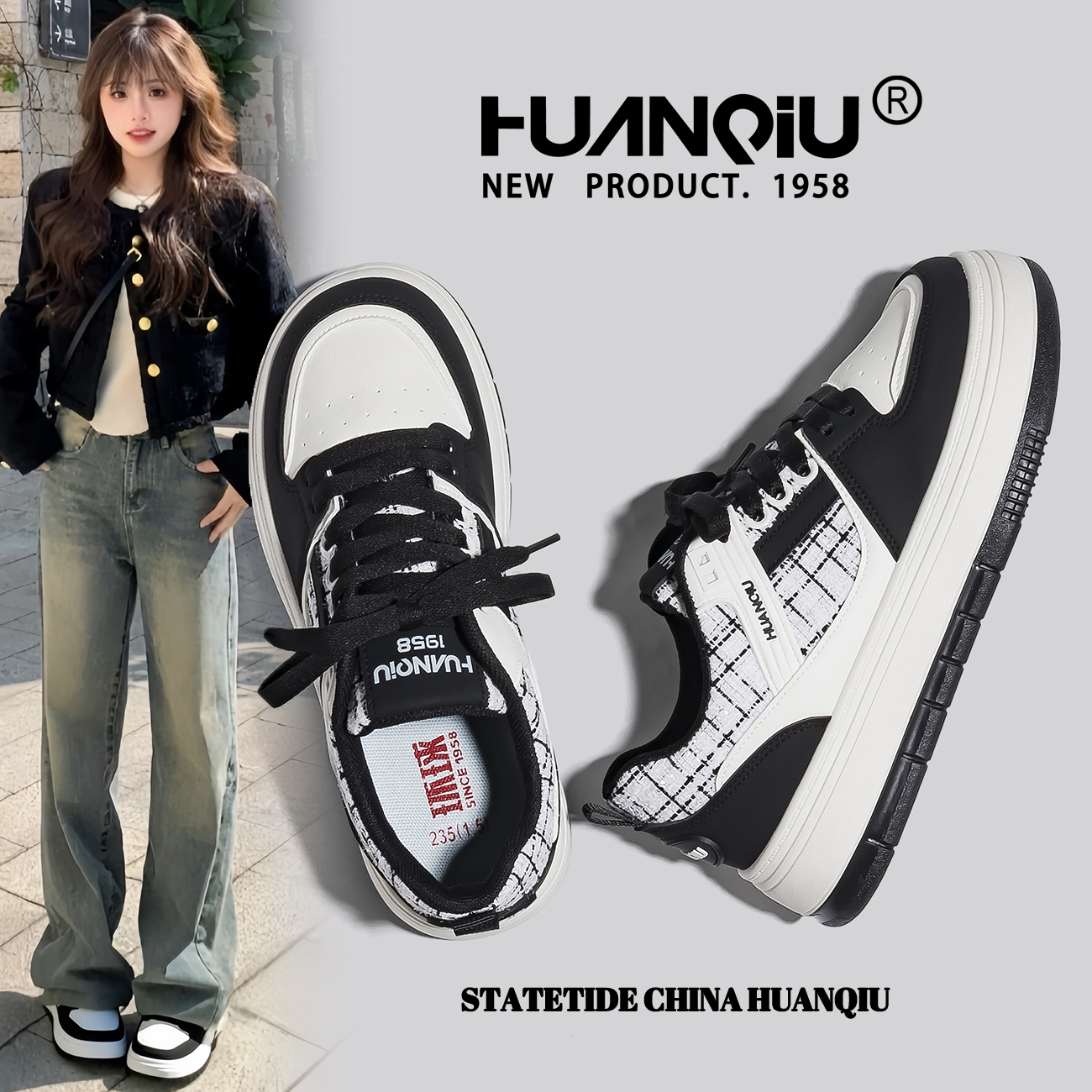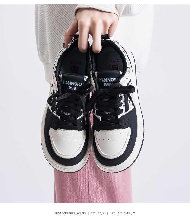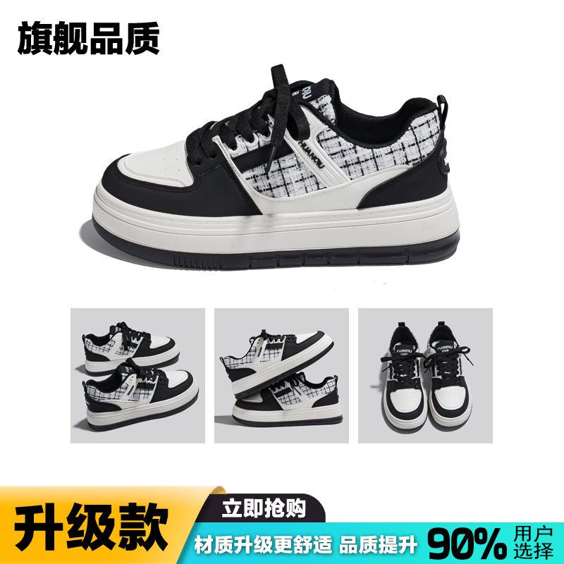 环球小香风厚底板鞋女款2025秋季新款百搭小众休闲运动黑白板鞋子