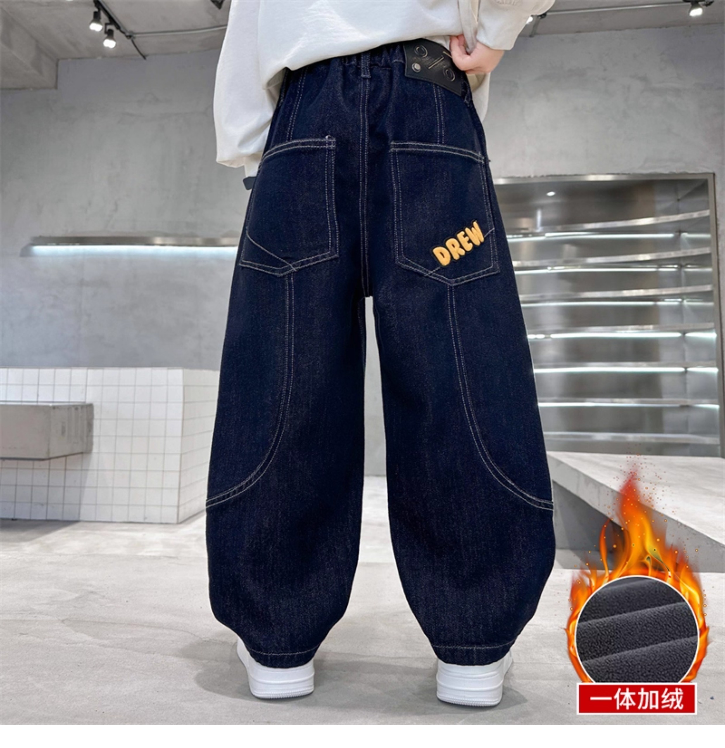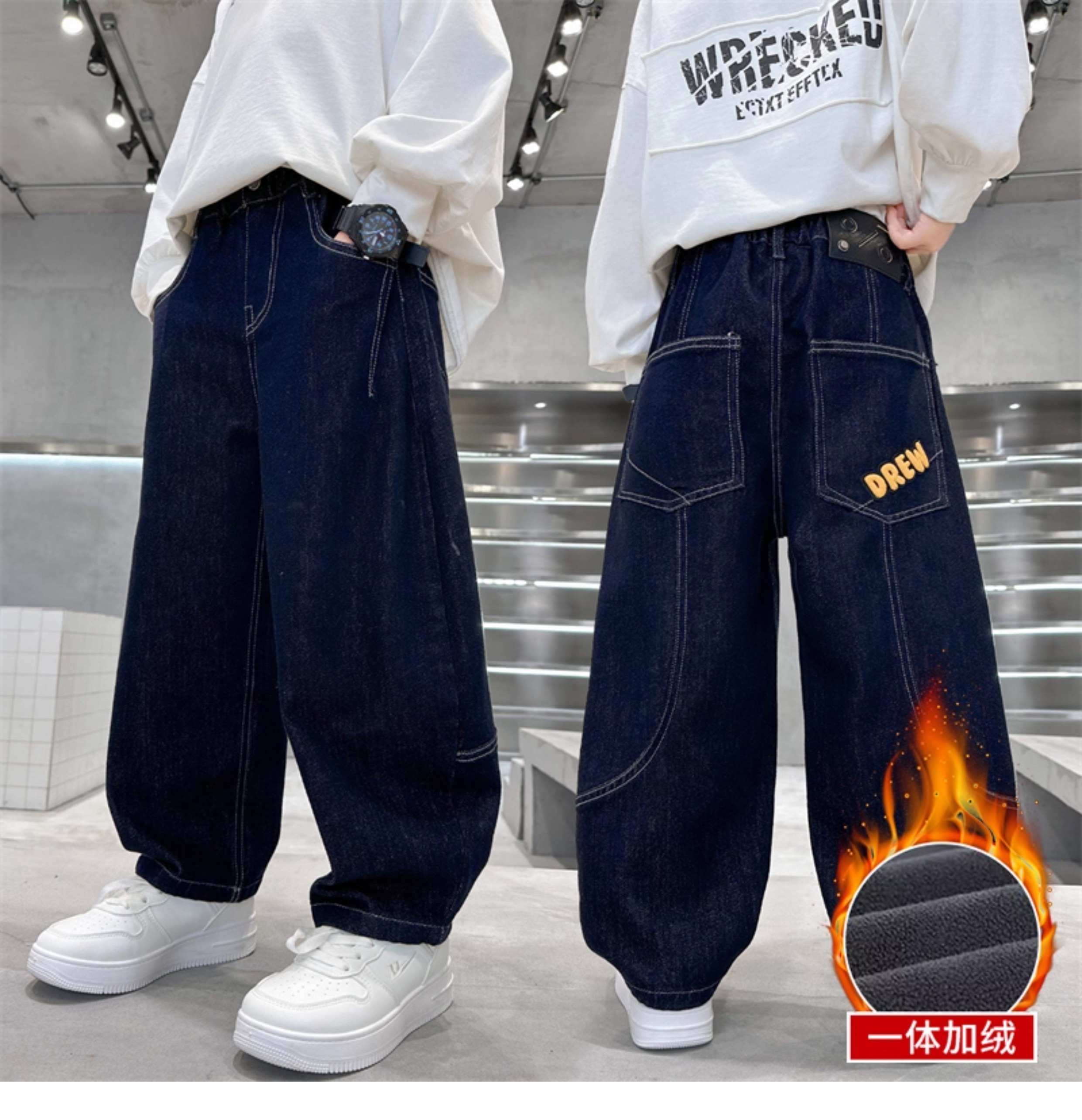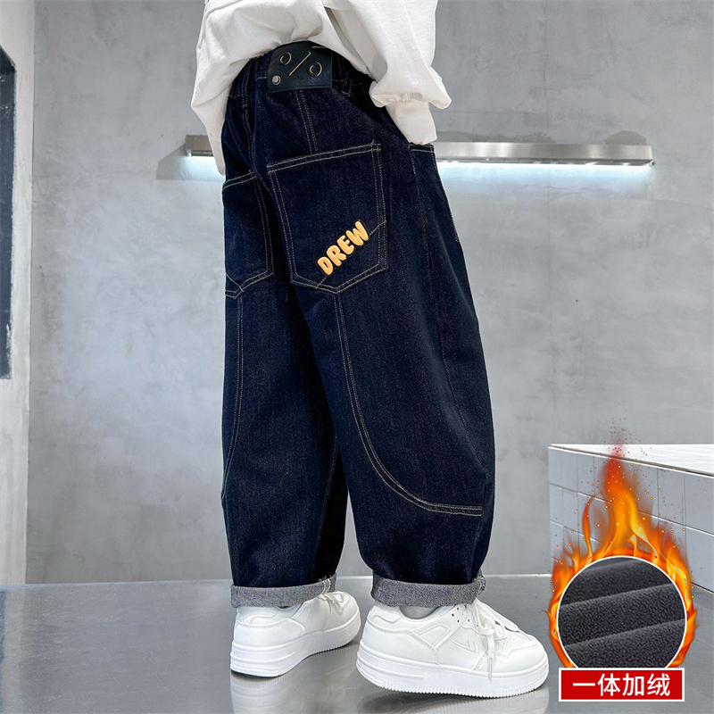 童装男童裤子秋季2025新款儿童秋装牛仔裤中大童男孩冬加绒弯刀裤