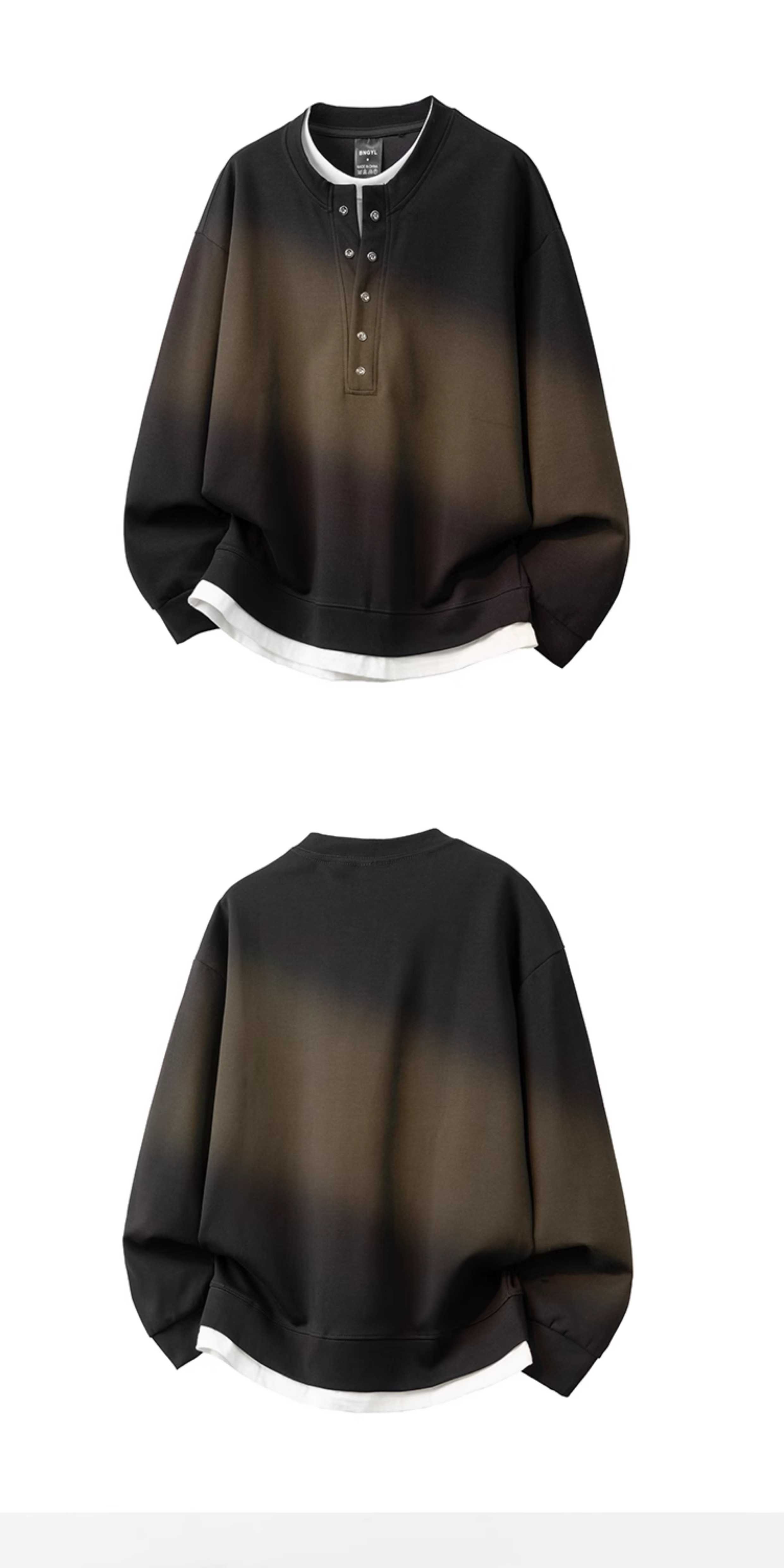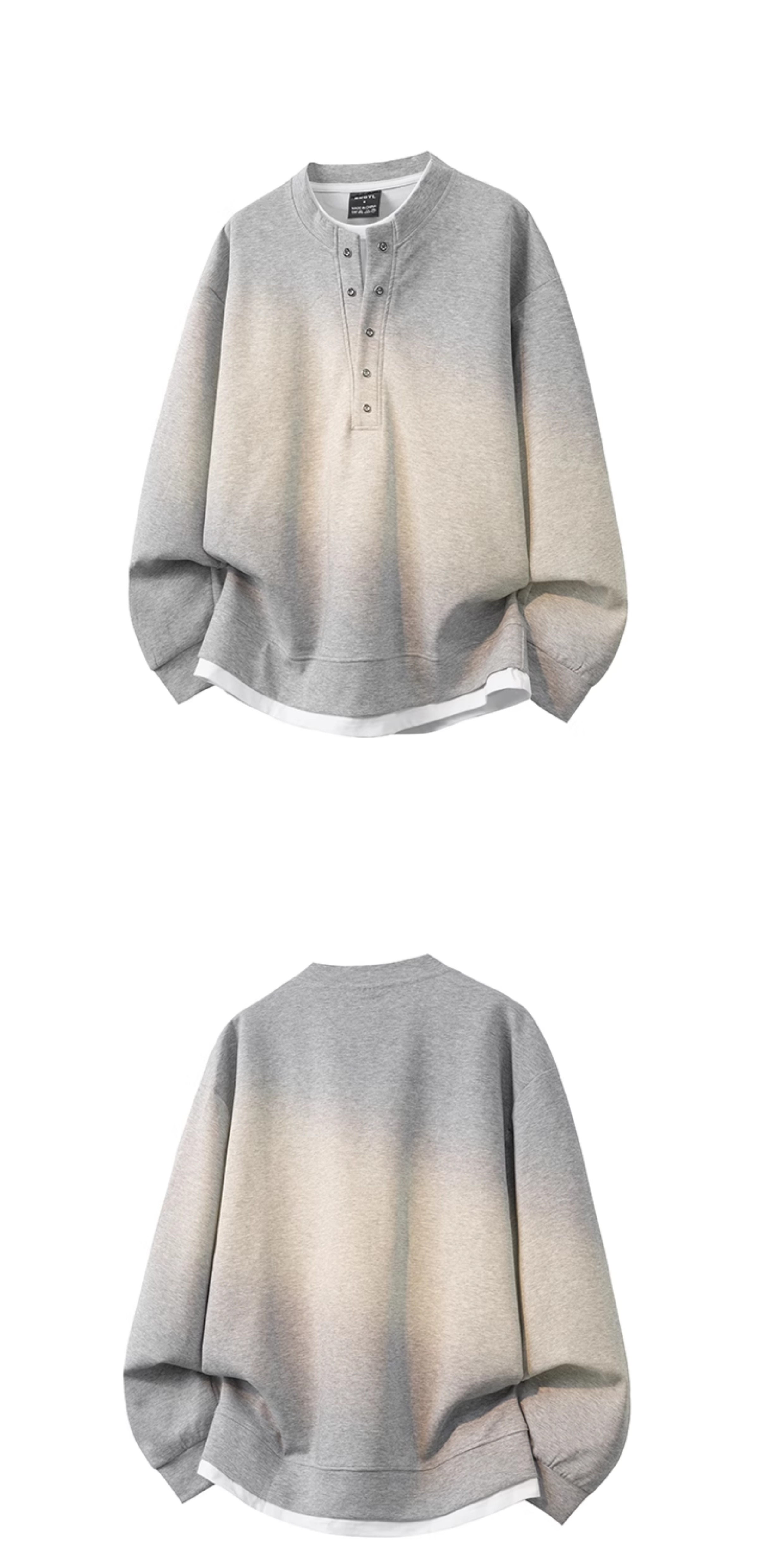 亨利领假两件长袖卫衣男潮牌高级感美式休闲大码男装T恤打底上衣